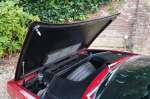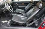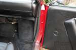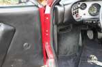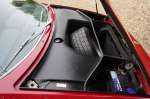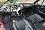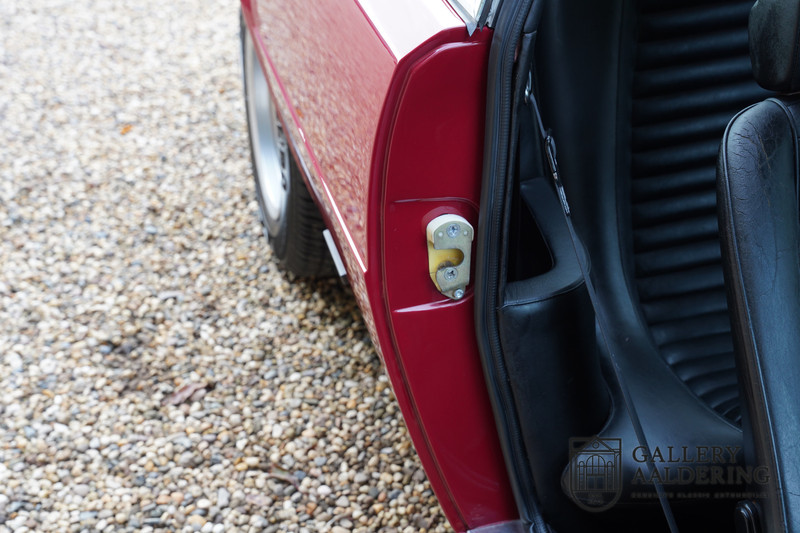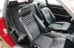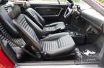 Een blik in het interieur zorgt voor meer aangename verrassingen. De bekleding is grotendeels origineel en in mooie conditie, waarbij de zwarte, lederen bekleding schitterend combineert met de donkerrode buitenkant. De staat van de bekleding is prachtig, iets dat ook geldt voor de hemelbekleding en de zwarte tapijten. De stoelen zitten overigens net zo goed als dat ze eruitzien. De achterbank is als nieuw en biedt plaats aan wat kleinere medemensen.