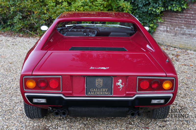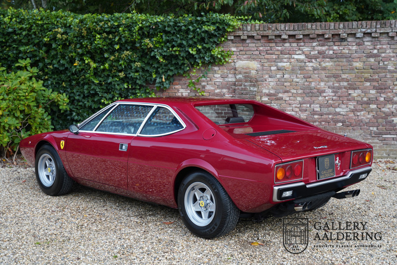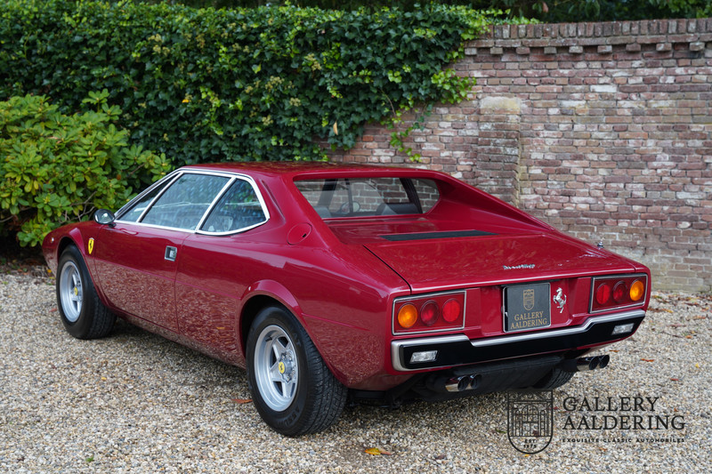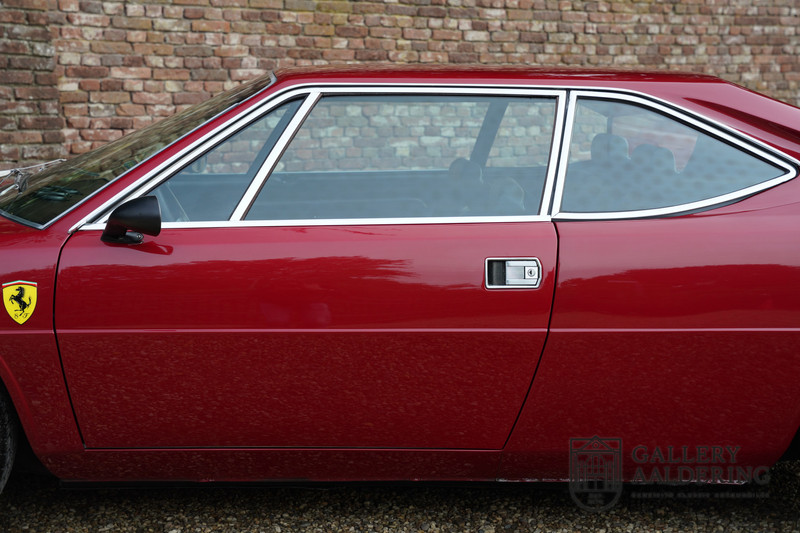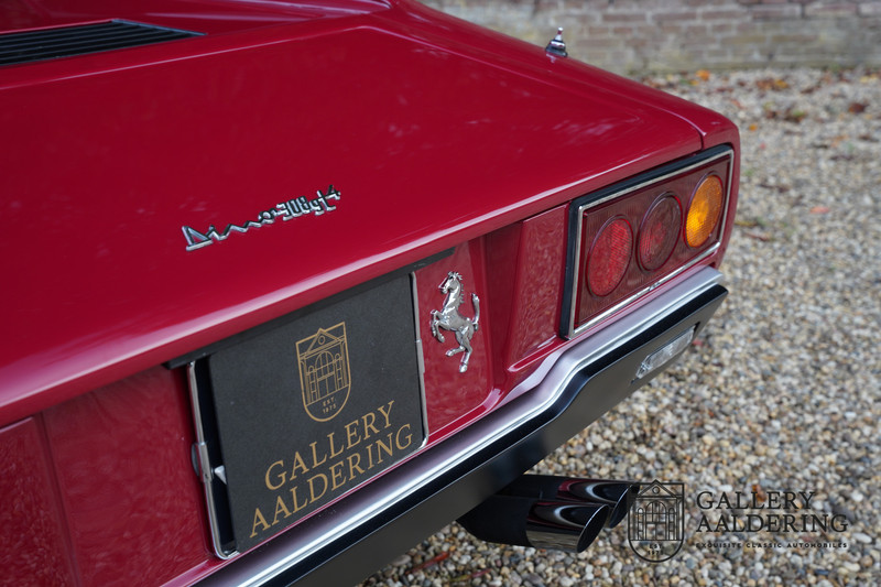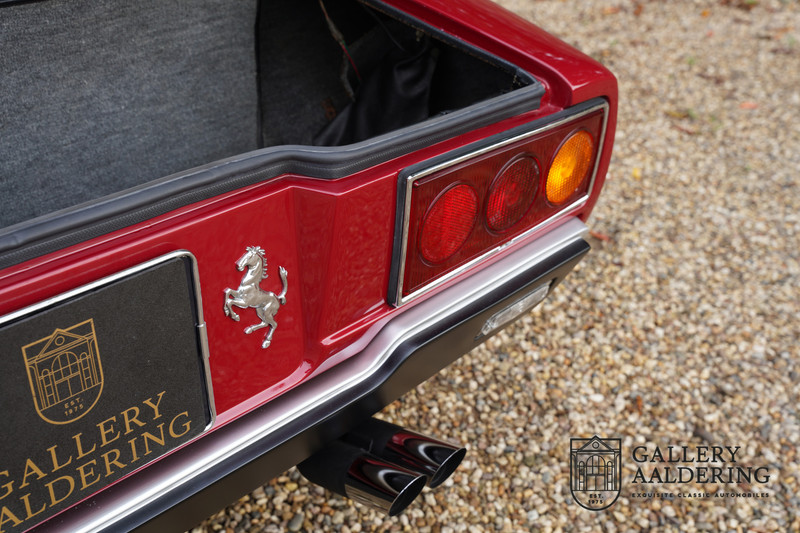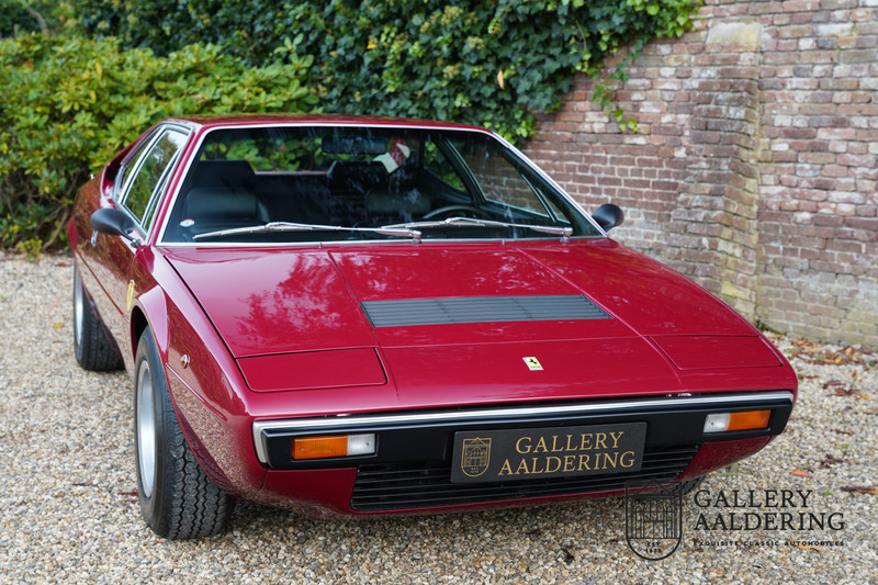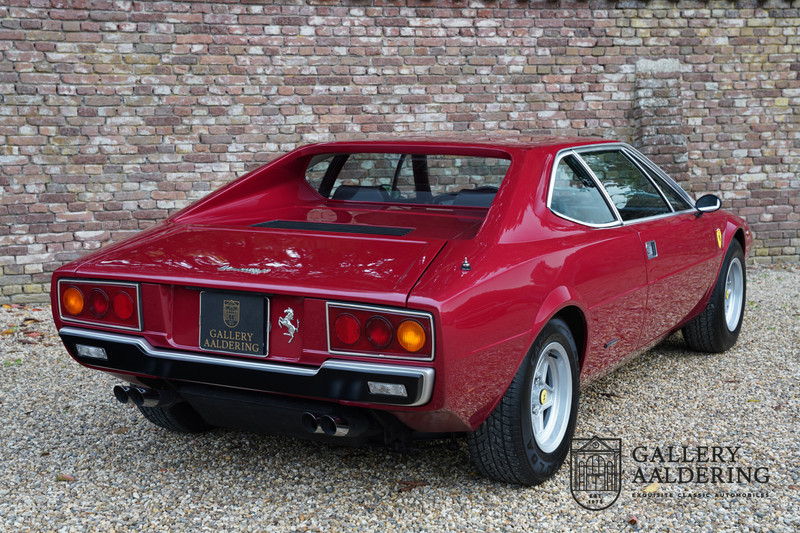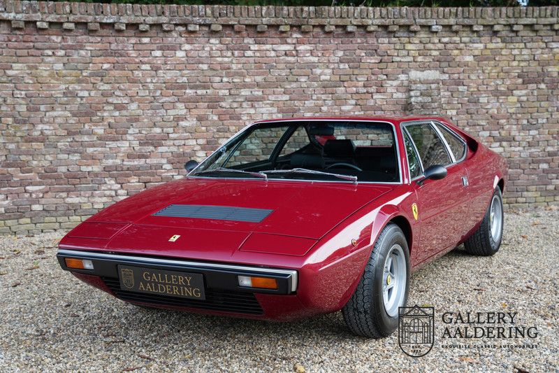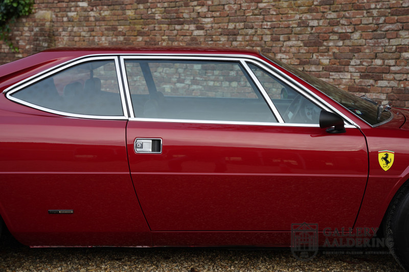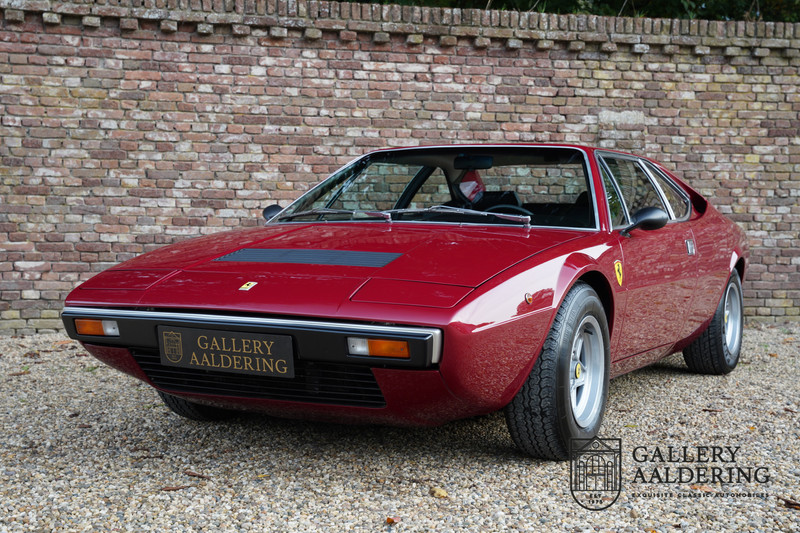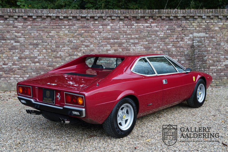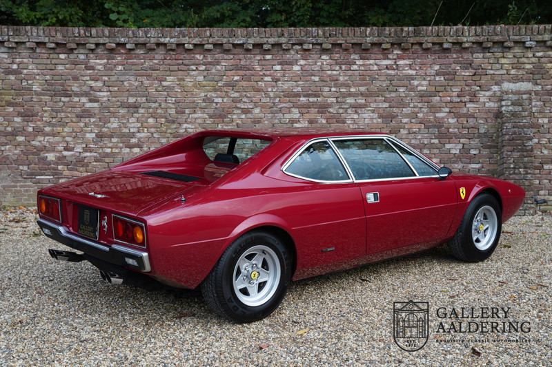 Aanvankelijk draagt het model het Dino-logo en is het steigerende paard niet op de auto te vinden maar vanaf ergens halverwege 1975 wordt de twee-plus-twee-zitter dan eindelijk verkocht als Ferrari, met logo’s van Ferrari op de carrosserie, de wielen en het stuur.