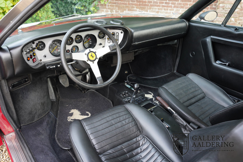 This 308 GT4 dates from 1975 and is in a particularly beautiful condition, partly explained by the fact that the car has already been restored and overhauled in the past. After that, the car was cherished and only used selectively, so the condition can still be described as ‘very nice’. Recently, by which we mean ‘a few months ago’ in this case, the car underwent major maintenance by a specialist, including replacing the distribution.