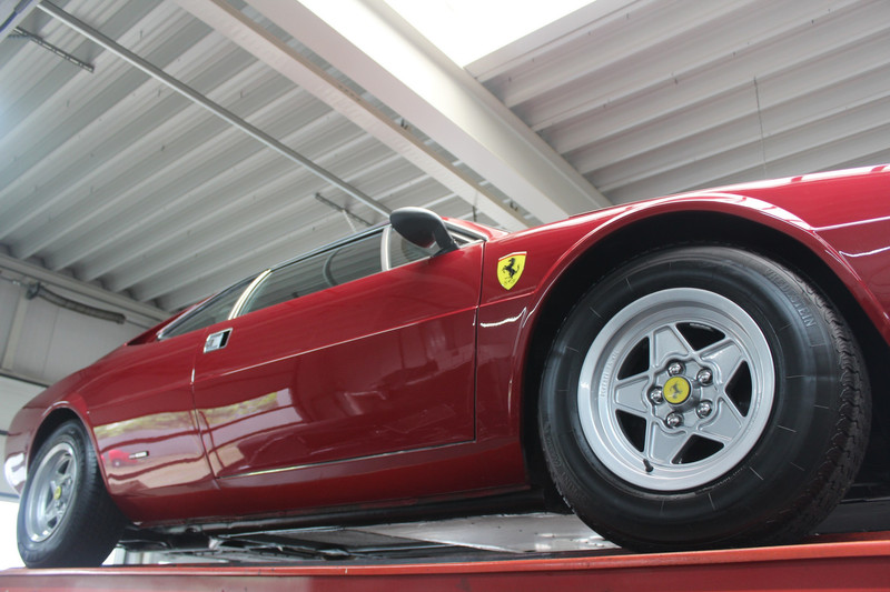 Anfangs trug das Modell das Dino-Logo und das tanzende Pferd war nicht auf dem Auto zu finden, aber irgendwann Mitte 1975 wurde der Zwei-plus-Zweisitzer schließlich als Ferrari verkauft, mit Ferrari-Logos auf der Karosserie, den Rädern und dem Auto Rad.