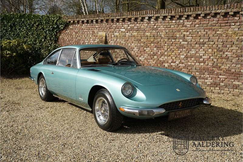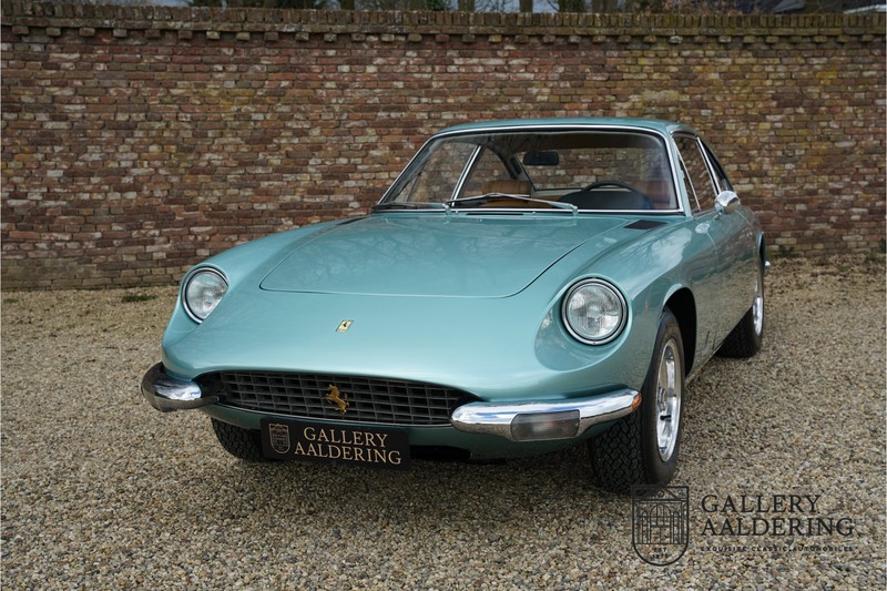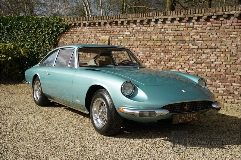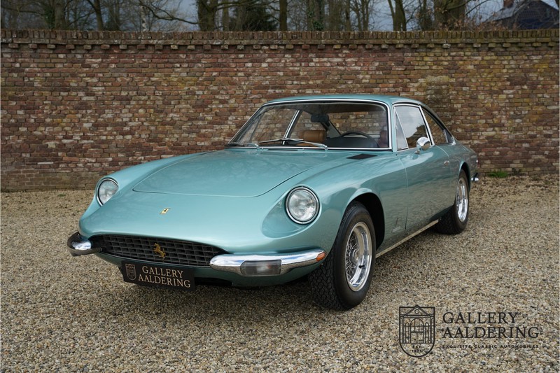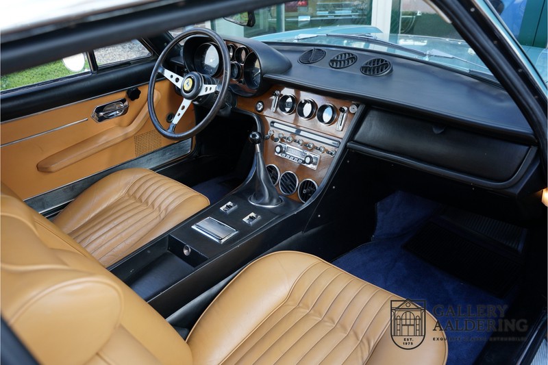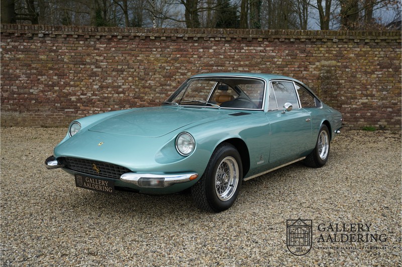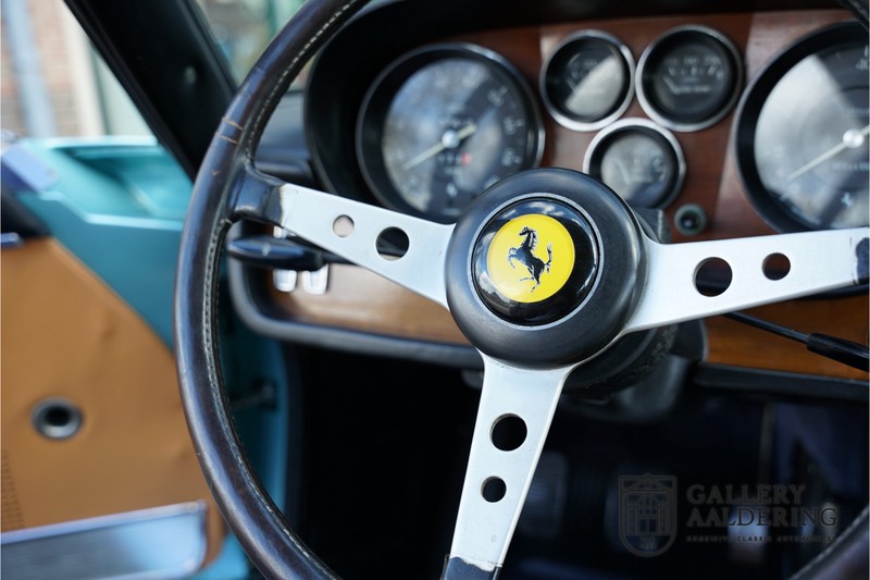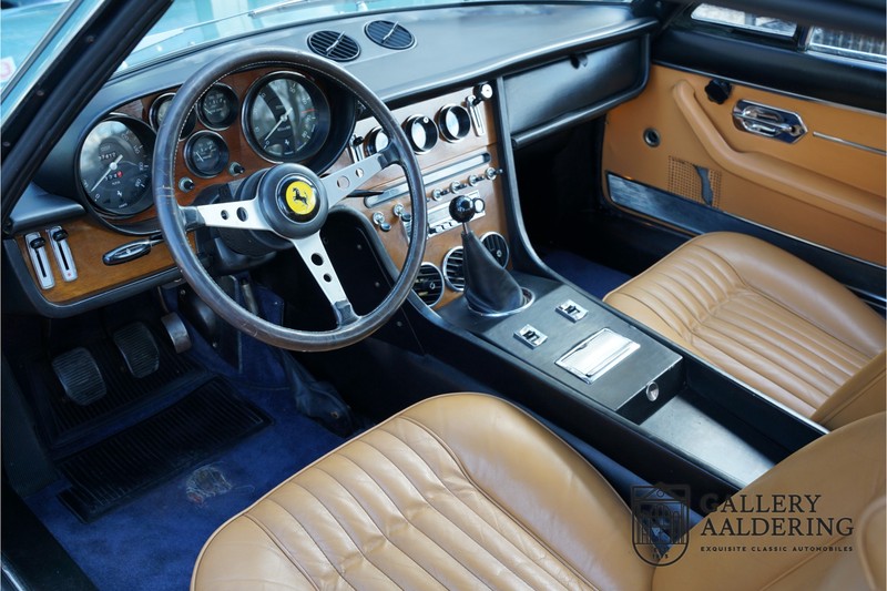 The absolute centrepiece of course has to be the 4.4 litre Colombo V12 engine. This car has retained its original engine and therefore this 1969 Ferrari 365 GT 2+2 is a matching numbers example. The V12 develops 320 PS attached to a 5-speed manual gearbox. With the increase of the revs, you get to hear exactly what you would expect: that fantastic engine sound! The 365 GT 2+2’s road handling is many times better than its predecessor, the Ferrari 330. The independent rear suspension having a large part to play in this. The factory-fitted air-conditioning makes long-distance driving a lot more comfortable. Mechanically the car is in very good shape and extremely well maintained by its previous holder. The car drives fantastically well and looks great. In short, this is a wonderfully original and especially elegantly finished Ferrari 365 GT 2+2. Gallery Aaldering is Europe’s leading Classic Cars specialist since 1975! Always 400 Classic and Sportscars in stock, please visit www.gallery-aaldering.com for the current stock list (all offered cars are available in our showroom) and further information. We are located near the German border, 95 km from Düsseldorf and 90 km from Amsterdam. So easy traveling by plane, train, taxi and car. Transport and worldwide shipping can be arranged. No duties/import costs within Europe. We buy, sell and provide consignment sales (selling on behalf of the owner). We can arrange/provide registration/papers for our German (H-Kennzeichen, TÜV, Fahrzeugbrief, Wertgutachten usw.) and Benelux customers. Gallery Aaldering, Arnhemsestraat 47, 6971 AP Brummen, The Netherlands. Tel: 0031-575-564055. Quality, experience and transparency is what sets us apart. We look forward to welcoming you in our showroom
