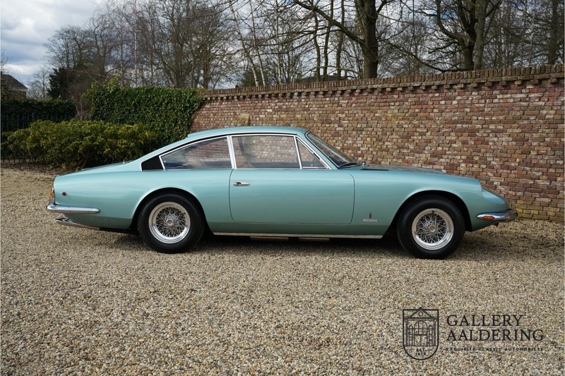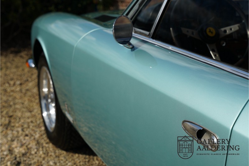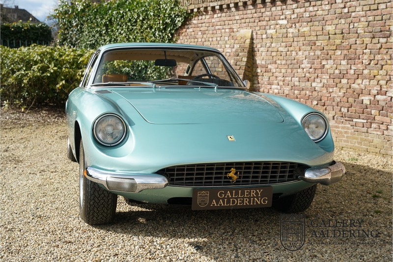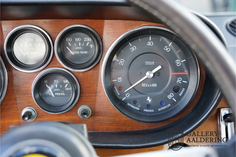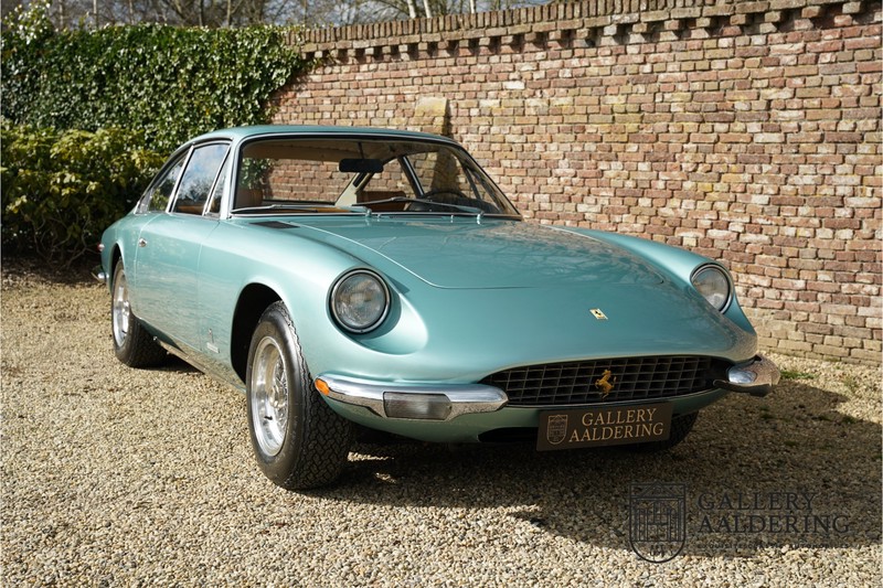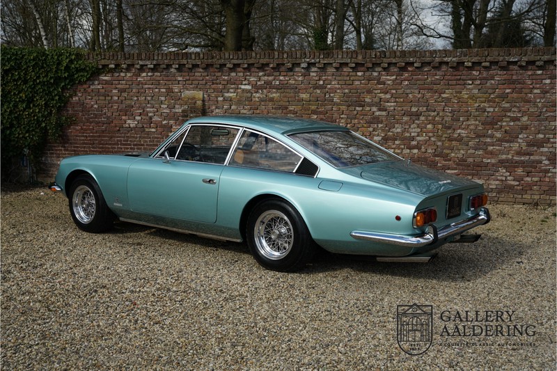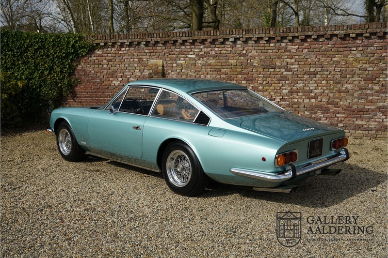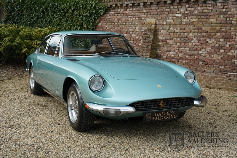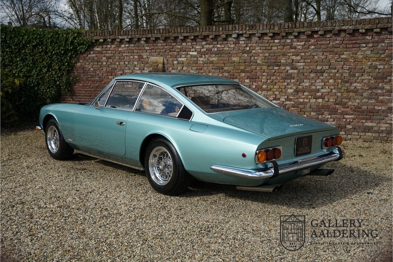 The absolute centrepiece of course has to be the 4.4 litre Colombo V12 engine. This car has retained its original engine and therefore this 1969 Ferrari 365 GT 2+2 is a matching numbers example. The V12 develops 320 PS attached to a 5-speed manual gearbox. With the increase of the revs, you get to hear exactly what you would expect: that fantastic engine sound! The 365 GT 2+2’s road handling is many times better than its predecessor, the Ferrari 330. The independent rear suspension having a large part to play in this. The factory-fitted air-conditioning makes long-distance driving a lot more comfortable. Mechanically the car is in very good shape and extremely well maintained by its previous holder. The car drives fantastically well and looks great. In short, this is a wonderfully original and especially elegantly finished Ferrari 365 GT 2+2. Gallery Aaldering is Europe’s leading Classic Cars specialist since 1975! Always 400 Classic and Sportscars in stock, please visit www.gallery-aaldering.com for the current stock list (all offered cars are available in our showroom) and further information. We are located near the German border, 95 km from Düsseldorf and 90 km from Amsterdam. So easy traveling by plane, train, taxi and car. Transport and worldwide shipping can be arranged. No duties/import costs within Europe. We buy, sell and provide consignment sales (selling on behalf of the owner). We can arrange/provide registration/papers for our German (H-Kennzeichen, TÜV, Fahrzeugbrief, Wertgutachten usw.) and Benelux customers. Gallery Aaldering, Arnhemsestraat 47, 6971 AP Brummen, The Netherlands. Tel: 0031-575-564055. Quality, experience and transparency is what sets us apart. We look forward to welcoming you in our showroom