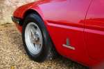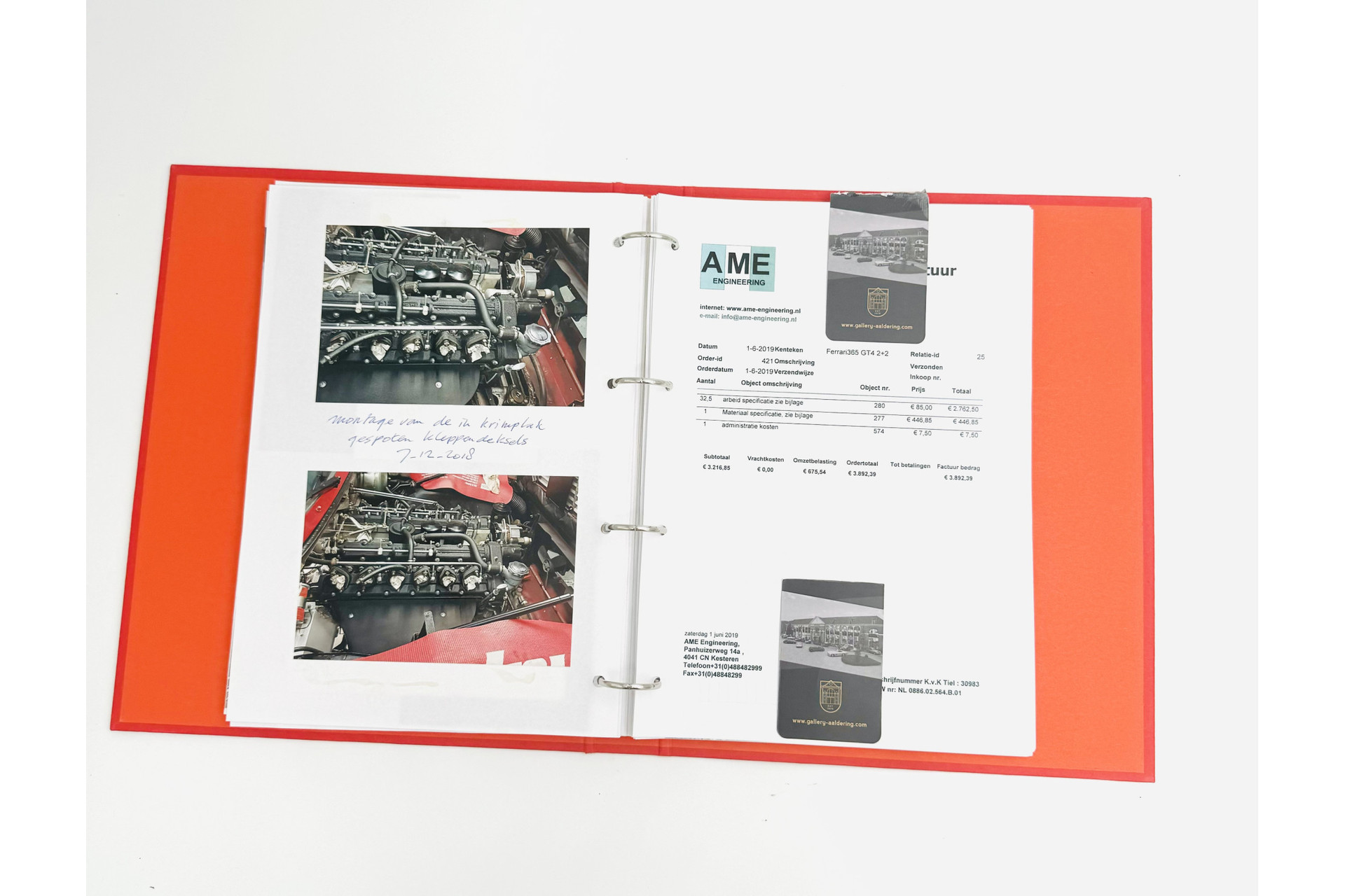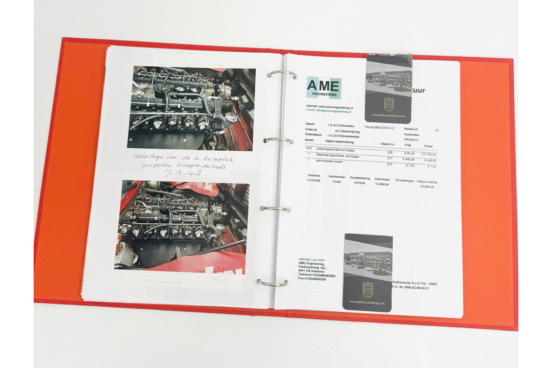 Deze Ferrari 365 GT4 is een meesterwerk van originaliteit en authenticiteit. De carrosserie is strak en heeft prachtige passingen van de carrosseriedelen, de originele kleur ‘Rosso Corsa’ glanst prachtig, en het interieur met zijn originele leren bekleding heeft een schitterend patina. Is dat niet fantastisch? De details van deze auto, zoals het houten stuurwiel en het instrumentarium, ademen de sfeer van het Maranello van de jaren 70. Dit is een exemplaar dat echt uniek is; de volledige historie van eigenaren is bekend en wordt ondersteund door uitgebreide documentatie. We zien een complete lijst met alle eigenaren sinds dag 1 van aflevering en zelfs adressen van vorige eigenaren. Ook bevat de documentatie correspondentie en naast de originele handleiding vinden we foto’s van deze Ferrari van vroeger en diverse facturen waaruit blijkt dat deze Ferrari door de beste specialisten uitstekend is onderhouden.