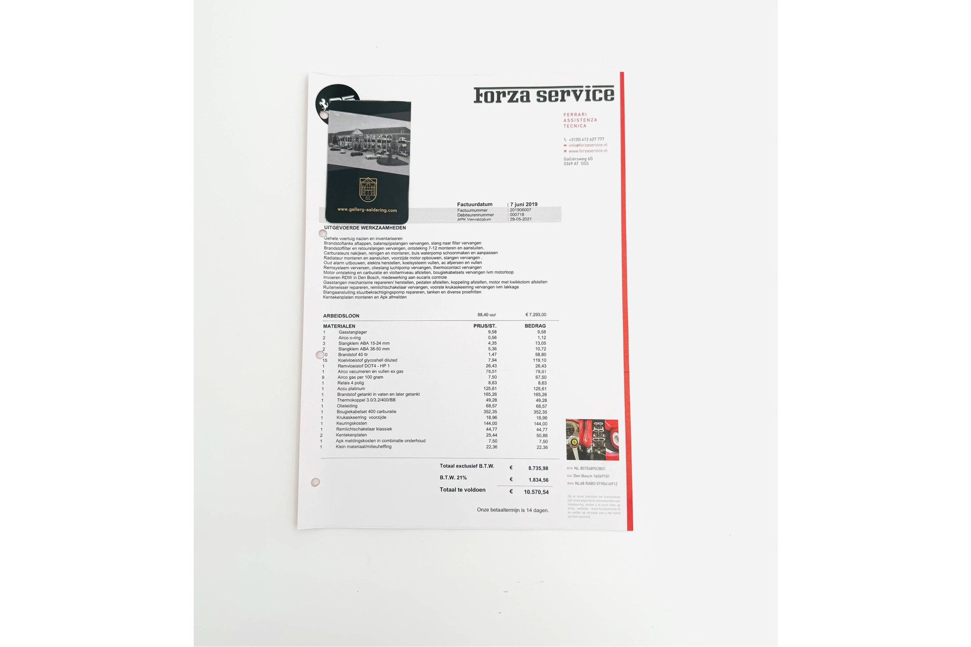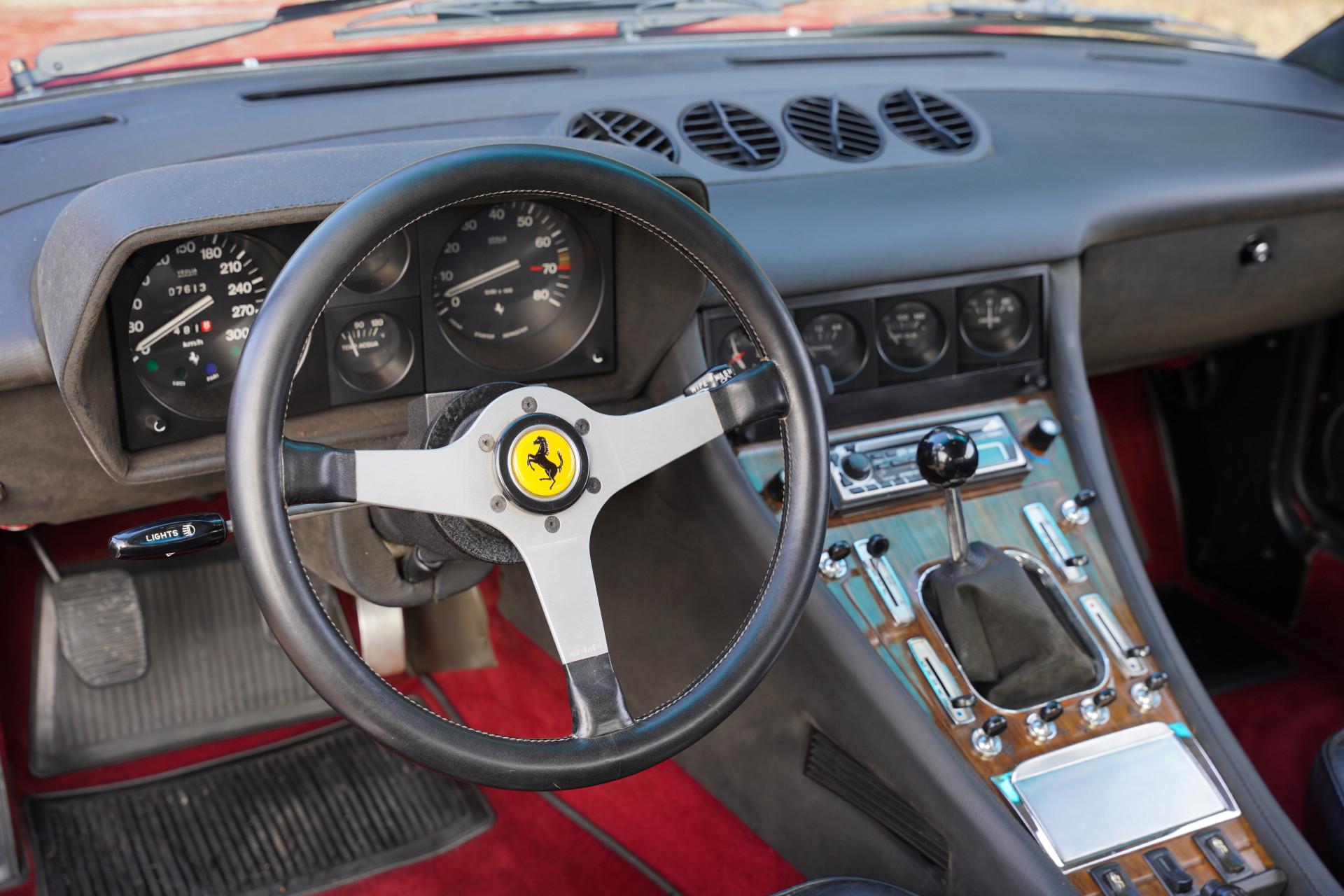 This Ferrari 365 GT4 is a masterpiece of originality and authenticity. The bodywork is sleek, with great alignment of the panels, and the original color ‘Rosso Corsa’ gleams beautifully. The interior, with its original leather upholstery, showcases a stunning patina. Isn’t that fantastic? The details of this car, such as the wooden steering wheel and the instrument cluster, evoke the spirit of Maranello in the 1970s. This is a truly unique example; the complete ownership history is known and supported by extensive documentation. We have a comprehensive list of all owners from the first day of delivery, including addresses of previous owners. The documentation also includes correspondence, the original owner’s manual, vintage photos of this Ferrari, and several invoices detailing maintenance carried out by top specialists.