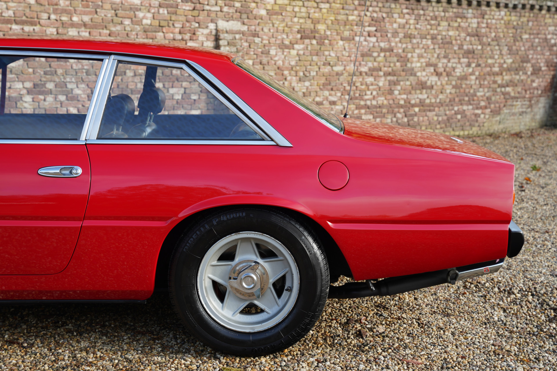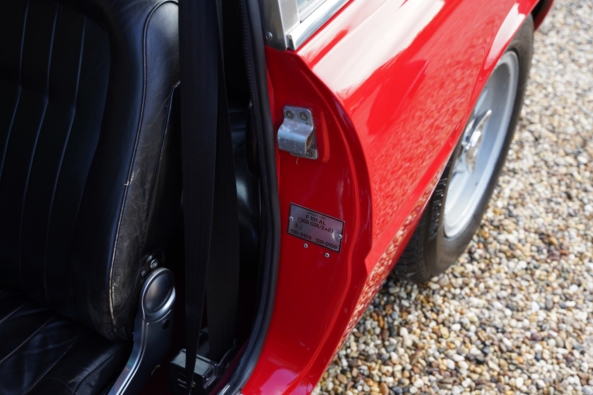 Dieser Ferrari 365 GT4 ist ein Meisterwerk der Originalität und Authentizität. Die Karosserie ist makellos, mit perfekten Passungen der Karosserieteile, und die originale „Rosso Corsa“-Lackierung glänzt wunderschön. Das Interieur mit seiner originalen Lederausstattung zeigt eine herrliche Patina. Ist das nicht fantastisch? Die Details dieses Fahrzeugs, wie das Holzlenkrad und das Instrumentenbrett, spiegeln den Geist von Maranello in den 1970er Jahren wider. Dieses Exemplar ist wirklich einzigartig; die vollständige Eigentümerhistorie ist bekannt und wird durch umfangreiche Dokumentation gestützt. Wir haben eine vollständige Liste aller Besitzer seit dem ersten Tag der Auslieferung, einschließlich der Adressen früherer Besitzer. Die Dokumentation enthält außerdem Korrespondenz, das originale Handbuch, alte Fotos dieses Ferraris und zahlreiche Rechnungen, die detailliert die Wartungsarbeiten von Top-Spezialisten beschreiben.