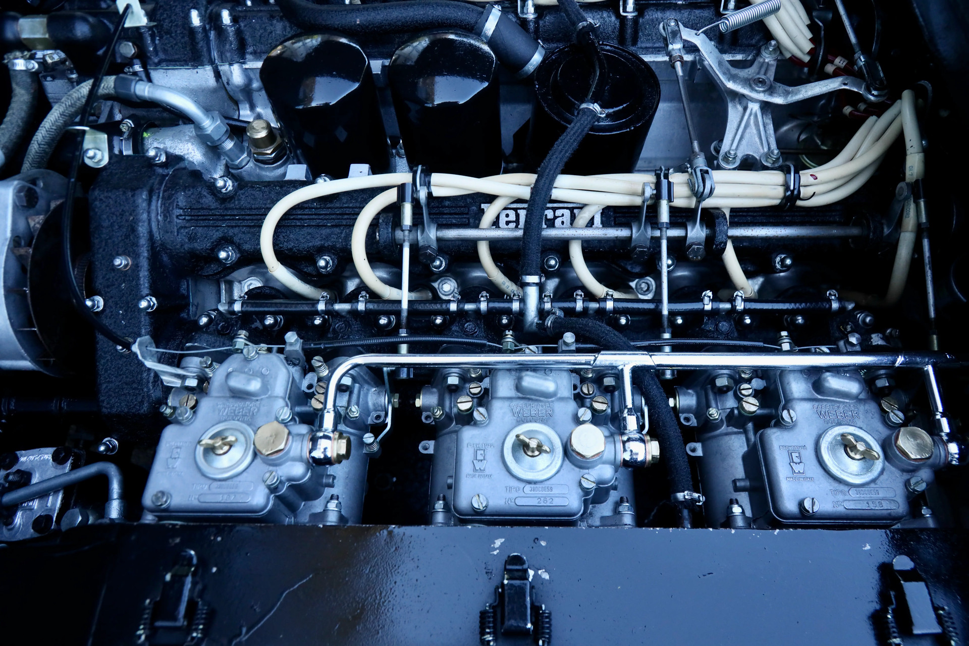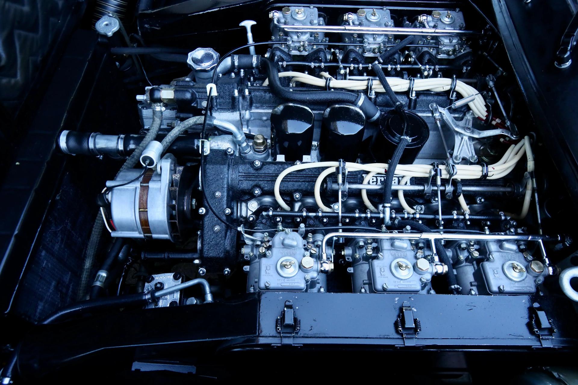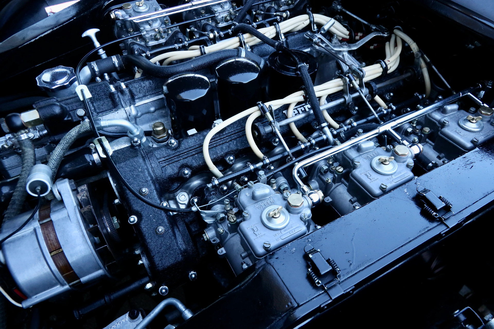 Unter der Haube schlug das Herz des Colombo-V12 mit 4,4 Litern Hubraum. Im Kern derselbe Motor wie beim Daytona, aber bewusst auf 340 PS gezähmt. Nicht weil er schwach war – sondern weil er harmonisch sein sollte. Die sechs seitlich angeordneten Weber-Vergaser ermöglichten die tiefgezogene Motorhaube, und der Klang? Ein orchestrales Grollen, selbst im Leerlauf wie ein Raubtier kurz vor dem Sprung.