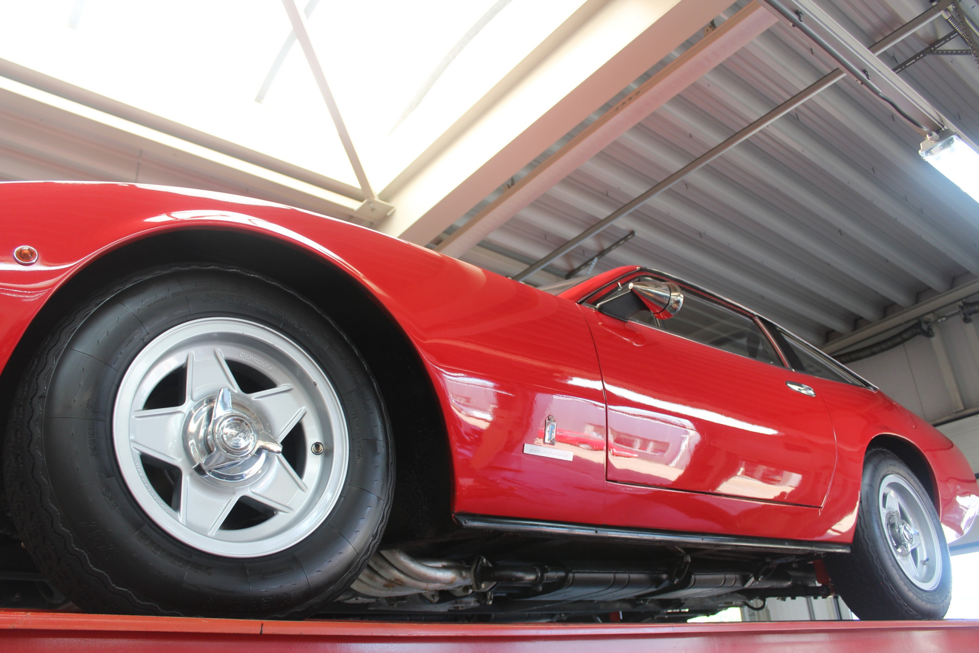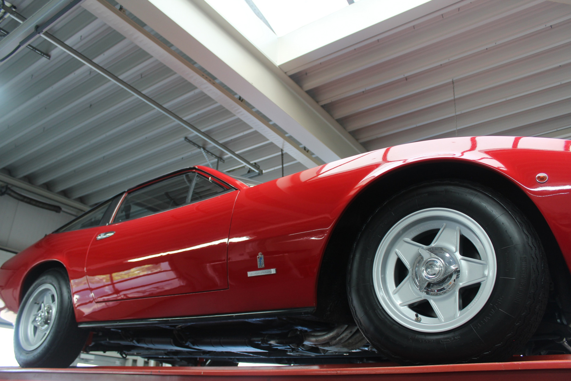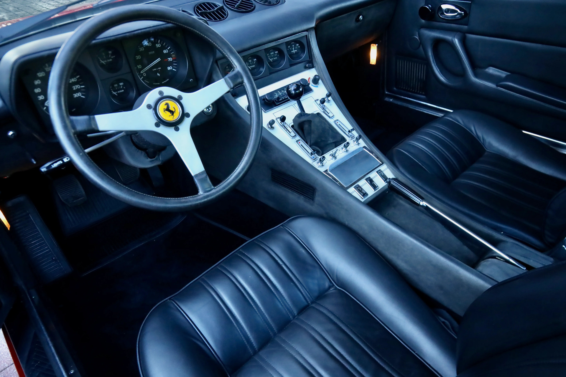Luxus? Jawohl! Serienmäßig mit Servolenkung, elektrischen Fensterhebern und Klimaanlage. Für einen Ferrari Anfang der Siebziger eine kleine Sensation. Dazu eine weichere Federung, die endlose Etappen von Paris nach Rom möglich machte. Und doch – mit Fünfganggetriebe und nahezu perfekter Gewichtsverteilung (51:49) blieb er ein echter Ferrari: fordernd, lebendig, aufregend.