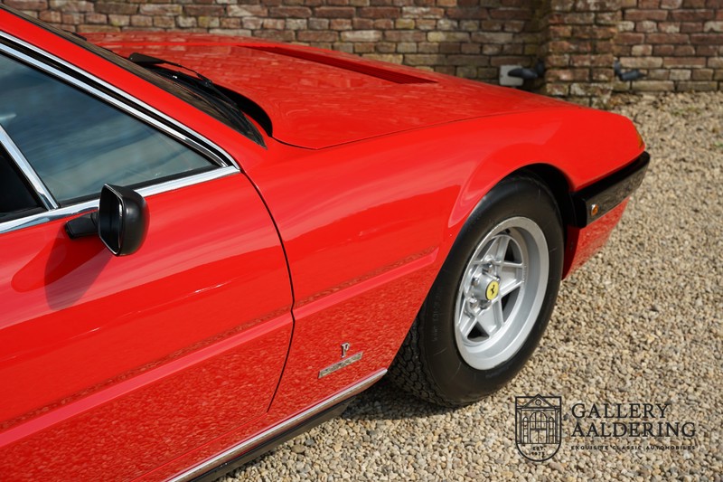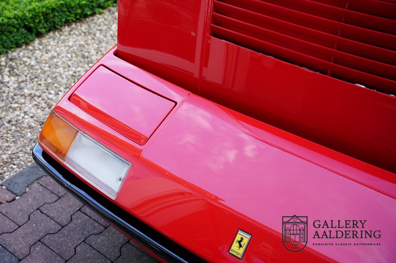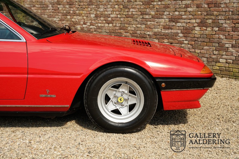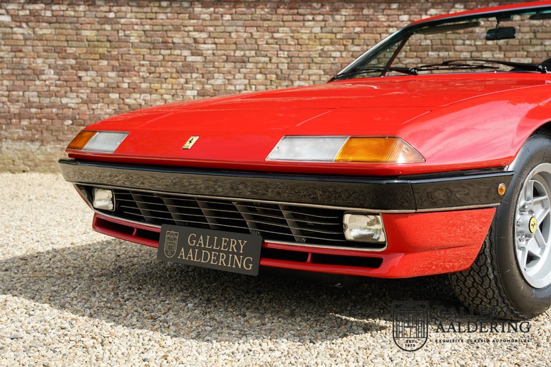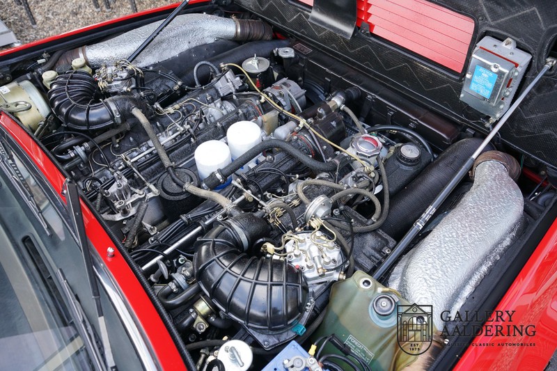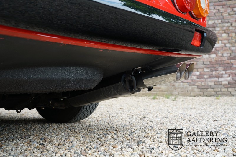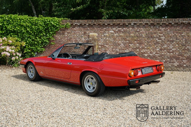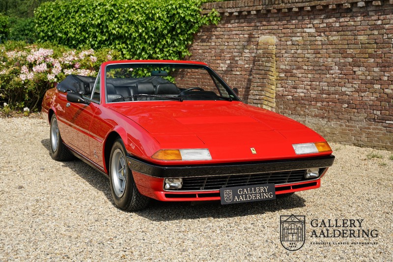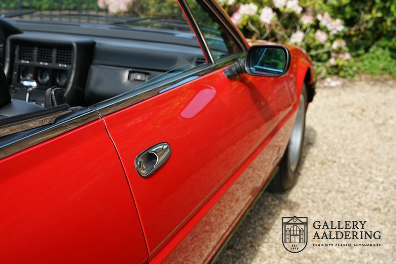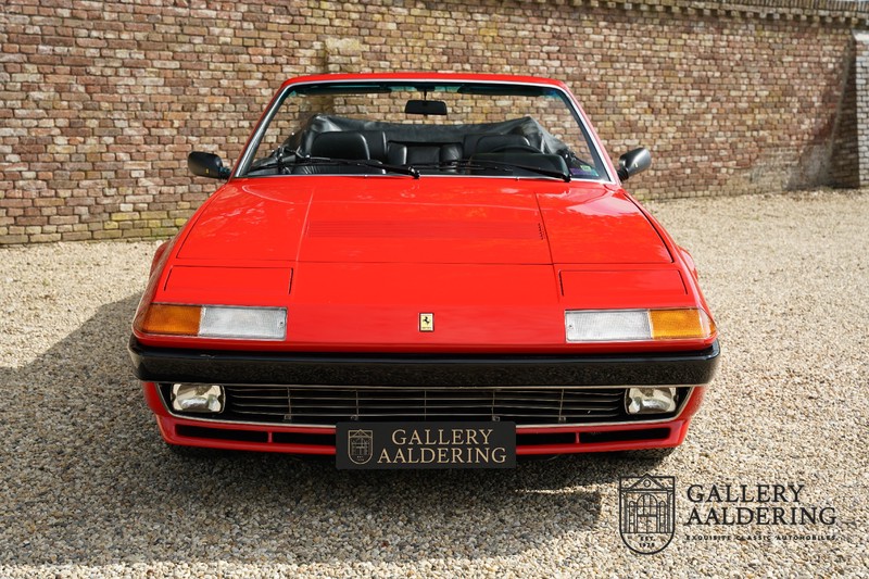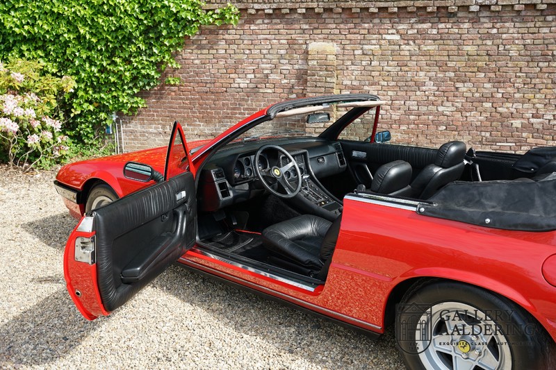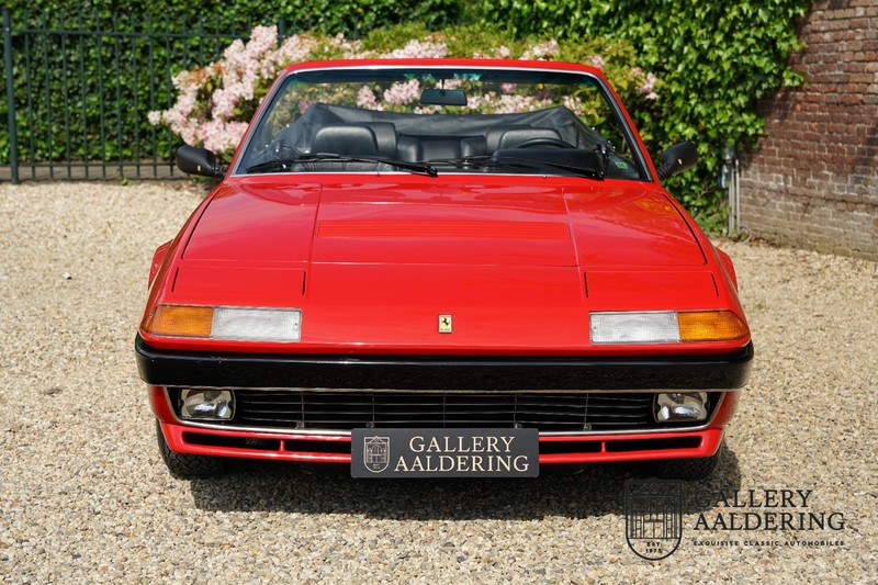 Deze Ferrari 400i werd kort na aanschaf naar Pavesi gebracht om te worden omgebouwd naar cabriolet. Pavesi maakte van allerlei auto’s cabrioletversies maar dit model gaf hem de meeste naamsbekendheid. Dit exemplaar verkeert in zeer originele conditie. De auto is uitgevoerd met een Rosso Corsa exterieur en een met zwart leder bekleed interieur en zwarte cabrioletkap. De lak is omwille van cosmetische redenen al eens opnieuw gespoten en verkeert, afgezien van wat hele lichte gebruikerssporen, in goede conditie. Het plaatwerk is mooi origineel en heeft correcte passingen. De cabrioletkap sluit overal mooi aan en is in goede conditie. Vanzelfsprekend is er een tonneau cover aanwezig voor op de dagen dat u volledig open kunt rijden.