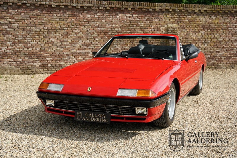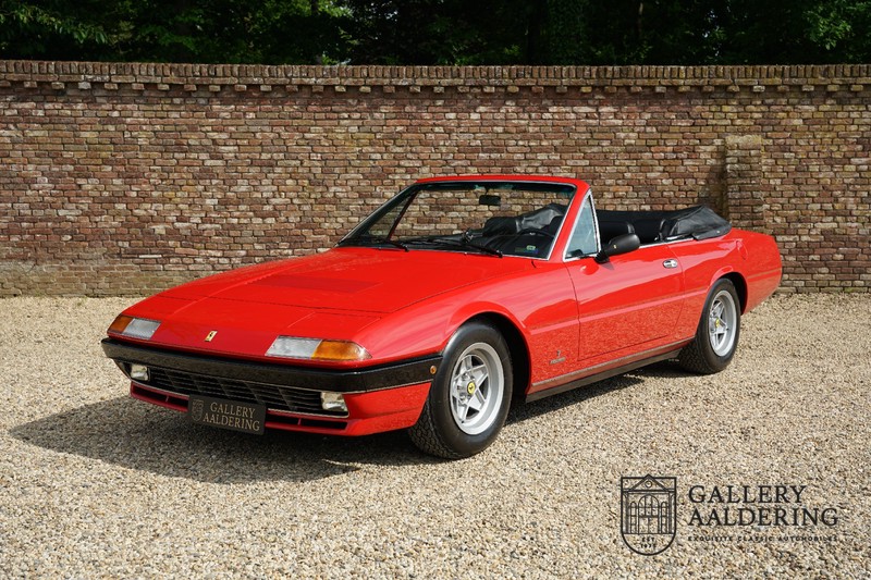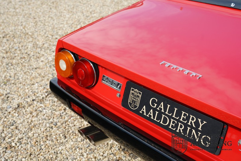 Het betreft hier een prachtige en uiterst zeldzame Ferrari 400i Pavesi Convertible. De 400i was onderdeel van de serie Ferrari’s die begon met de 365 2+2 GT4 en eindigde met de Ferrari 412i, in totaal werden de verschillende modellen gebouwd van 1972 tot net met 1989, het is daarmee de langs lopende modellijn van Ferrari tot op heden. Gedurende al die jaren was de vraag naar de verschillende modellen stabiel. Er was echter vanuit de markt ook een sterke vraag naar een cabrioletversie. Ferrari zag er niet voldoende noodzaak toe en besloot om geen cabriolet te ontwikkelen. Gelukkig was er in Milaan een couchbuilder genaamd Pavesi die vele verschillende auto’s ombouwde tot cabriolet. De standaard Ferrari 400i werd ontdaan van het dak, verstevigd en voorzien van een elektrisch te bedienen cabrioletkap. De Ferrari 400i was tevens de eerste Ferrari die leverbaar was met een automatische transmissie. Ferrari betrok de automaat via General Motors en ook dit exemplaar is voorzien van de TH400 automaat.