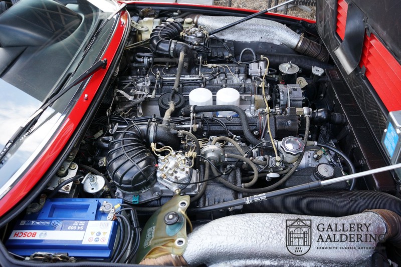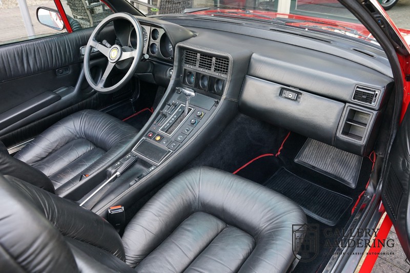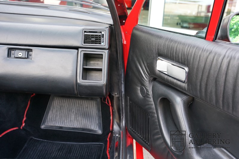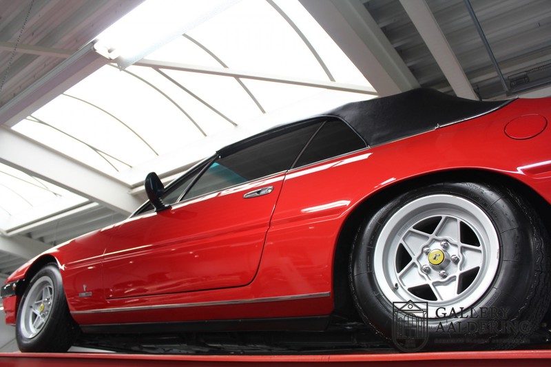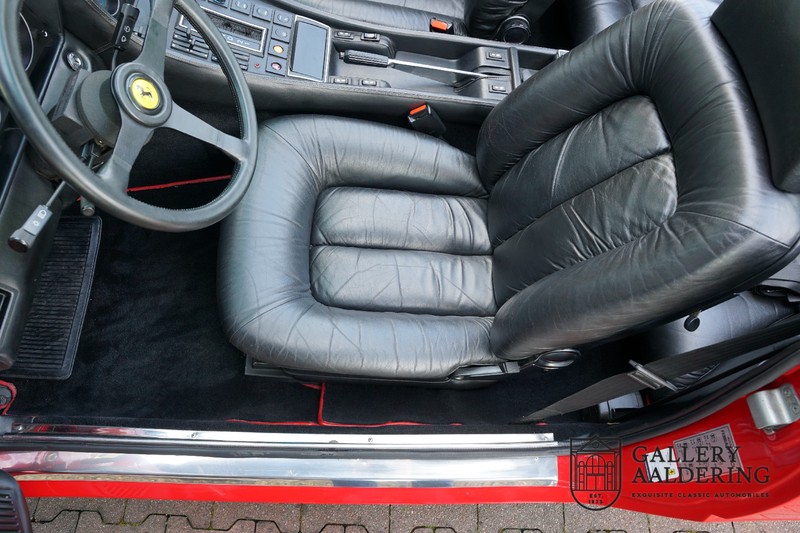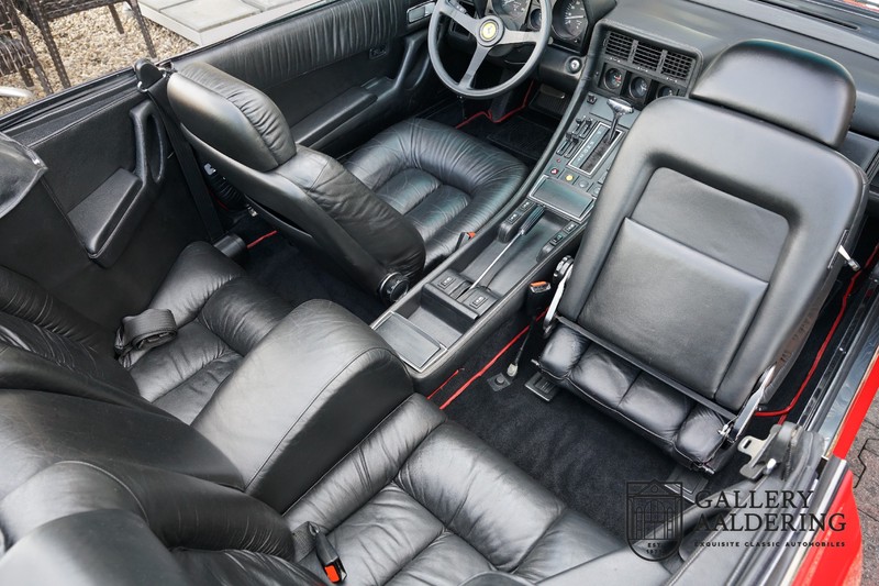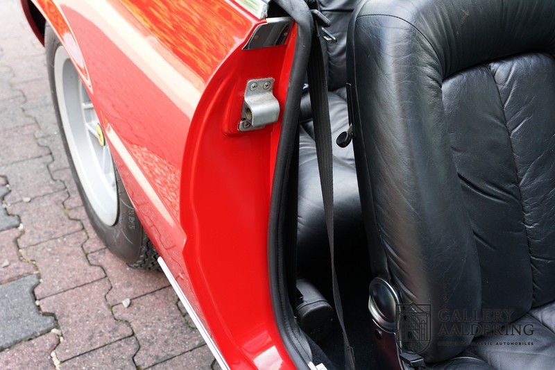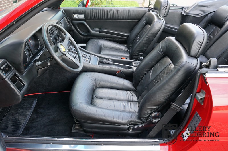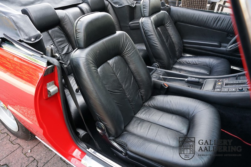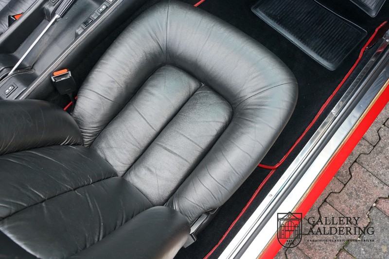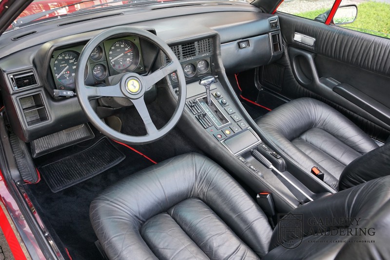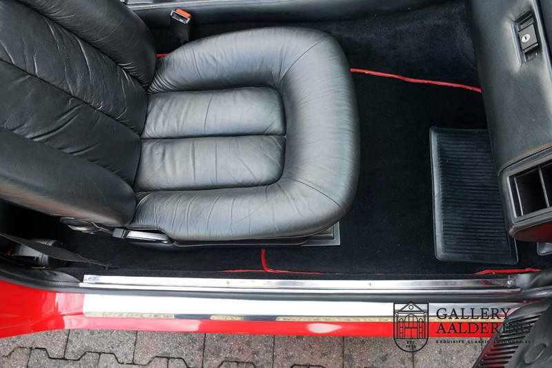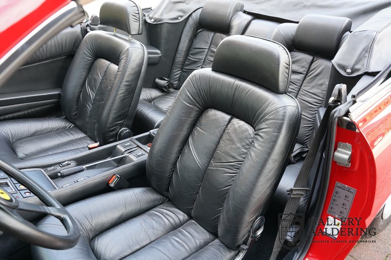 This Ferrari 400i was taken to Pavesi shortly after purchase in order to be converted into a topless model. Pavesi did many kinds of conversion but this one brought him the most fame. This example is in very authentic condition. The car has a Rosso Corsa exterior finish with black leather interior trim and hood. The paintwork has undergone a cosmetic respray and besides a few minor blemishes is in good condition. The original panelwork is correctly aligned. The hood fits neatly and is in good shape. A tonneau cover is also part of the inventory for days when you want to drive around with the top down.