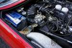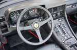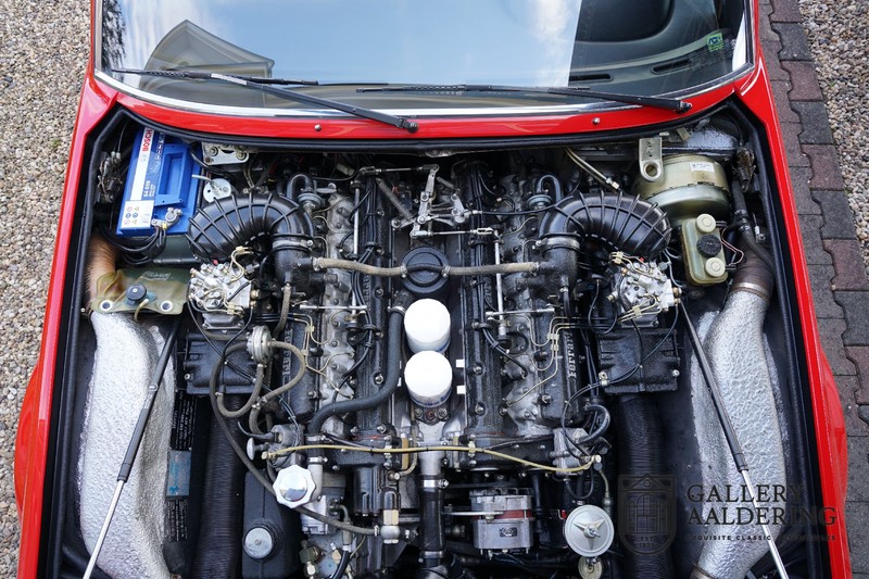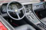 There is black leather upholstery and carpeting throughout. All controls and instruments appear to be original and all are in good working order. The electric hood mechanism works perfectly. A quick inspection reveals original Crommodora wheels shod in the correct Michelin TRX tyres that according to the dot code are only a few years old. The 4.8-litre V12 engine has a Bosch K-Jetronic fuel injector and produces 315 Ps. The 3-speed automatic perfectly suits the Ferrari 400i ’s relaxed driving characteristics. The combination of the high cheeked TRX tyres and the supple Koni suspension give the 400i a lovely comfortable ride. It is really no effort to enjoy long distances in this open-top tourer. The 4.8 V12 sings at the top of its voice and does not let you forget for even one moment that you are on the road with something very special!