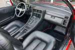 Het interieur is voorzien van fraai zwart leder en zwarte tapijten. Alle bedieningselementen en instrumenten lijken volledig origineel en functioneren zoals het hoort. De elektrische kapbediening functioneert eveneens uitstekend. Het leder op het dashboard verkeert eveneens in goede staat.
