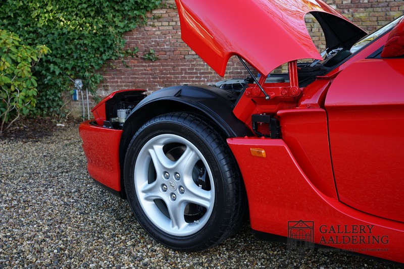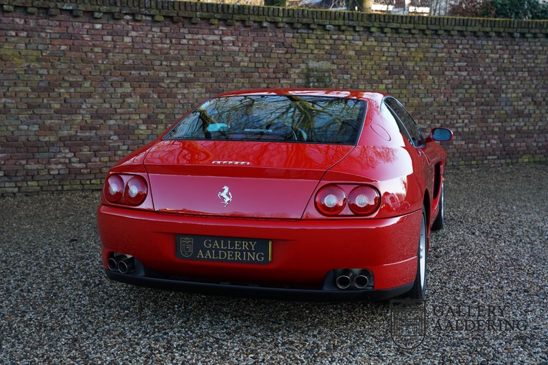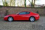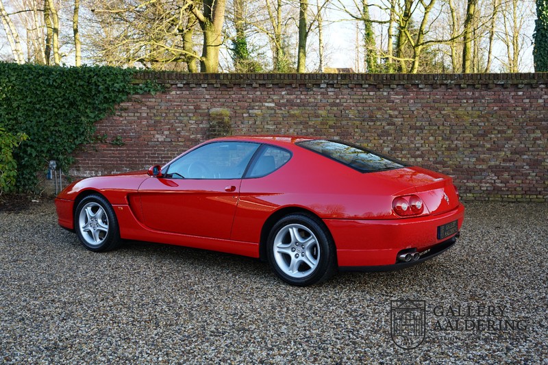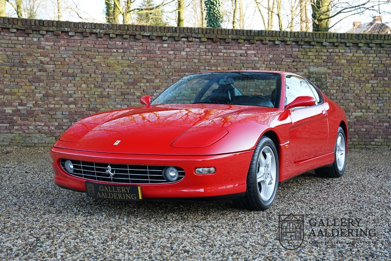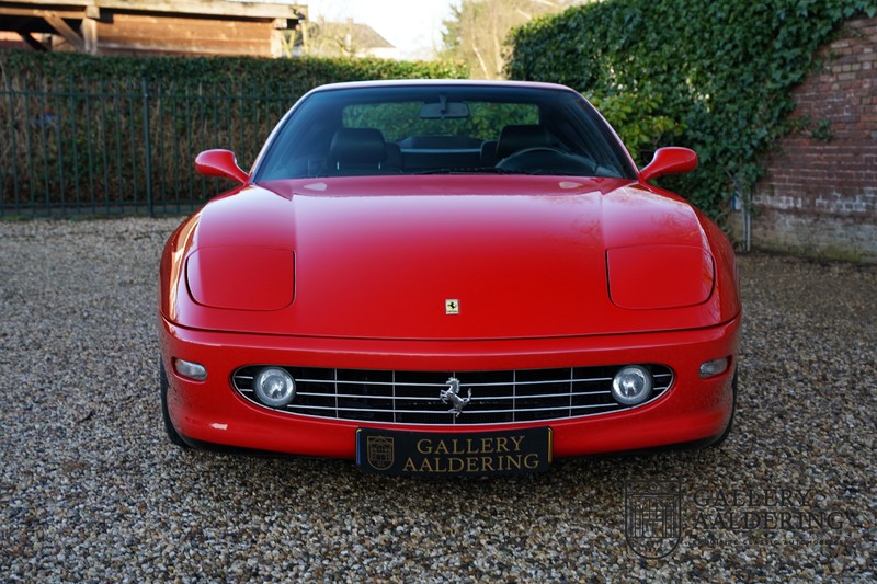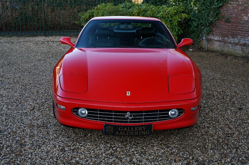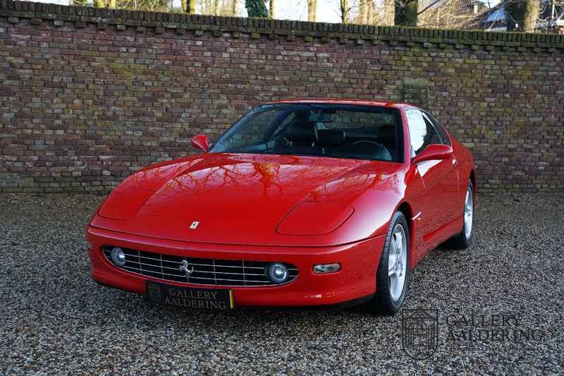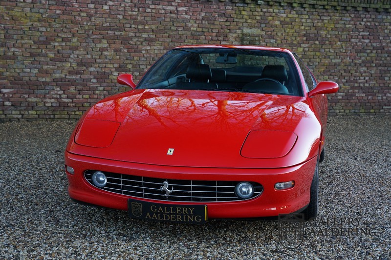 De Ferrari 456M is en blijft één van de meest fraaie vierzitters die ooit door de poorten van Maranello kwam rollen. Dit exemplaar werd in 1998 nieuw geleverd in Rome en is één van de weinige “Rosso Corsa” Ferrari 456M’s met handbak. De 456 was een Gran Tourer in optima forma toch was de automaat wat aan de trage kant om echt plezier aan de auto te beleven. De handbak heeft niet alleen meer versnellingen tot zijn beschikking maar daardoor ook fijnere bakverhoudingen. The one to have dus. Deze auto is nog altijd voorzien van haar originele motor, het betreft hier dus een matching numbers exemplaar.