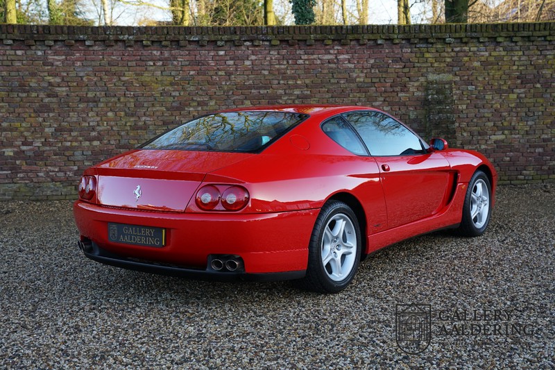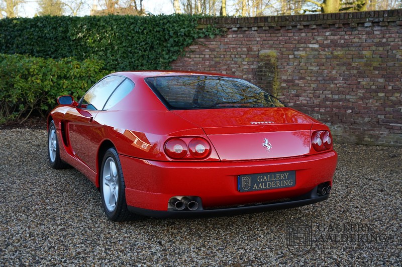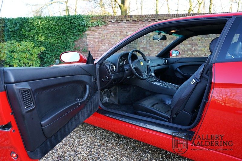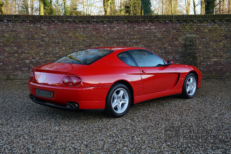 The Ferrari 456M is and remains one of the finest four-seaters to roll out of Maranello. In 1998 our car was supplied from new to its first owner in Rome and is one of the few manual “Rosso Corsa” Ferrari 456M’s. The 456 was a proper Grand Tourer in almost every sense although the performance tended to be hampered somewhat by a sluggish automatic transmission. The manual on the other hand has more gears and therefore also a better gear ratio. This is the one to have. This car has retained its original and therefore matching numbers engine.