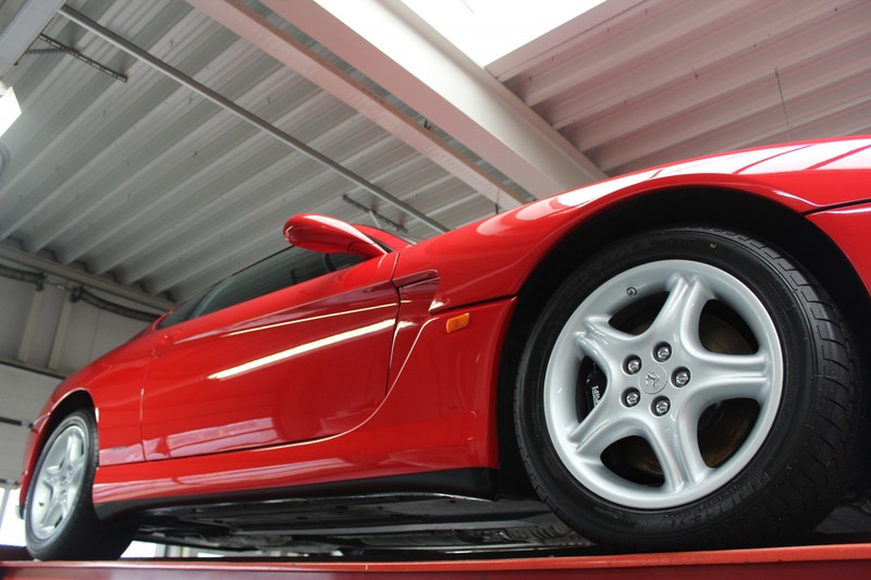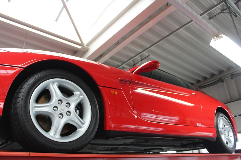 The bodywork is in fine shape. The large composite bonnet was a very advanced feature when the Ferrari 456 was introduced. The bonnet is happily also in a good condition. The car has its original wheels shod in proper sized, good quality rubber. The rims are also fully free from damage and scuff marks. The characteristic headlights work exactly as they should. The paintwork is 100% original. In other words an outstandingly cared for the exterior.