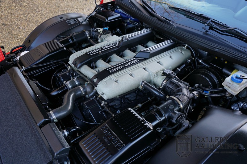 De techniek is immer goed onderhouden bij Ferrari dealers of specialisten. De auto heeft pas een grote beurt gehad bij de Ferrari dealer en is daarbij ook voorzien van nieuwe distributieriemen. De F116C V12 is 5,5 liter groot en levert 442 pk. Gecombineerd met de handbak en een zeer lage Cw waarde is deze combinatie goed voor een topsnelheid van ruim 300 kilometer per uur en gaat de 456 als het moet van 0-100 in zo’n 5 seconden. Ook vandaag de dag nog steeds serieuze waarden. Tegenwoordig is het volstrekt normaal voor een auto om keuze te bieden uit 30 verschillende instellingen. Deze auto heeft een sportknop die het onderstel wat stugger maakt en de reactie op het gaspedaal wat sneller. Inlaat en uitlaatgeluid zijn altijd gelijk en eigenlijk perfect gekozen. Als u dan de eerste versnelling inlegt en de koppeling op laat komen, dan bekruipt u toch het gevoel dat vroeger inderdaad alles beter was. Het is dan ook, geheel in lijn der verwachtingen een feest om met deze Ferrari te rijden. Het mooie aan het rijden in een Ferrari is dat u niet per sé naar een circuit hoeft en de motor tot de rode lijn moet doortrekken om er rijplezier uit te halen. Ook als u normaal met het verkeer meebeweegt en die fantastische V12 op de achtergrond zijn werk doet dan is het al een feest van jewelste. Het is zo’n typische auto die u zult pakken voor de mooie dagen en af en toe lekker laat rennen maar al gauw steeds meer wordt gebruikt omdat het simpelweg zo’n heerlijke manier van reizen is.