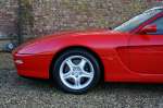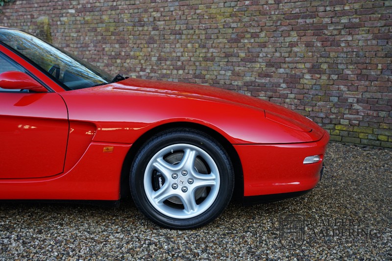 Die Karosserie befindet sich in einem wunderschönen Zustand. Die große Verbundstoffhaube war ein sehr progressives Merkmal bei der Einführung des Ferrari 456. Glücklicherweise befindet sich die Motorhaube auch in einem sehr guten Zustand. Das Auto hat seine Originalfelgen mit guten Reifen in den richtigen Größen, die Felgen sind auch alle völlig beschädigungsfrei. Die charakteristischen Klappscheinwerfer funktionieren einwandfrei und auch die Lackierung ist komplett original. Kurz gesagt, ein top gepflegtes Exemplar.