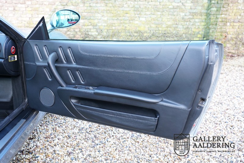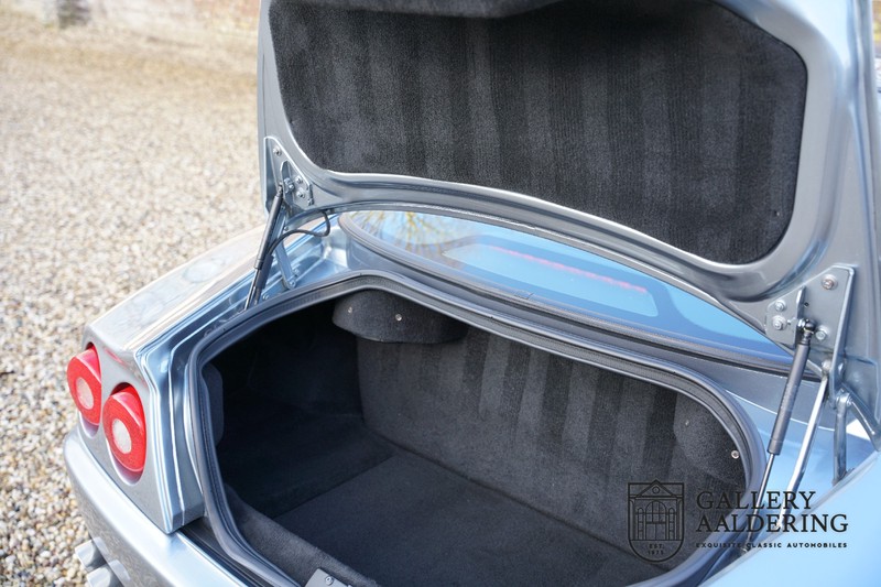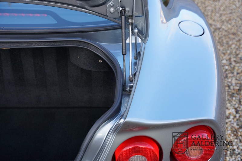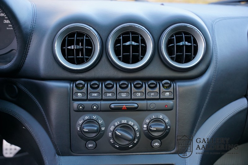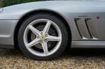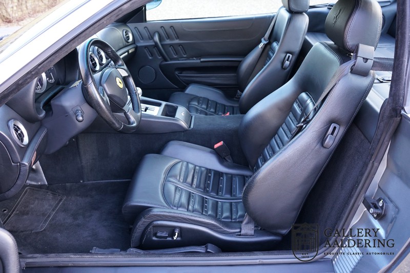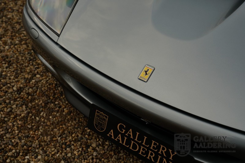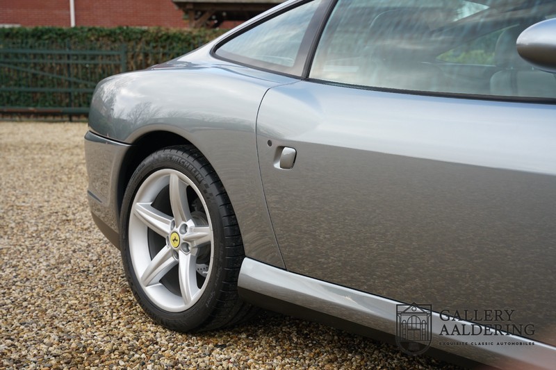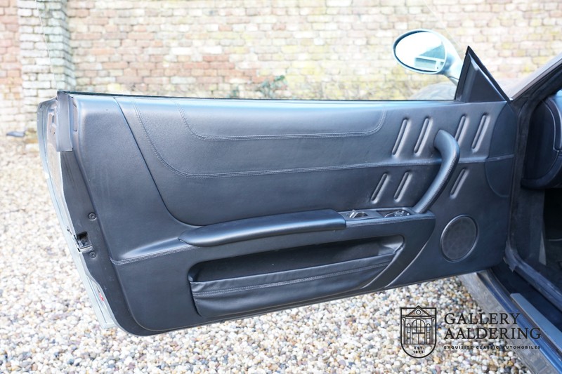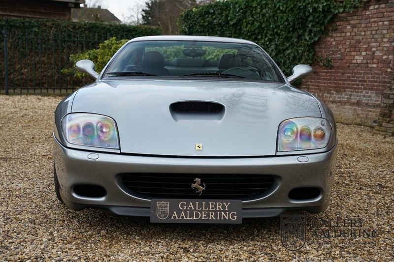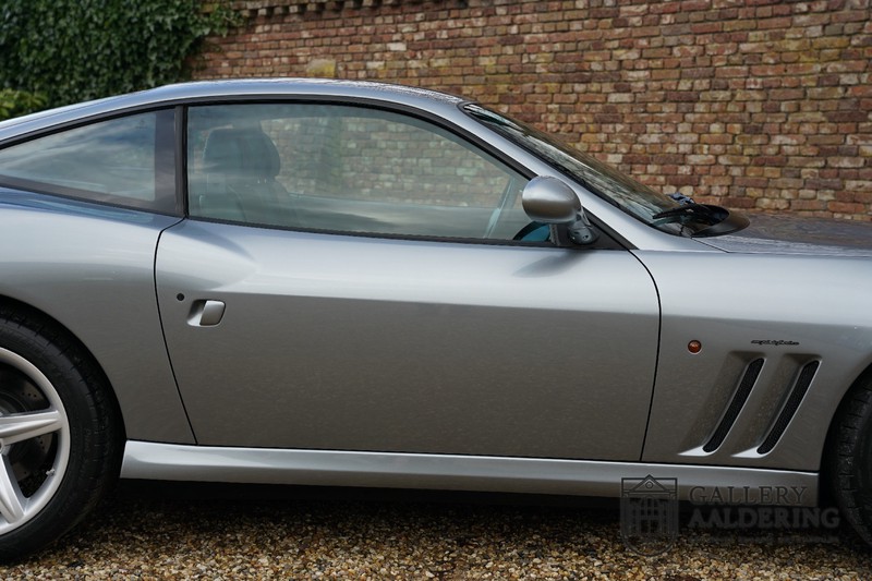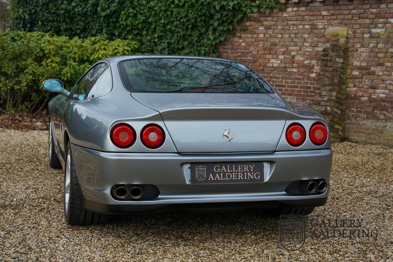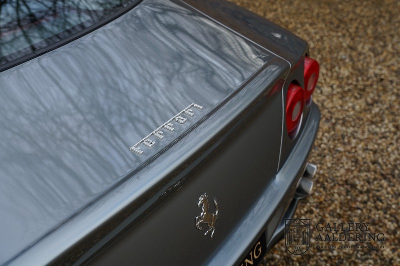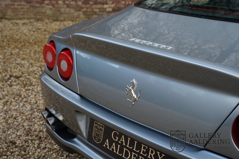 Wat moet het een bijzondere dag zijn geweest toen de eerste en tevens enige eigenaar van deze Ferrari 575 Maranello zijn nieuwe aanwinst op kon halen bij Ferrari Munsterhuis in Hengelo. De auto was maanden daarvoor zorgvuldig samengesteld en is tijdloos fraai uitgevoerd. De buitenzijde is uitgevoerd in “Grigio Titano” en de binnenzijde is uitgevoerd in “Nero” met die fantastisch zittende Daytona stoelen. Objectief beschouwd zou alleen de kleurcombinatie al reden zijn om deze auto te willen kopen. Het simpele feit dat dit exemplaar is uitgevoerd met de uiterst zeldzame handgeschakelde transmissie maakt de auto alleen maar begeerlijker. De auto kreeg tevens een Tubi uitlaat om de klanken die de V12 produceert extra te versterken, voor Ferrari-liefhebbers is het geluid van een V12 met Tubi uitlaat voeding voor de ziel. De Ferrari 575M was een doorontwikkeling van de uiterst succesvolle Ferrari 550 en was op alle punten net even wat meer verfijnd. Zo heeft de 575 de beschikking grotere remmen, een krachtiger motor, verbeterde aerodynamica en een fraaier interieur. Het allergrootste verschil met de 550 was echter wel dat de Ferrari 575M met een F1-transmissie kon worden besteld, de Ferrari verkoper van dienst verkocht het destijds als: precies zoals Schumacher rijdt, met flippers aan het stuur. De bak was razendsnel in het inleggen van de versnellingen maar minder snel in het koppelen, de rijervaring was dus vaak vrij schokkerig en lastig te doseren. Dat merkte ook de eerste eigenaar van dit exemplaar tijdens een proefrit en hij deed wat slechts 242 mensen zouden doen: het vinkje zetten voor de handgeschakelde transmissie.