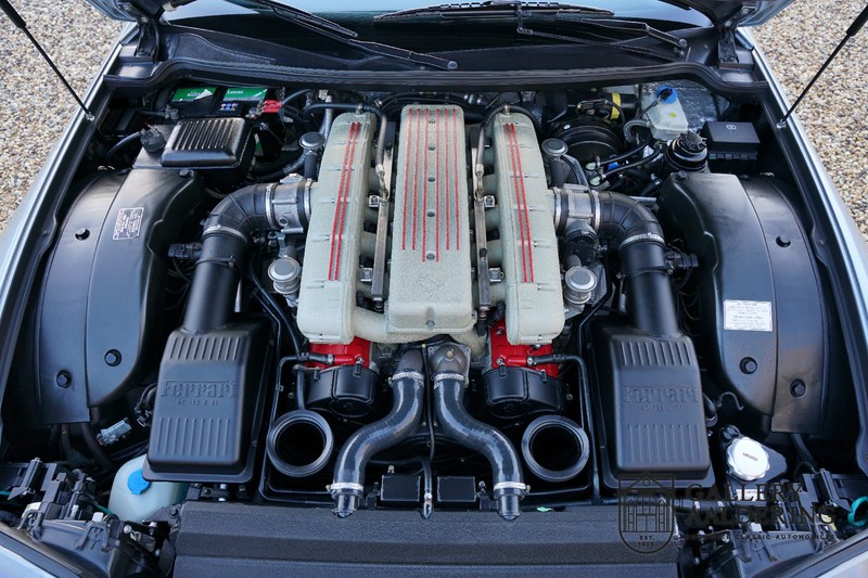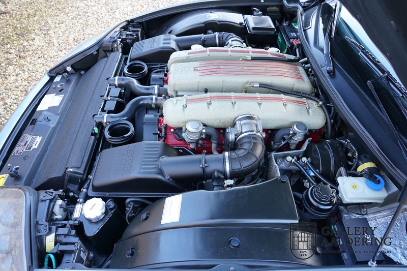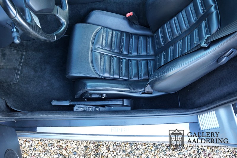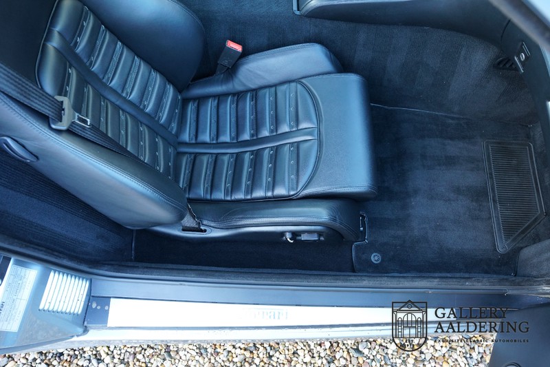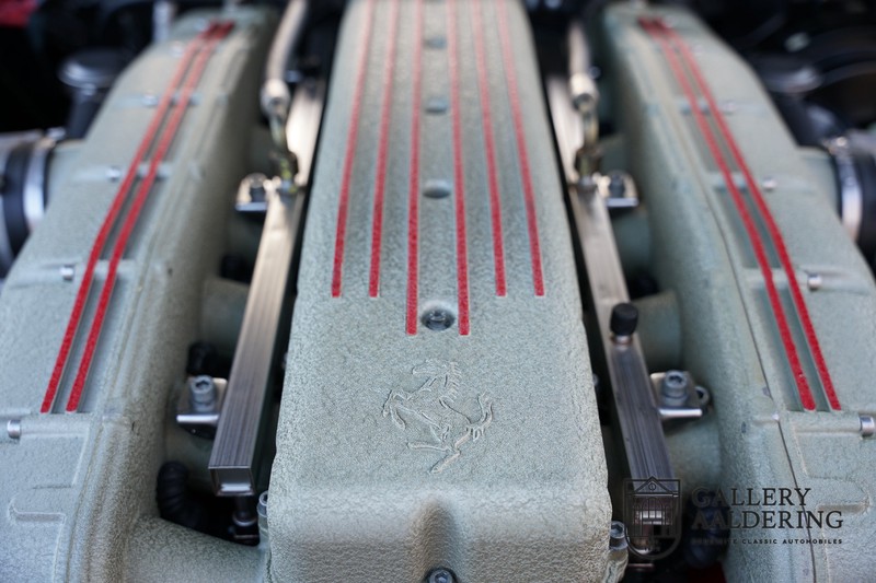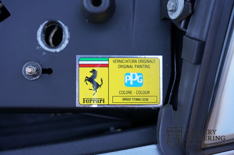 The body of this example is in very good condition. The sheet metal is completely original. The fits are correct and the sheet metal is beautifully thin. The car is still in the first paint. That not only the paint is beautifully cared for. Here and there some very light signs of use are visible, but nothing that does not match the mileage and age of the car. The Ferrari is fitted with the original five-spoke alloy wheels fitted with new Michelin Pilot Supersports tires in the correct sizes. At the rear, the subtle Tubi-style exhaust stands out. The Tubi has slightly thicker end pieces than the standard car.