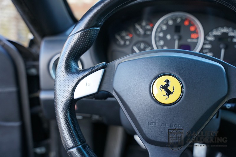 But it doesn’t matter how good the body looks, or how nice the interior feels. A Ferrari has only one goal: to drive! We can reassure you this Ferrari 575M certainly does not disappoint. In fact, it is a car that will exceed many expectations of what an almost 20-year-old Ferrari is capable of. The 5.7 litre F133 E/G is a true masterpiece. The intake is variable and has a very solid engine. The V12 produces 515 hp and is coupled to a wonderfully shifting manual transmission with 6 gears. The clutch is easy to operate and has a good engagement point. The steering feel in this Ferrari is so wonderfully analogous, modern offers from Maranello simply cannot match that. The engine is quite far back in the chassis and contributes to the fantastic balance in the car. Despite the fairly hefty car weight of 1,850 kilos, the Ferrari has a light-footed driving character and it is simply a pleasure to drive this car at full throttle on your favourite mountain road. The sound of that V12, the clicking of the lever when the next gear is inserted, everything adds up to one fantastic sum of Italian emotion and pure driving experience. The car has been maintained all her life at the Ferrari dealer and is therefore technically in top condition. Known as one of the most solid V12 engines Ferrari has ever built, the F133 can easily handle high mileage with proper maintenance. The Ferrari 575M is such a typical car that knows how to captivate its driver under any circumstance. Whether you drive with the traffic at 2,000 rpm or whether you drive at speed in the left lane in Germany, the car can do everything, does everything and convinces every kilometre.