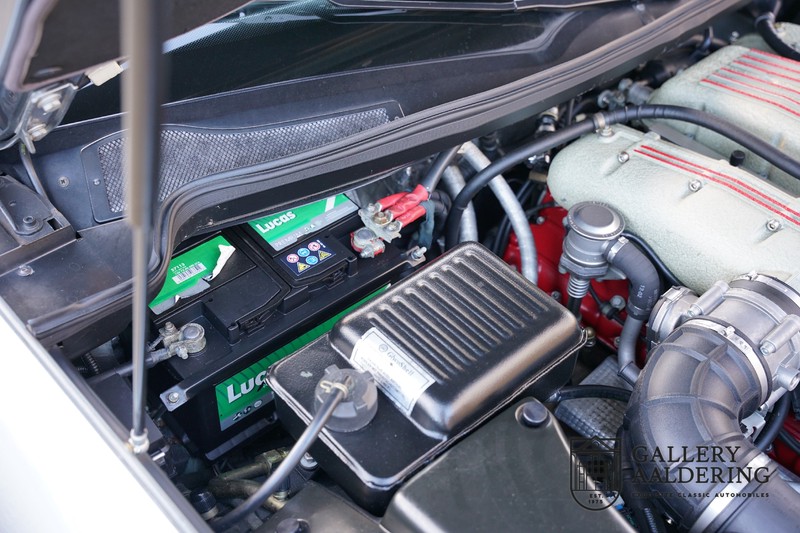 Es spielt aber keine Rolle, wie gut die Karosserie aussieht oder wie gut sich der Innenraum anfühlt. Ein Ferrari hat nur ein Ziel: Fahren! Wir können Ihnen versichern, dass dieser Ferrari 575M Ihnen sicherlich nicht enttäuschen wird. Es wird sogar noch besser, denn es ist ein Auto, das viele Erwartungen an einen fast 20 Jahre alten Ferrari übertreffen wird. Der 5.7 Liter F133 E/G Motor ist ein wahres Meisterwerk. Es ist ein sehr solider Motor mit variablen Einlassventilen. Der V12 leistet 515 PS und ist an ein perfekt schaltendes Schaltgetriebe mit 6 Gängen gekoppelt. Die Kupplung lässt sich leicht bedienen und hat einen guten Eingriffspunkt. Das Lenkgefühl in diesem Ferrari ist so wunderbar analog, da können moderne Angebote aus Maranello einfach nicht mithalten. Der Motor ist ziemlich weit hinten im Chassis montiert und trägt zu der großartigen Balance im Auto bei. Trotz des recht stattlichen Fahrzeuggewichts von 1.850 Kilo hat der Ferrari einen leichtfüßigen Fahrcharakter und es macht einfach Spaß, mit diesem Auto Vollgas auf der beliebten Bergstraße unterwegs zu sein. Der Sound dieses V12, das Klicken des Schalthebels beim Einlegen des nächsten Gangs, alles summiert sich zu einer fantastischen Summe aus italienischer Emotion und purem Fahrerlebnis. Das Auto wurde ihr ganzes Leben lang beim Ferrari-Händler gewartet und ist daher technisch in einem Top-Zustand. Bekannt als einer der solidesten V12-Motoren, die Ferrari je gebaut hat, kann der F133 bei richtiger Wartung problemlos eine hohe Laufleistung bewältigen. Der Ferrari 575M ist so ein typisches Auto, das seinen Fahrer unter allen Umständen zu fesseln weiß. Ob mit 2.000 U/min im Verkehr oder mit Tempo auf der linken Spur unterwegs zu sein, das Auto kann alles, macht alles mit und überzeugt auf jedem Kilometer.