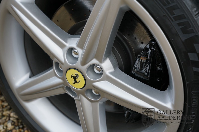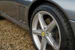 Die Karosserie dieses Exemplars befindet in sehr gutem Zustand, sie hat originales und dünnes Blech und alle Passungen sind korrekt. Das Auto hat noch seinen Erstlack, welche sehr gut gepflegt worden ist. Hier und da sind einige ganz leichte Gebrauchsspuren vorhanden, aber nichts was nichts was der Laufleistung und dem Alter des Autos nicht entsprechen würde. Der Ferrari ist mit den originalen Fünfspeichen-Leichtmetallrädern ausgestattet, die mit neuen Michelin Pilot Supersports-Reifen in den richtigen Größen versehen sind. Am Heck fällt der dezente Auspuff im Tubi-Stil auf. Der Tubi-Auspuff hat etwas dickere Auspuffrohre als das Standardauto.