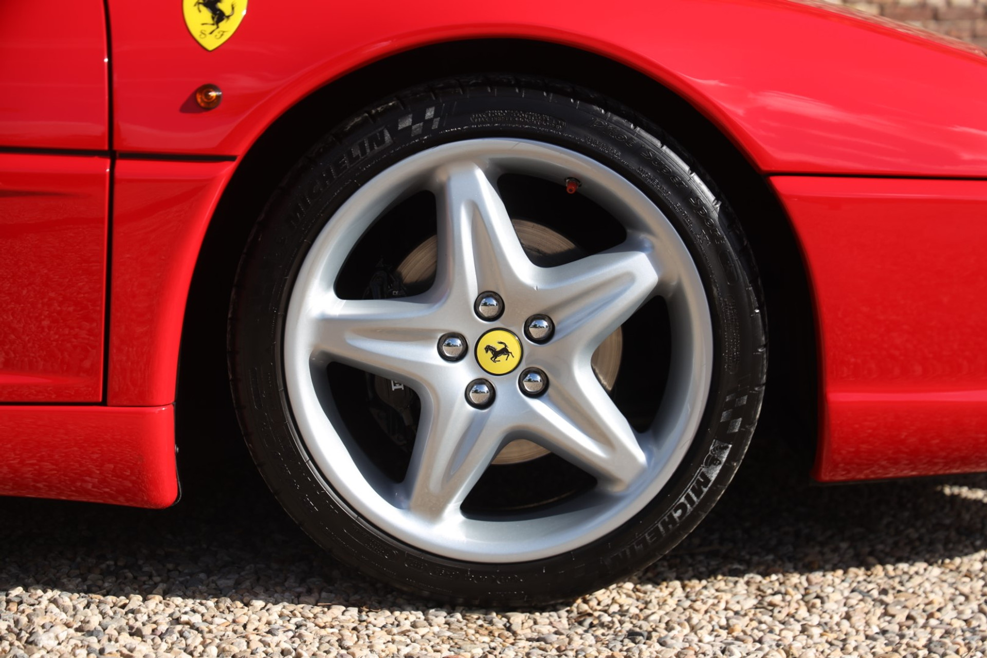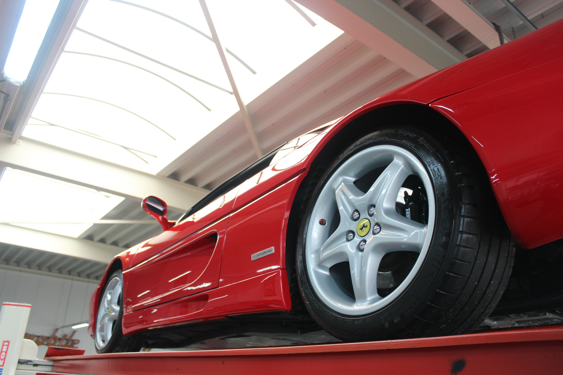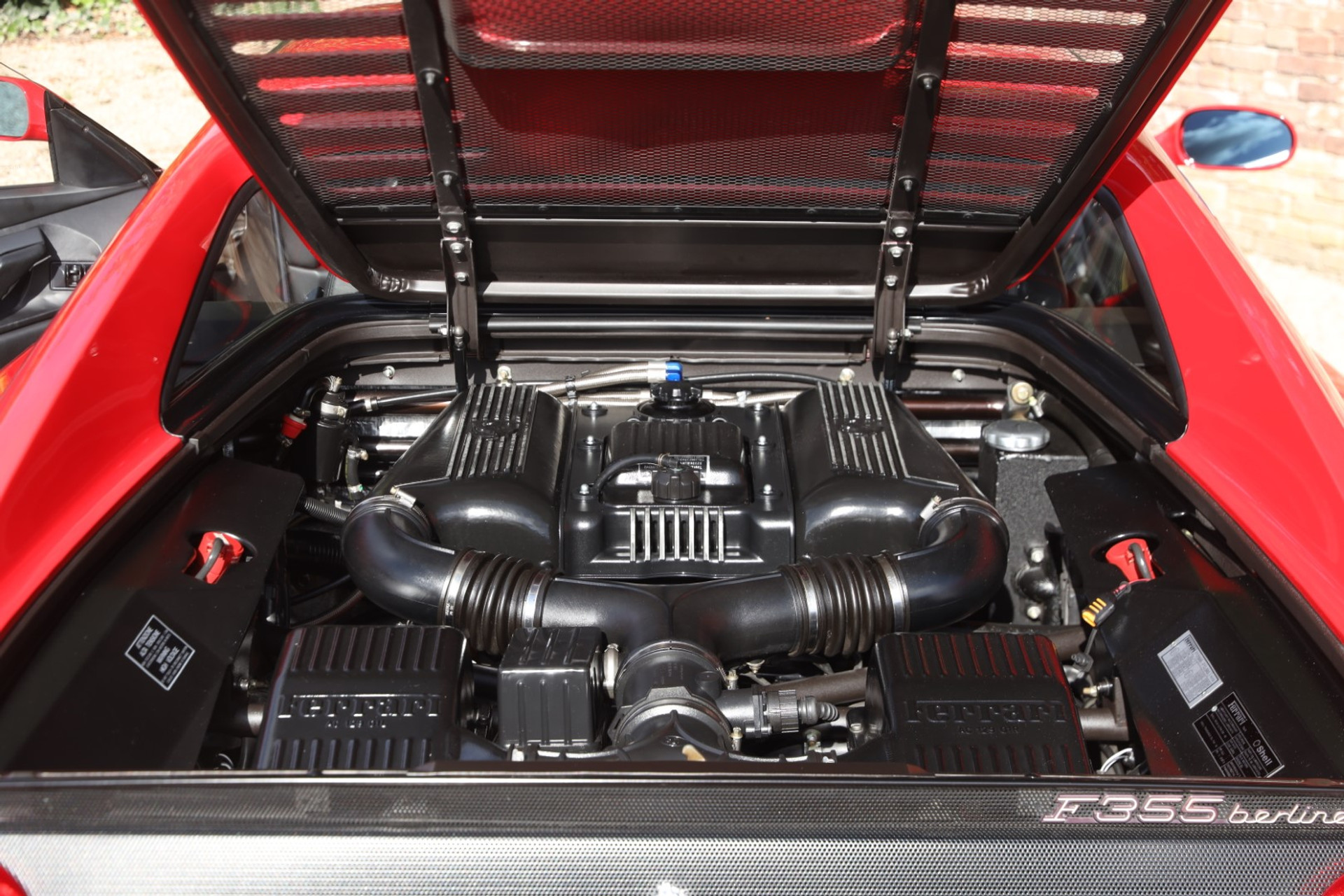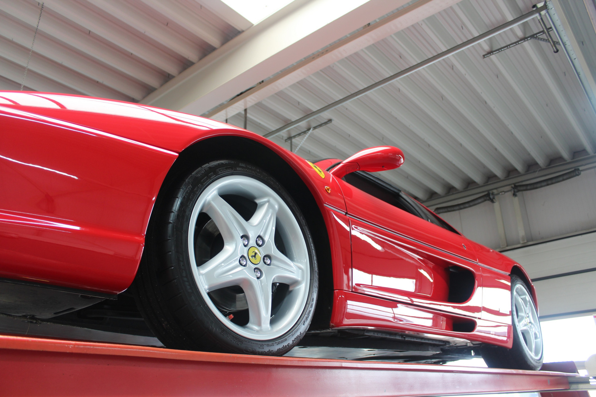 Der Wagen weist lediglich 45.000 Kilometer Laufleistung auf und wurde durchgehend bei offiziellen Ferrari-Händlern gewartet. Seine Historie ist lückenlos dokumentiert. Erst kürzlich erhielt der F355 eine große Wartung im Wert von 24.000 €, inklusive Zahnriemenwechsel und verschiedener Optimierungen – technisch also auf dem neuesten Stand.