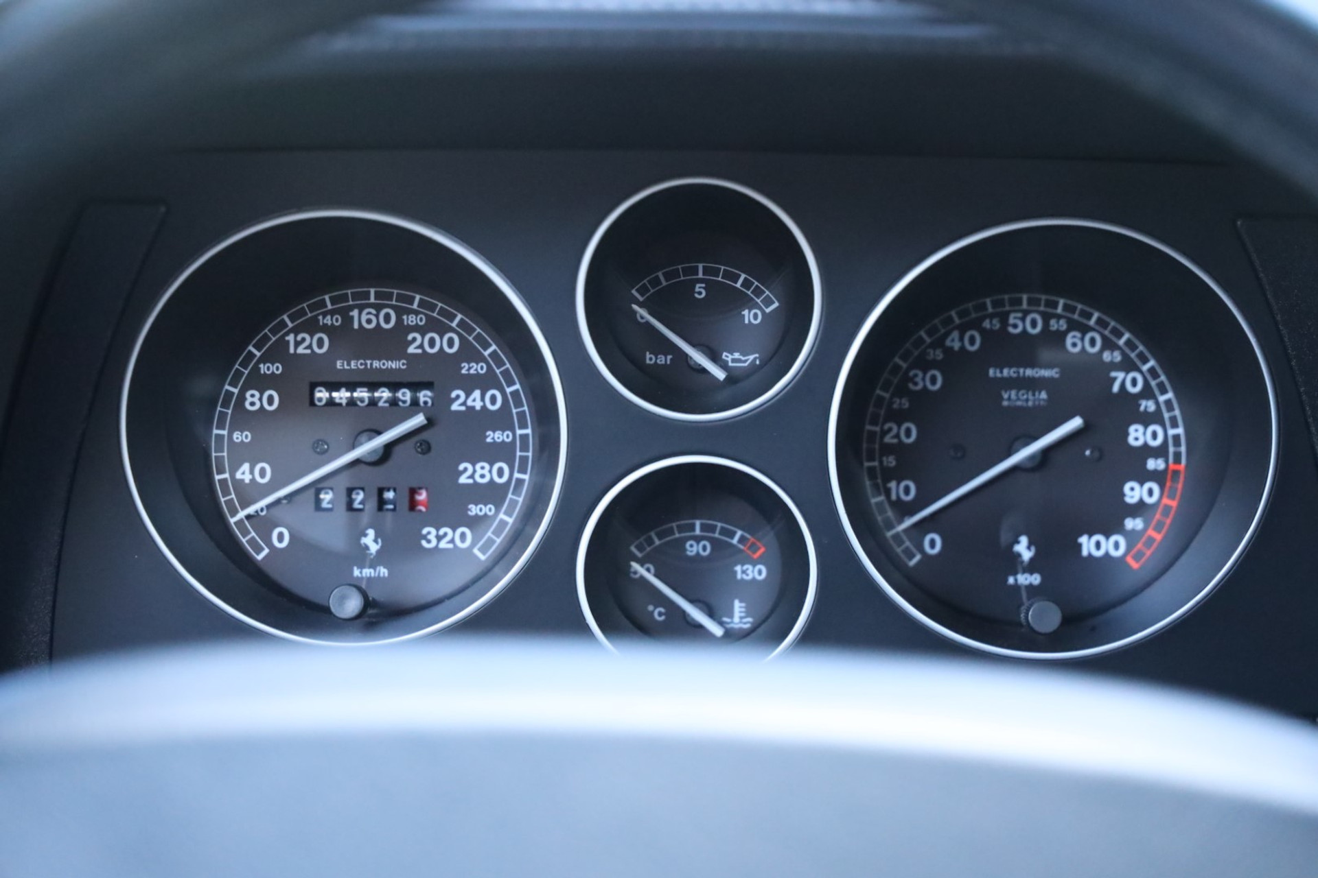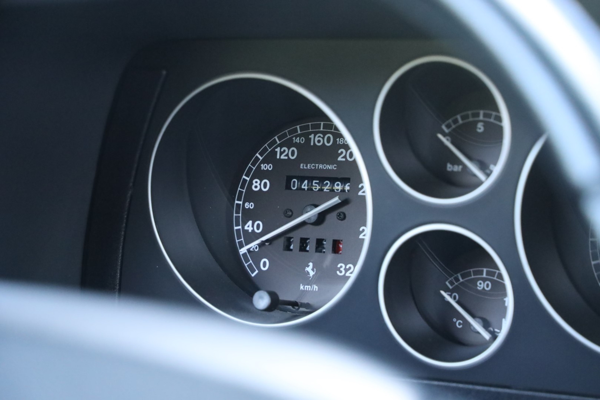 Met slechts 45.000 kilometer op de teller en een volledig door de officiële Ferrari-dealer onderhouden historie, is de staat en herkomst van dit exemplaar uitzonderlijk goed gedocumenteerd. Onlangs werd er nog een grote onderhoudsbeurt uitgevoerd ter waarde van €24.000, inclusief de vervanging van de distributieriemen en diverse verfijningen, waarmee de auto technisch in topconditie verkeert.