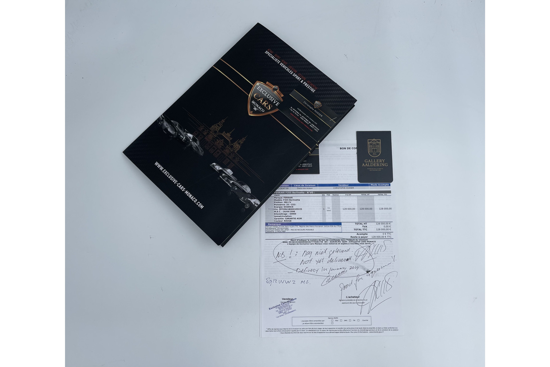 De auto werd oorspronkelijk nieuw geleverd door Cavallari Monaco Motors en wordt compleet aangeboden met alle facturen en de originele lederen boardmap. Een exemplaar dat in alle opzichten overtuigt: uitstraling, documentatie, conditie en onderhoud.