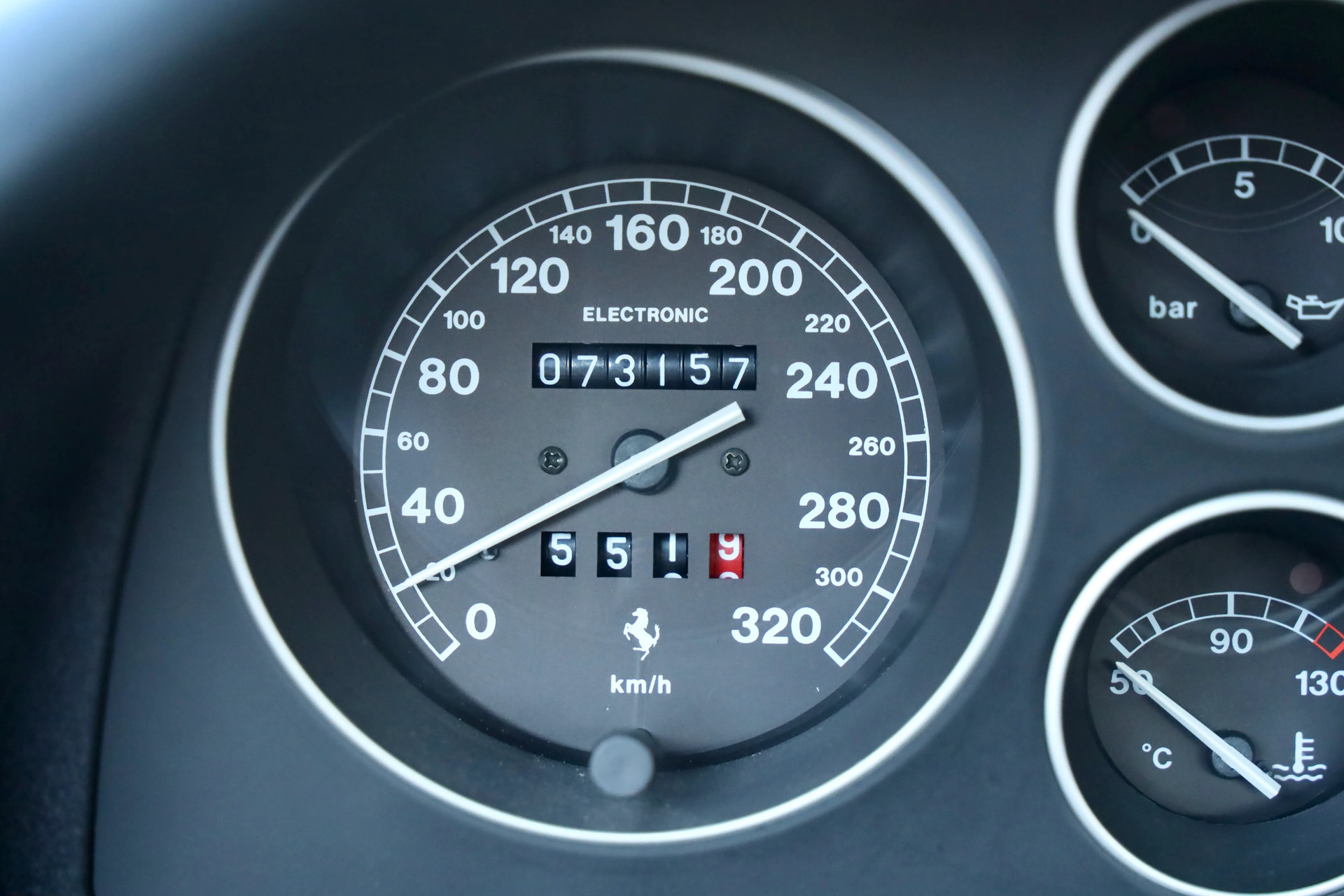 Het exterieur is uitgevoerd in de ultieme Ferrari-kleur: Rosso Corsa. In combinatie met het zwarte leren interieur is dit een tijdloze verschijning. Het design van Pininfarina, met zijn vloeiende lijnen en subtiele details, geldt nog altijd als een van de fraaiste ooit uit Maranello. De proporties zijn perfect in balans, en de ingetogen GTB-lijn maakt hem meer gefocust en zuiver dan de GTS of Spider-varianten.