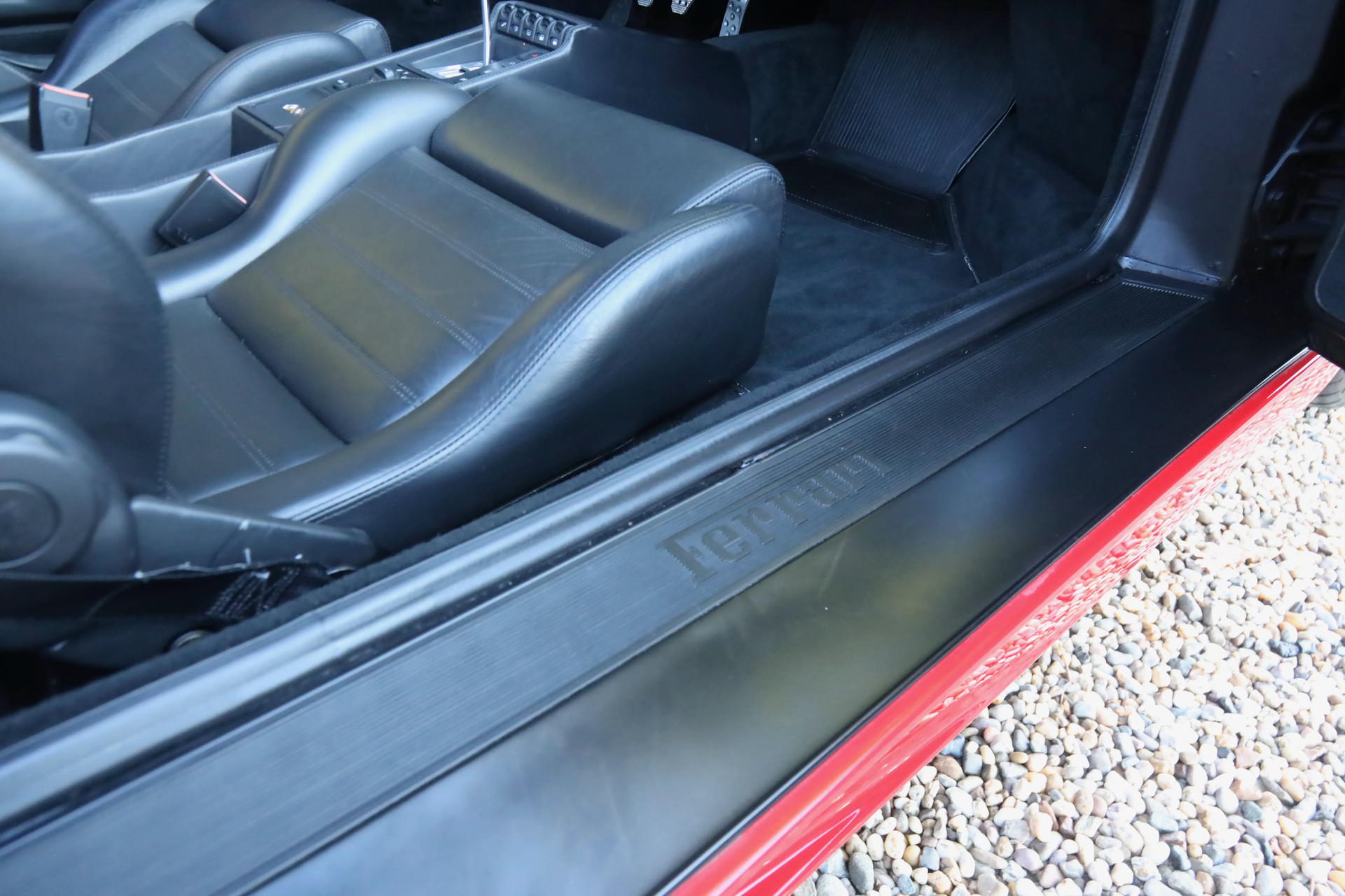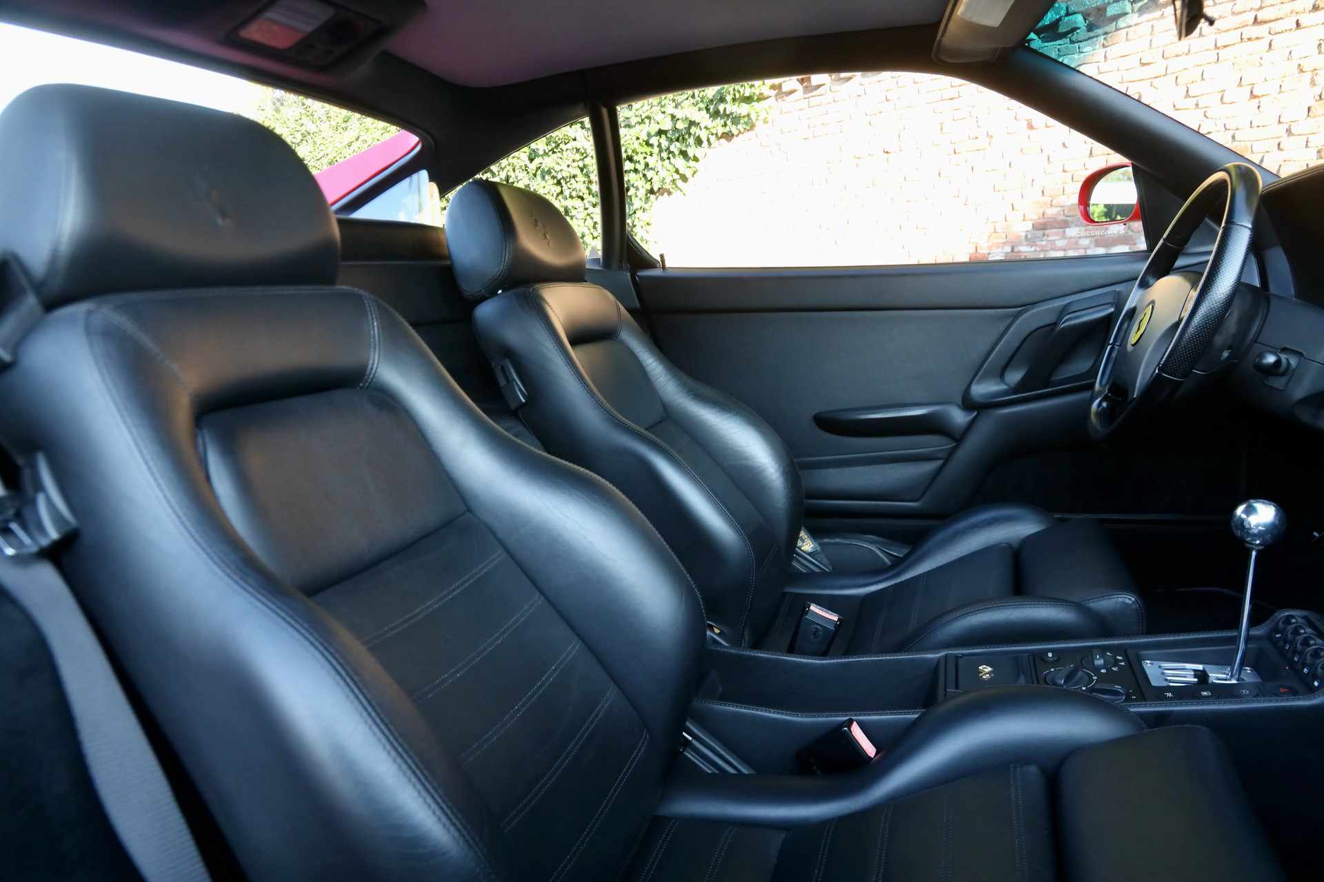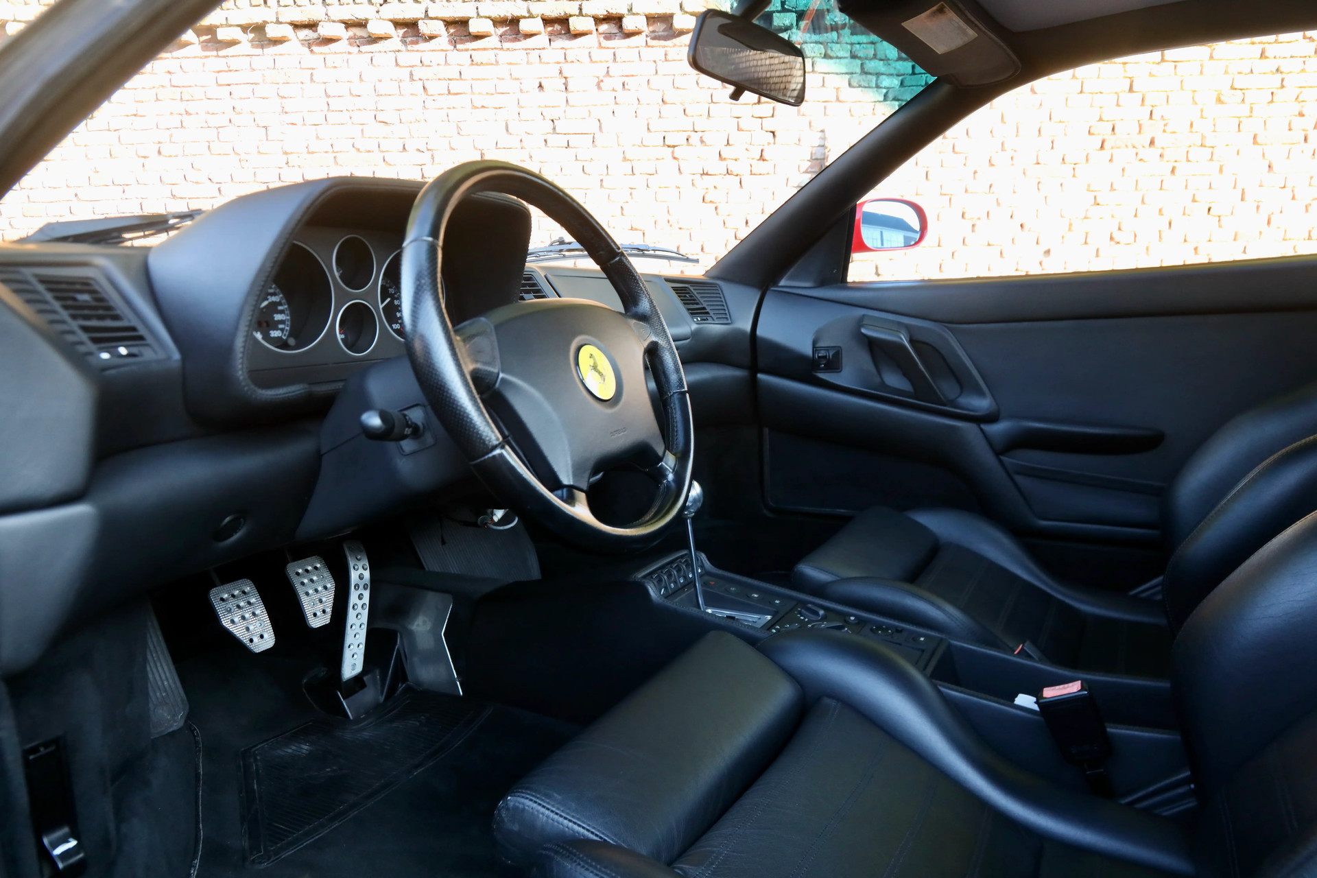 Cet exemplaire a été commandé d’usine avec la très convoitée boîte manuelle à six rapports. Le seul véritable choix pour qui souhaite ressentir l’essence même de Ferrari. Chaque changement de vitesse s’effectue avec une précision mécanique et une fluidité caractéristiques de cette époque. L’embrayage se distingue par sa progressivité : souple, suffisamment léger pour un usage régulier, mais offrant la juste résistance qui rappelle au conducteur qu’il est au volant d’une authentique voiture de pilote. La direction est d’une acuité chirurgicale, directe et communicative – exactement ce que l’on attend d’une Ferrari développée à Fiorano, où elle tournait plus vite que la toute-puissante 512 TR de l’époque.