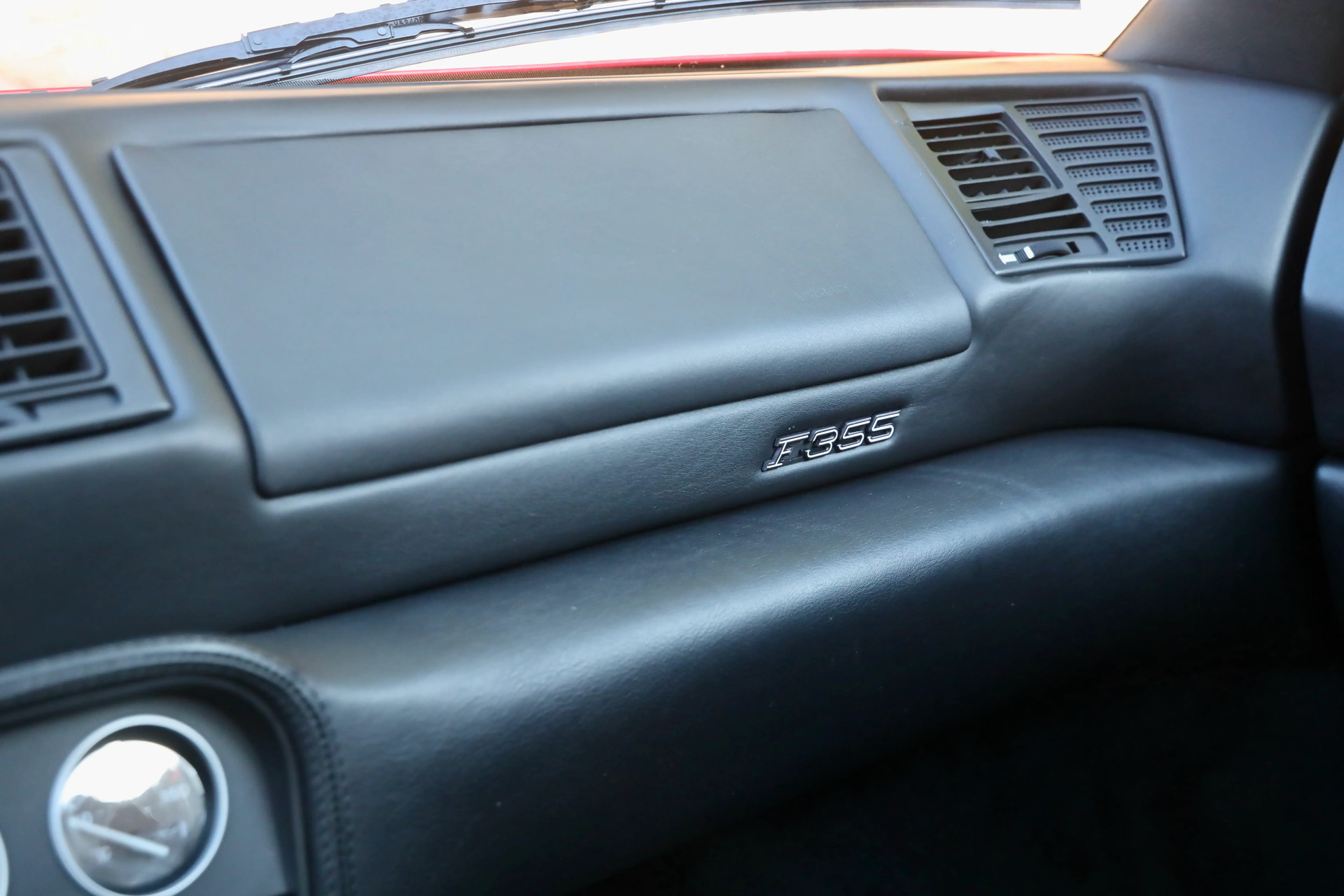Beneath the rear deck lies the beating heart of this machine: the naturally aspirated 3.5-liter V8 with five valves per cylinder, directly inspired by Ferrari’s Formula 1 technology of the era. It produces 380 horsepower at 8,250 rpm—figures that, nearly thirty years on, are still impressive. The engine is a musical masterpiece, from its growl at low revs to a symphonic crescendo above 7,000 rpm. It is that unmatched blend of technical precision and emotional drama that secures the F355’s place as a true pinnacle in Ferrari history.