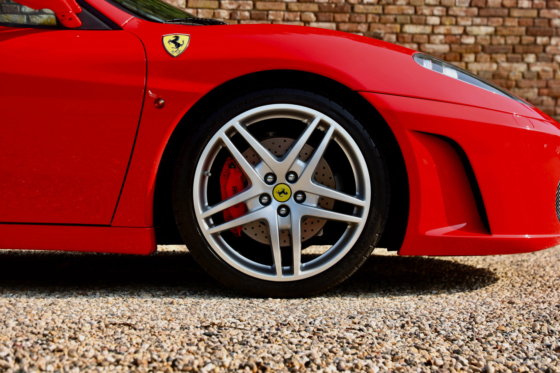 Mit lediglich 36.000 Kilometern präsentiert sich dieser F430 in einem Zustand, den man ohne Übertreibung als fast neu bezeichnen kann. Der Lack glänzt tief, die Nähte der Polsterung sind straff und sämtliche Materialien wirken nahezu unberührt. Gummiteile, Verglasung und Felgen sind makellos. Wer einsteigt, spürt sofort, dass der Innenraum frisch und kaum genutzt wirkt.