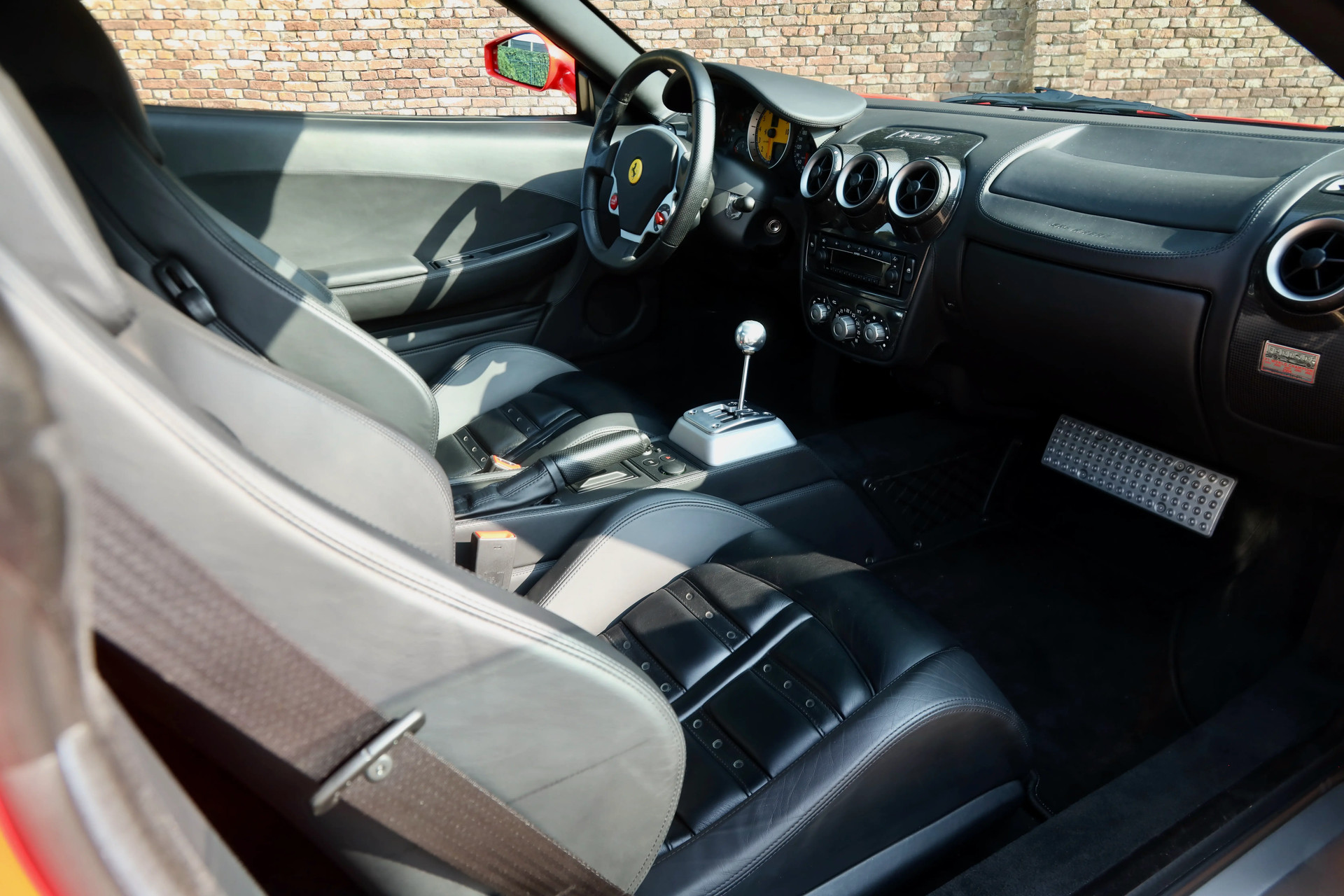 With just 36,000 kilometers, this F430 is in a condition that can confidently be described as virtually new. The paintwork gleams, the upholstery stitching is tight, and every material feels barely touched. Rubber trim, glass, and wheels are flawless. Step inside and you are immediately met with an interior that feels fresh and barely used.