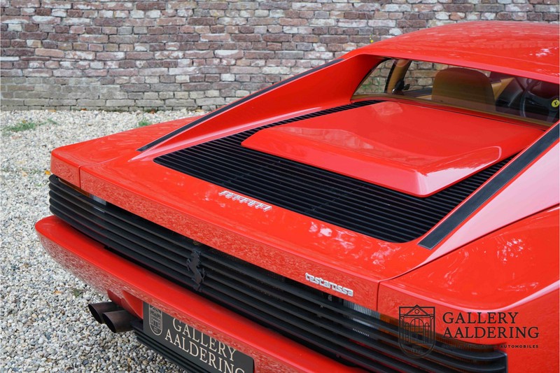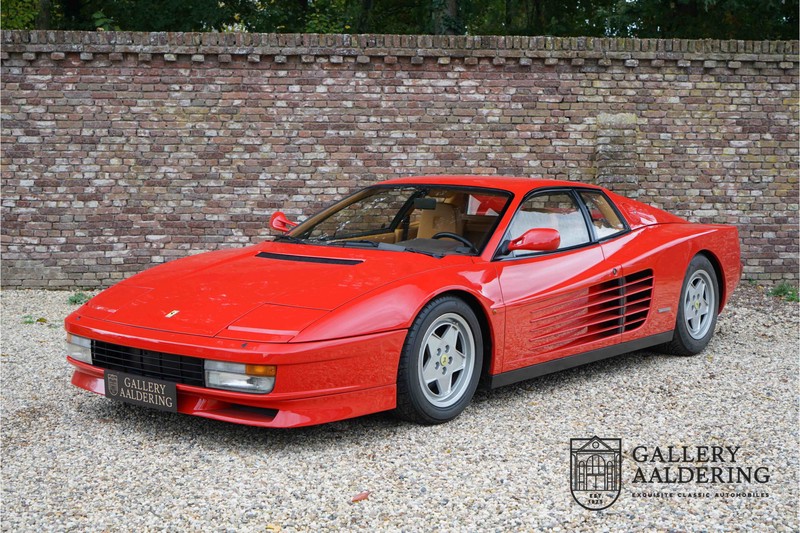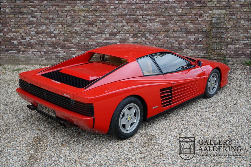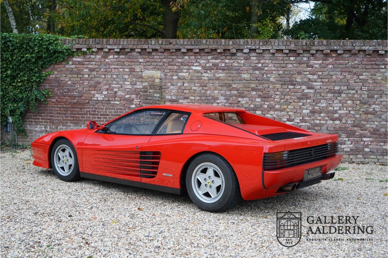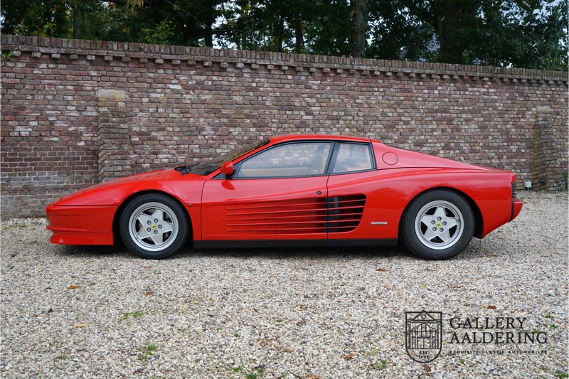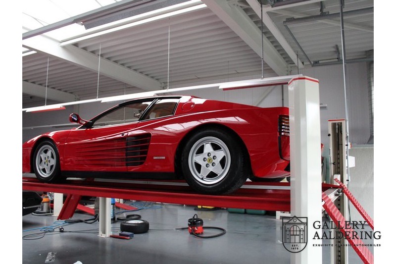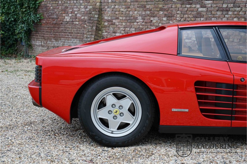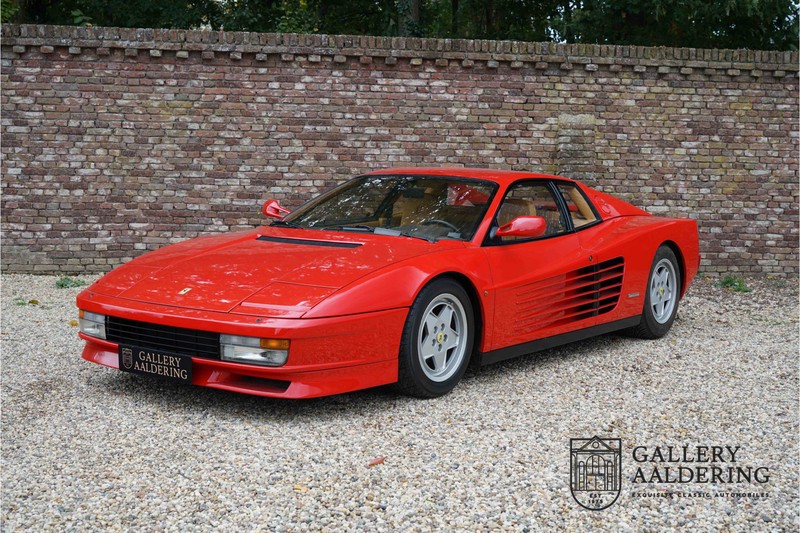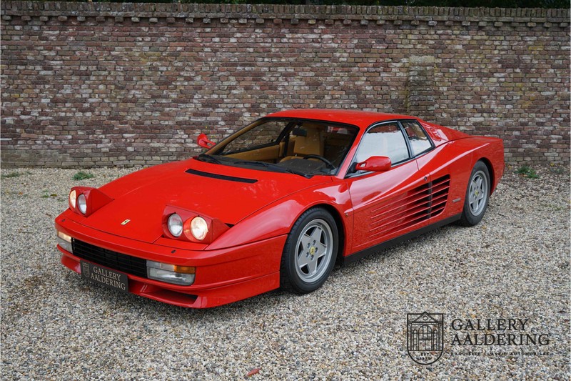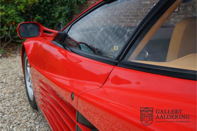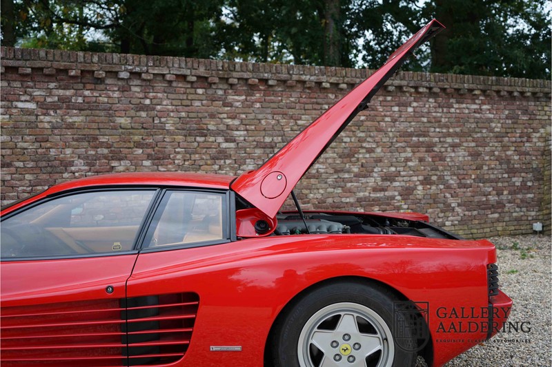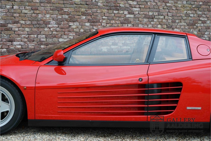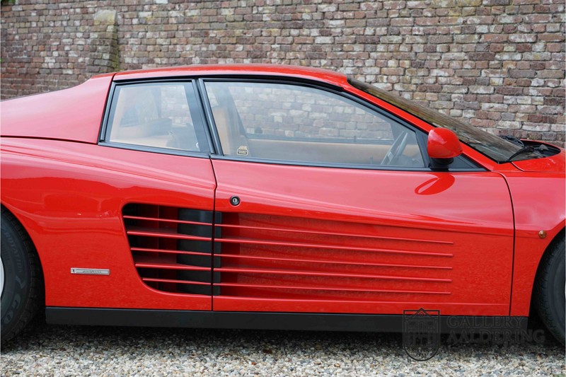 Ferrari Testarossa in beautiful condition with only 58000 km original! This European Testarossa comes with all the servicebooks and invoices! The bodywork is in perfect original condition, with 95% of the first paint. Stunning beige/cognac interior colour. Technically very well maintained and therefore also perfectly working and driving. TOP Testarossa!