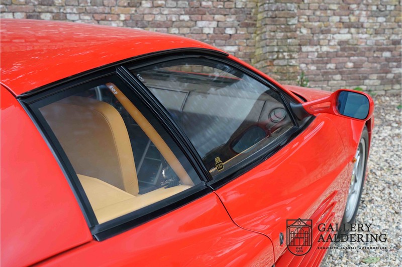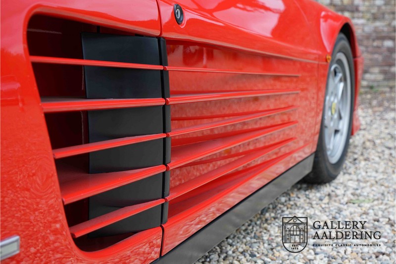 Ferrari Testarossa in een geweldig mooie staat verkerend met slechts 58.000 km origineel en aantoonbaar! Het betreft hier Europese versie met alle serviceboekjes en rekeningen! Carrosserie verkeert in een perfecte conditie. Lakwerk is mooi en grotendeels origineel. Voorzien van een bijzonder fraai beige/cognac kleur interieur. Technisch zeer goed onderhouden en daarom ook perfect werkend en rijdend. TOP Testarossa!