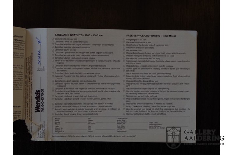 Der Ferrari befindet sich in einem extrem schönen Zustand und hat eine originale und belegbare Laufleistung von nur 58.000 Km! Das original Europäisches Fahrzeug hat eine vollständige Bordmappe mit allen Rechnungen, also komplett dokumentiert. Die Karosserie ist TOP und hat bis zu 95% seinen ersten Lack. Das Auto hat ein sehr schönes beige/cognacfarbiges Interieur aus Leder. Die Technik wurde sehr gut gewartet und der Ferrari fährt und funktioniert ausgezeichnet. Ein TOP Testarossa! Bei uns können Sie auch leasen oder finanzieren! Unser Leasingpartner bietet maßgeschneiderte Lösungen für private und gewerbliche Kunden. Mehr als 350 Fahrzeuge im Bestand. Auf Wunsch liefern wir Ihren Fahrzeug mit TÜV und H-Kennzeichen nur wen älter als 30 Jahre. Keine zusätzlichen Steuern. The Gallery ist nur 20 km von der deutschen Grenze.