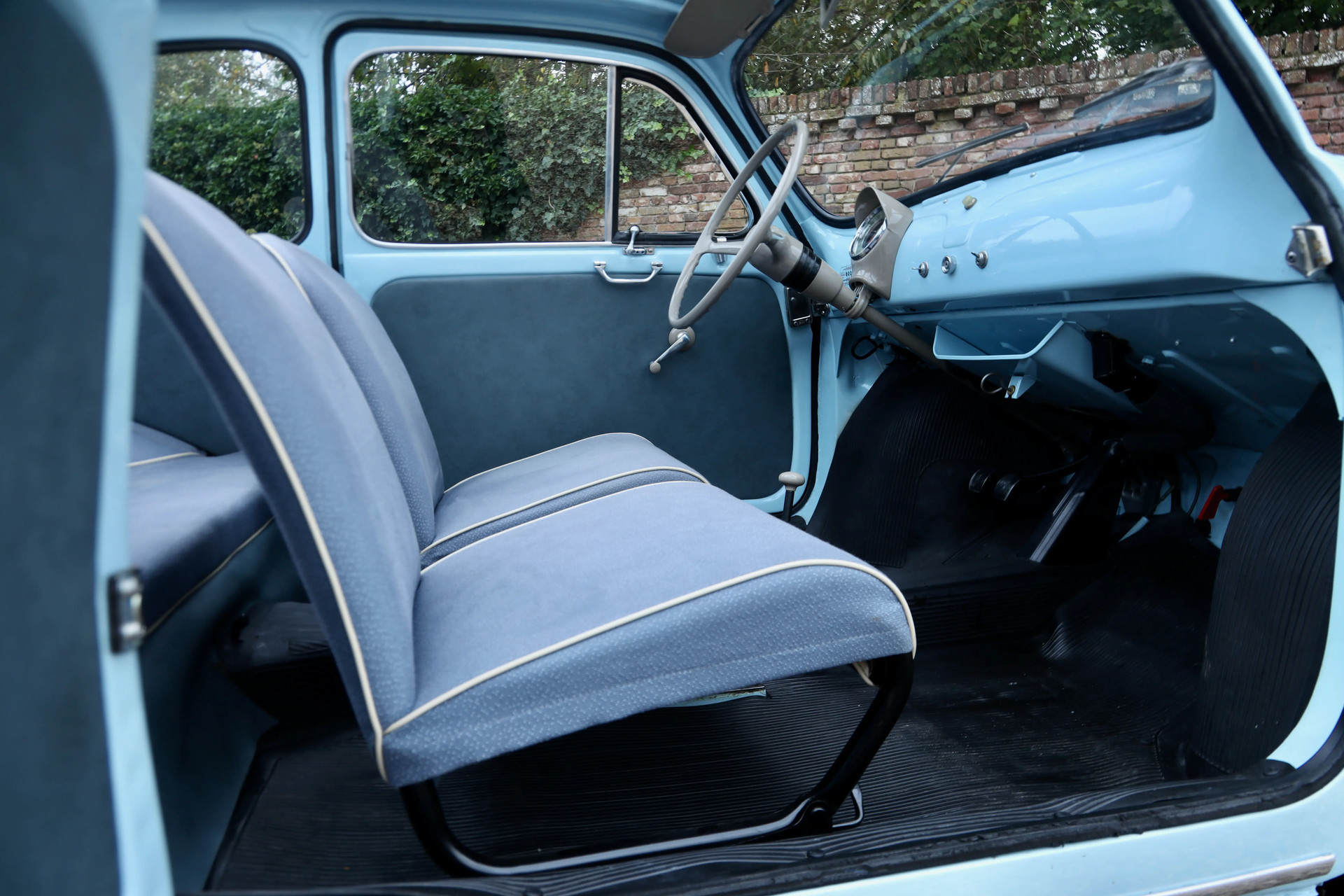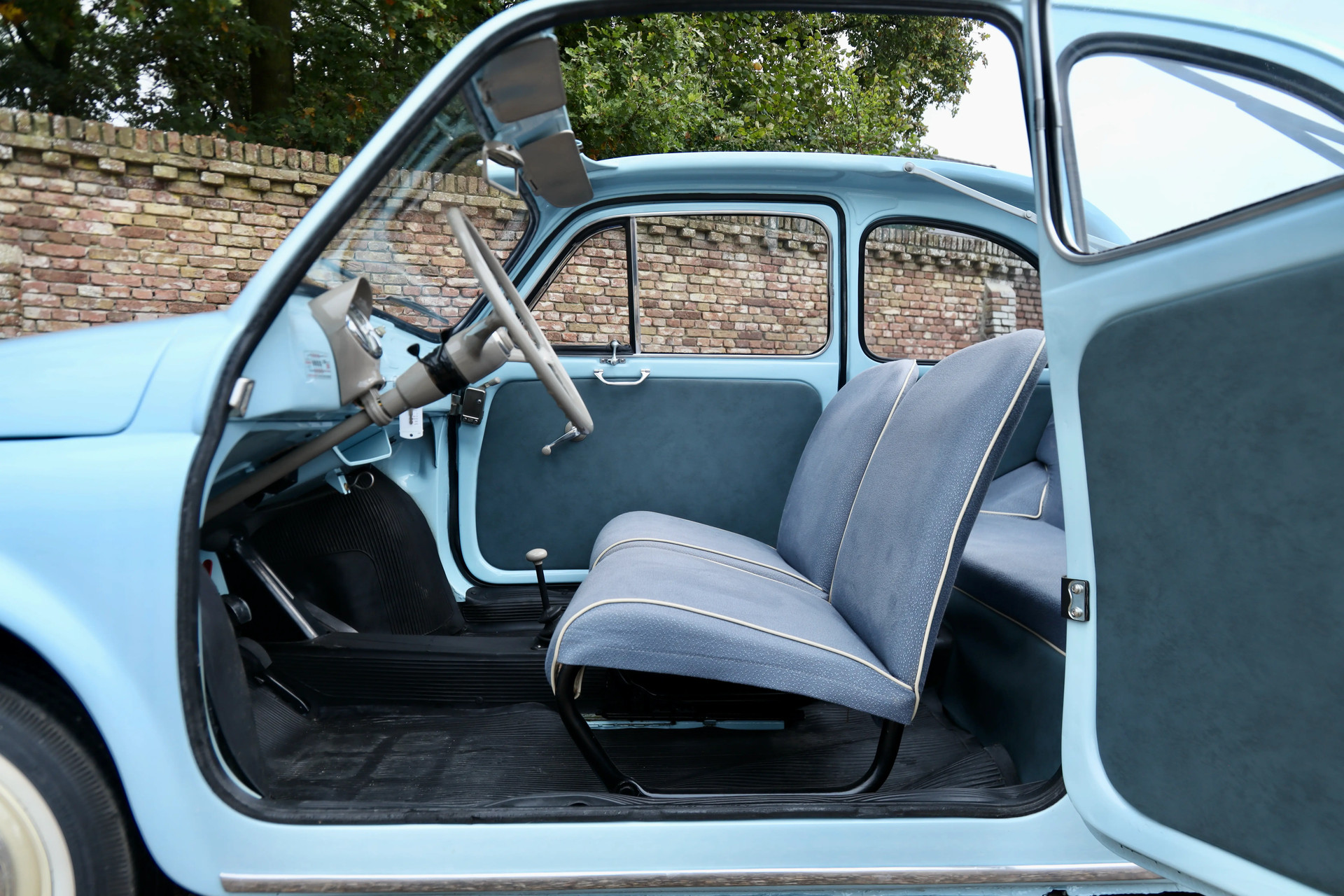 Charming, isn’t it? This 1958 Fiat 500N Trasformabile is a small marvel of Italian engineering, culture, and optimism, all wrapped into less than three meters of pure emotion. Finished in a delightful light blue with whitewall tires, this example has been fully restored to original specifications, down to the very last detail. Everything is just right: the deep luster of the paintwork, the elegant upholstery, the correct identification plates, and the meticulously finished engine bay.