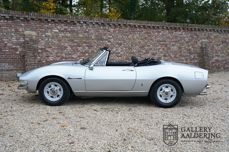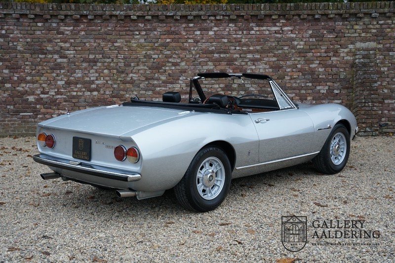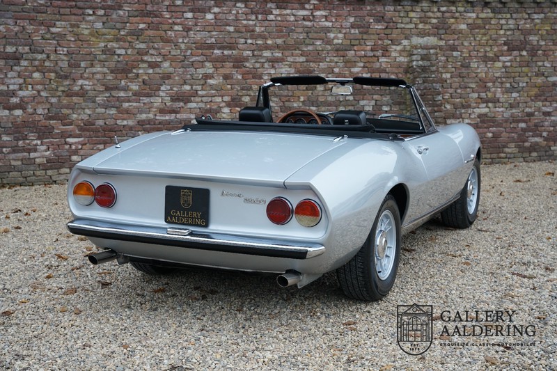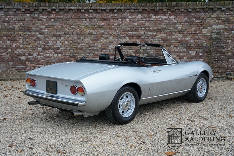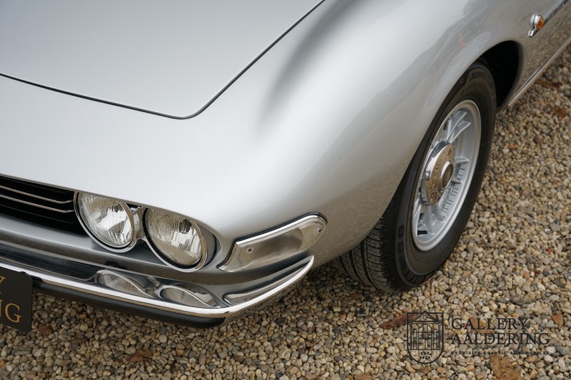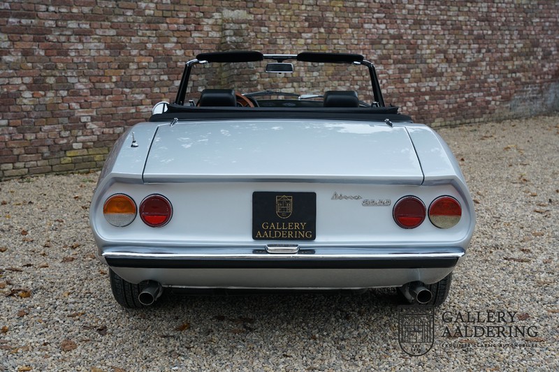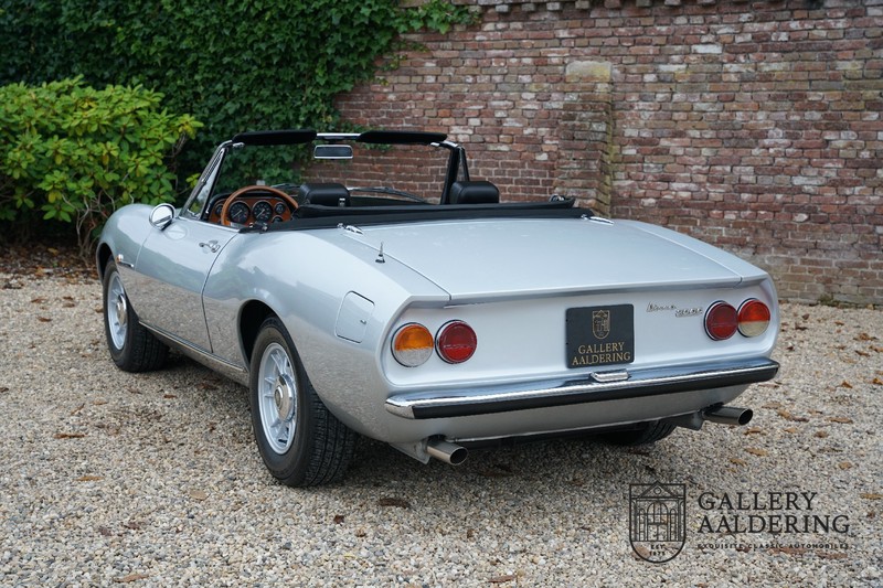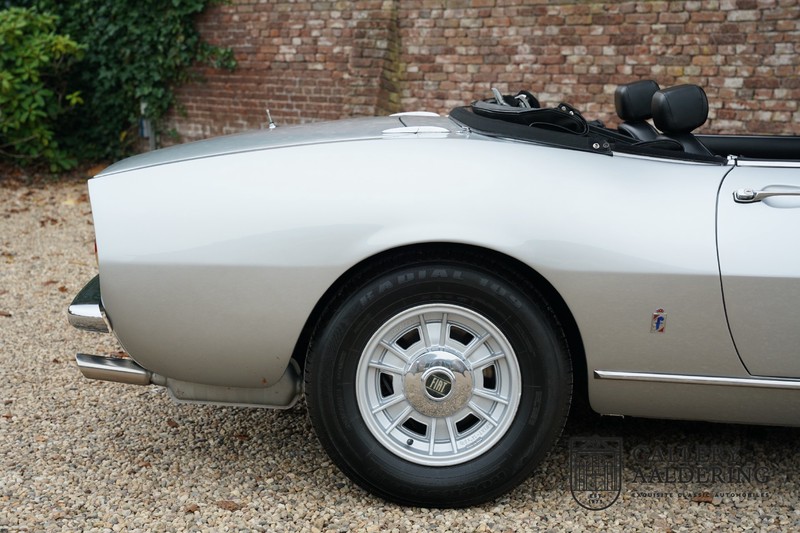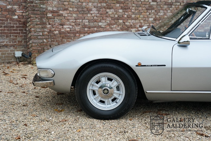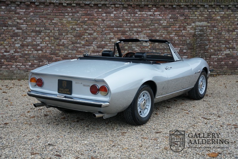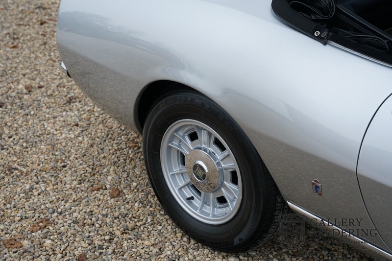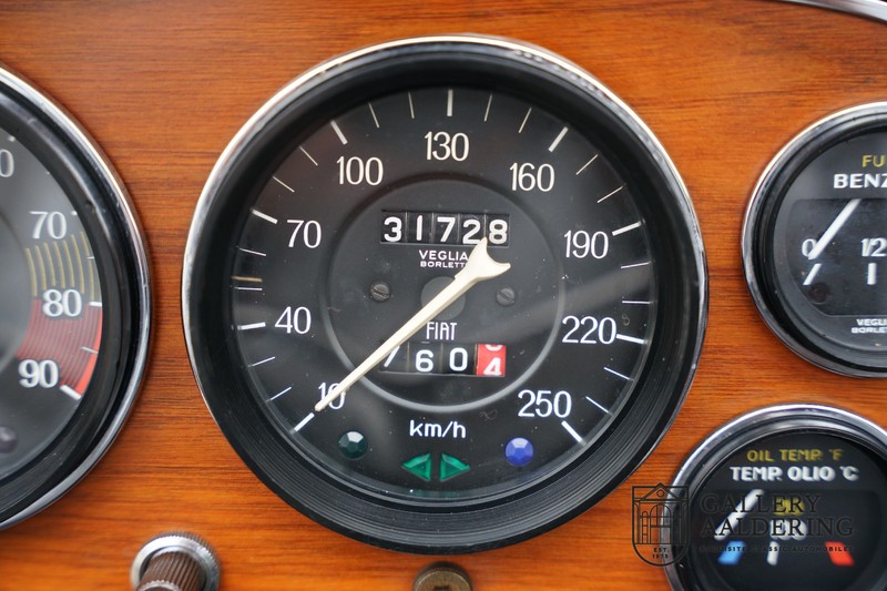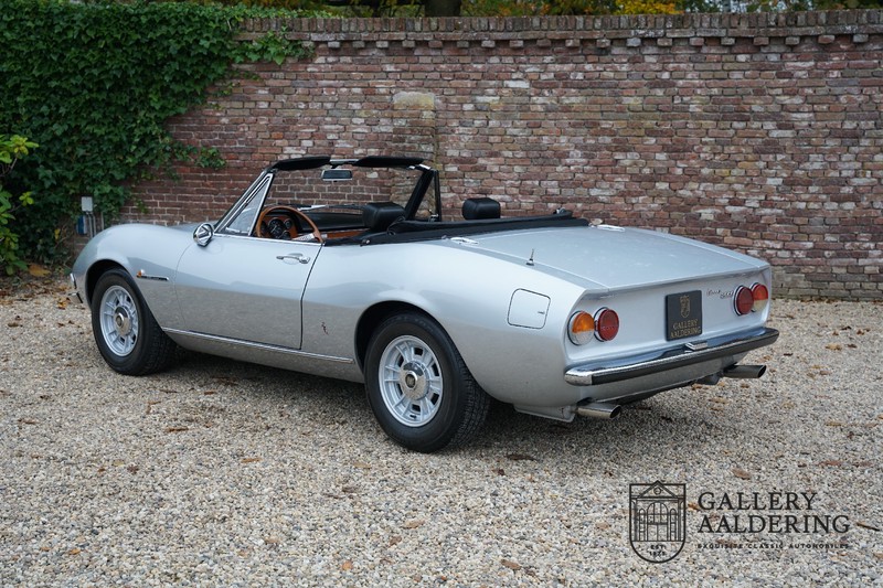 This is a car from 1971. With only 420 units built, the 2400 is much rarer than the much more common 2000 with its production run of 1,100 units. The odometer of this example shows only 31,730 kilometers, if we look at the condition of the car, it is very possible that this is the original mileage. The bodywork looks beautiful with nice thin sheet metal and correct fits. The metallic silver paint is in very good condition and the car looks great. The Dino Spider is on correct Crommodora wheels surrounded by good tires in the right sizes. Furthermore, the original exhausts stand out at the rear.