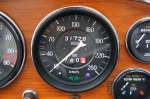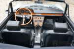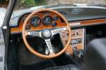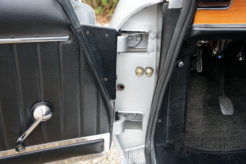 The interior is also in top condition. The wood on the dashboard looks like new and the three-spoke wooden steering wheel also looks beautifully cared for. The interior is covered with black carpets and black vinyl on the seats. Both the carpets and the upholstery on the seats look beautiful and are in top condition. The top of the dashboard also looks beautiful and is of course completely free of cracks.