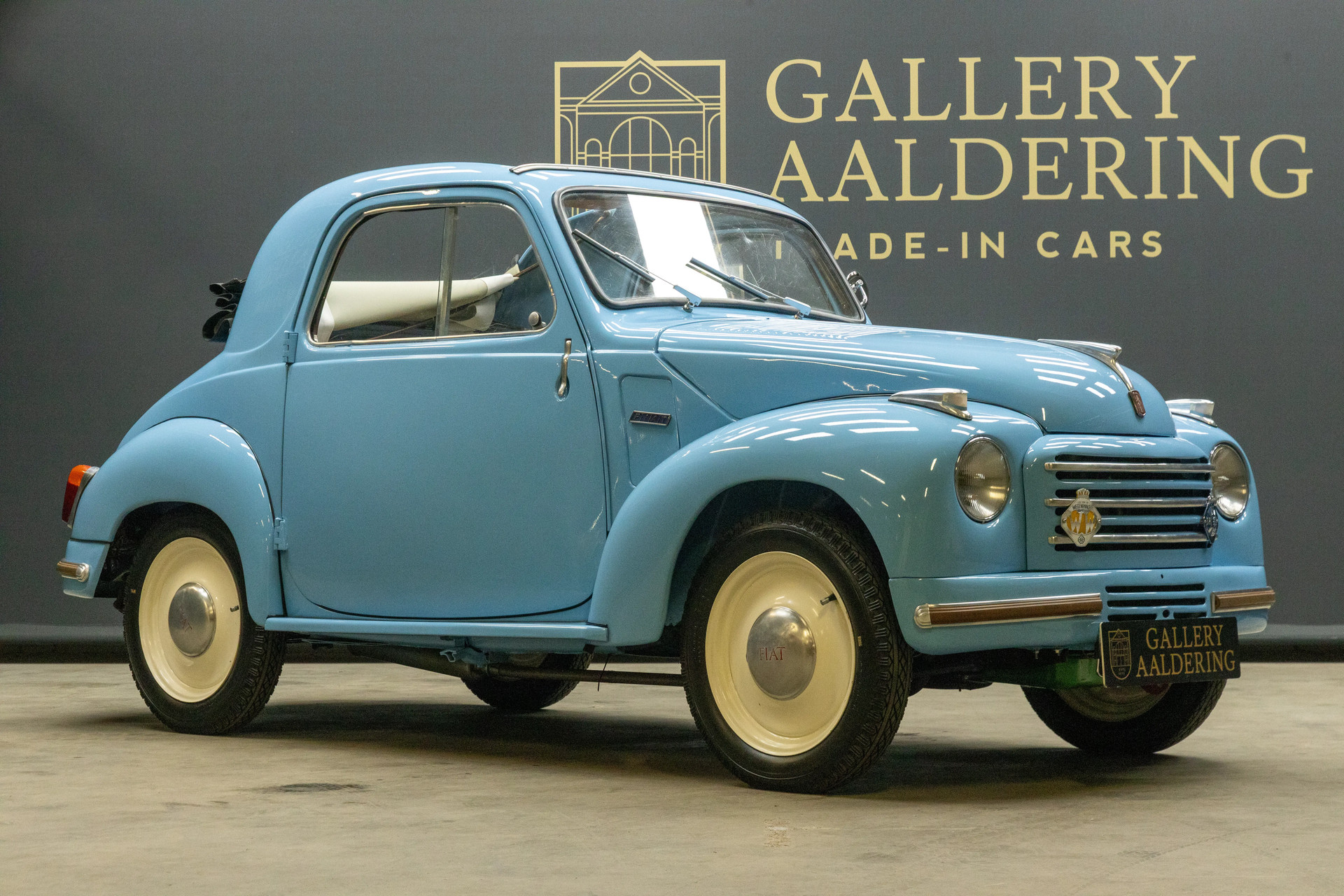 Dit exemplaar komt uit het eerste productiejaar van de 500C en is uitgevoerd in het verfijnde acqua blu, gecombineerd met een bruine stoffen vouwdak. Een kleurencombinatie die perfect past bij het karakter van de auto: licht, vriendelijk en tijdloos. De carrosserie werd in het verleden gerestaureerd en opnieuw gespoten, met een mooi en verzorgd resultaat. Geen over-gerestaureerd museumstuk, maar een eerlijke klassieker die uitnodigt om gebruikt en verder verfijnd te worden.
