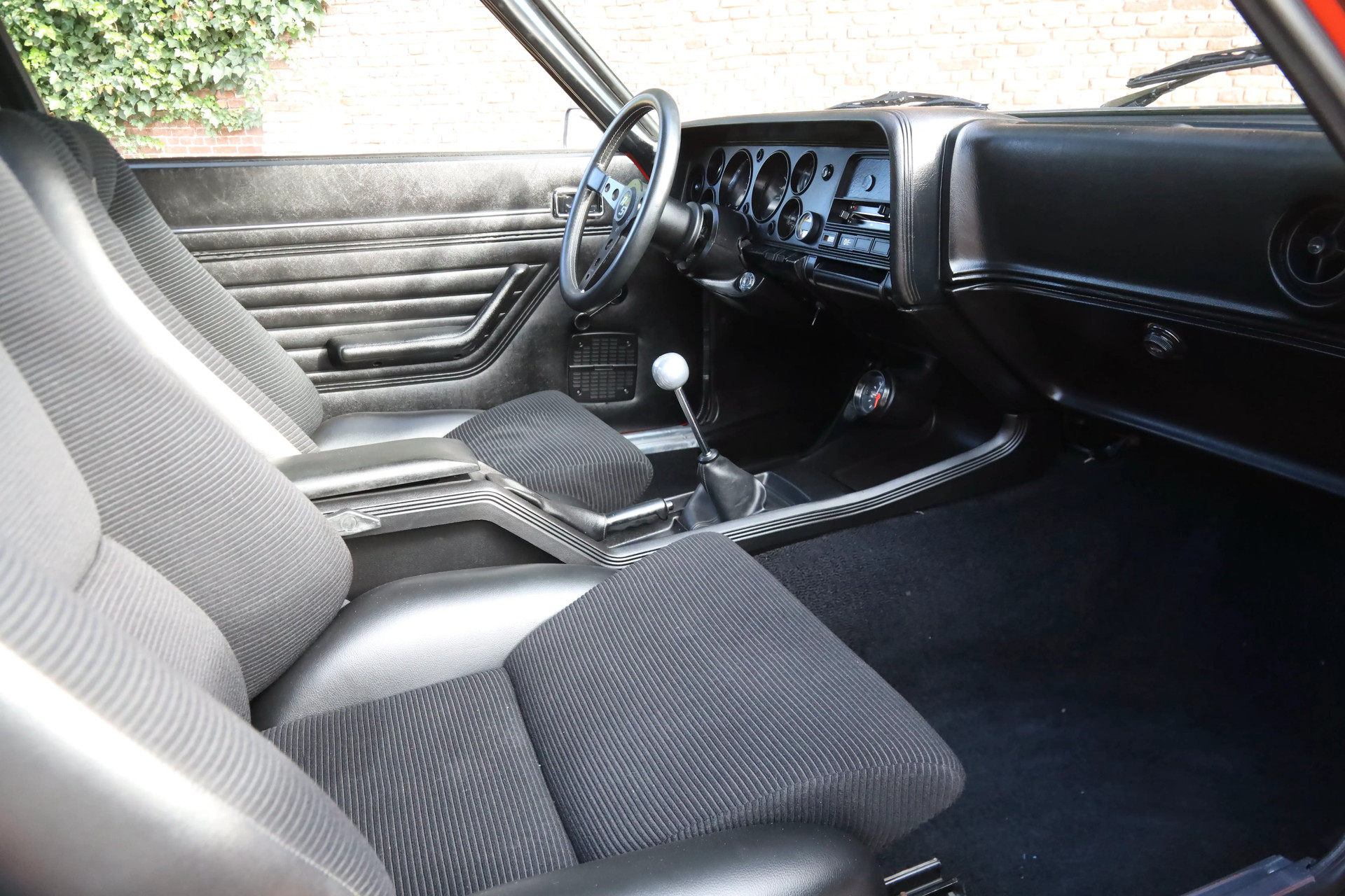 Wat deze RS 2600 extra aantrekkelijk maakt, is dat hij nog altijd in dezelfde configuratie verkeert als waarin hij destijds de fabriek verliet. De carrosserie in Sebring Red sluit naadloos aan bij het sportieve karakter van de auto, terwijl het interieur wordt gesierd door de geliefde Scheel sportstoelen in zwart RS-stof. Dit zijn de details die de RS 2600 destijds al een unieke status gaven, en vandaag de dag maken ze dit exemplaar des te begeerlijker.