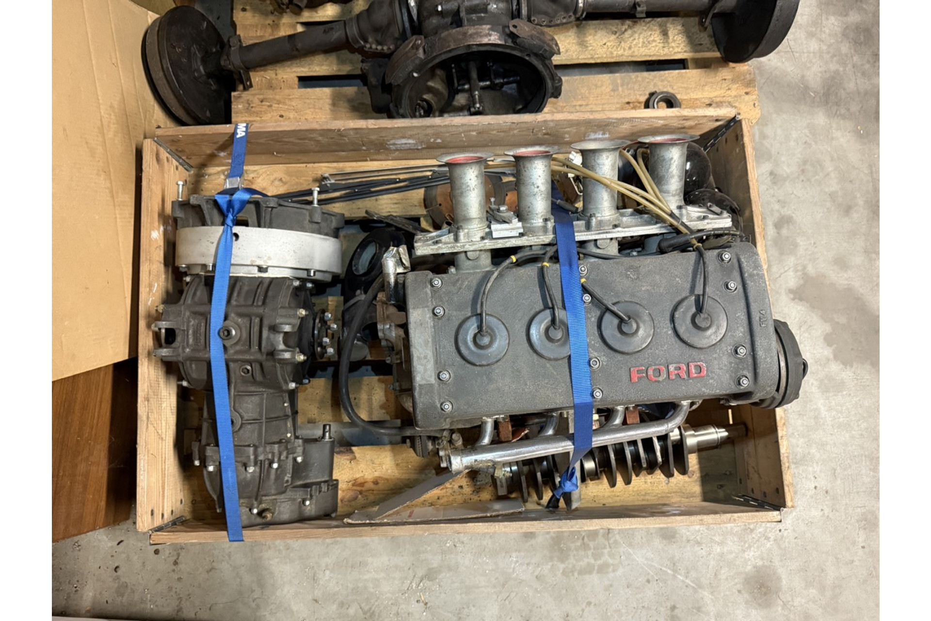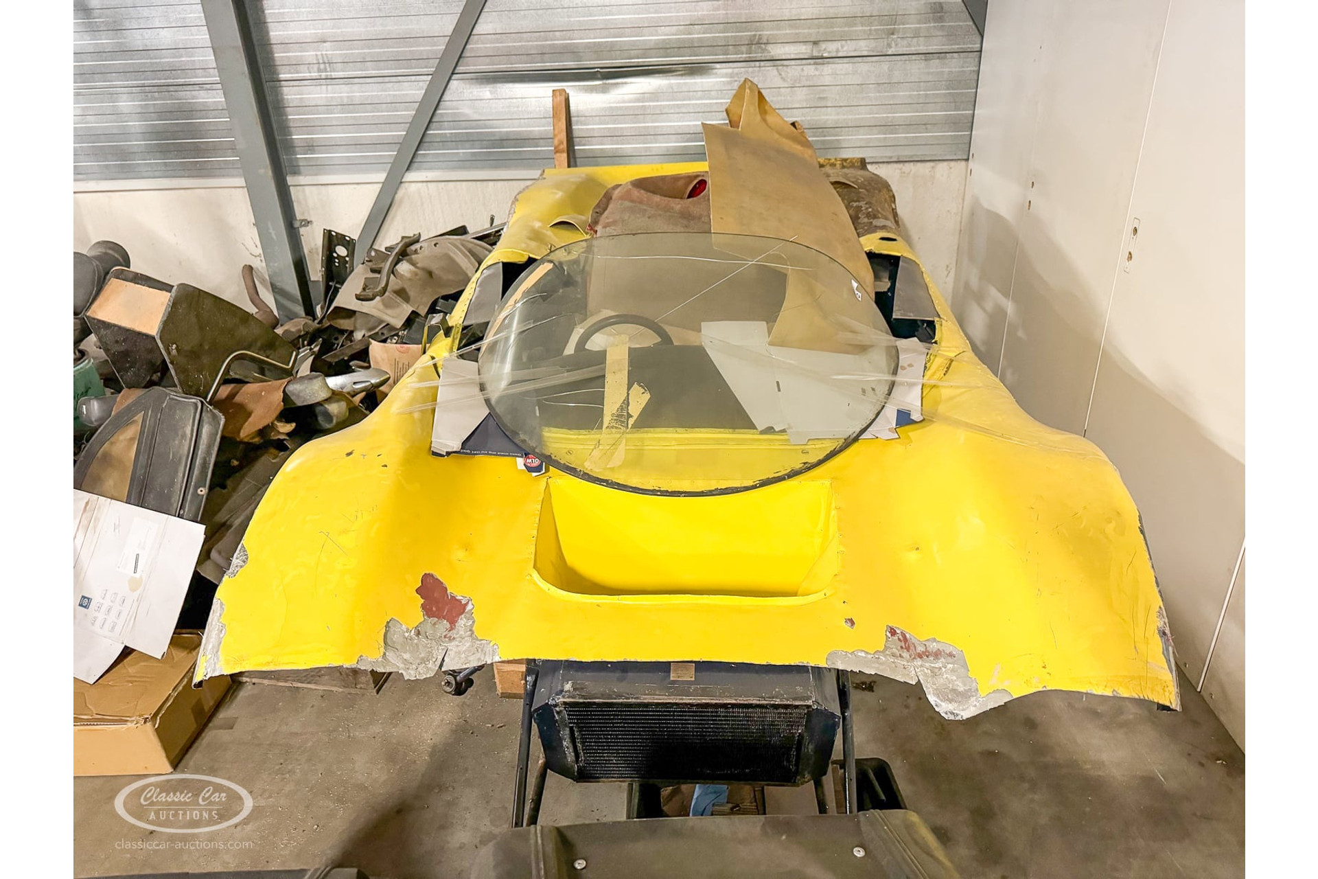 This unique racing project includes the chassis, the original aluminum body and the powerful Ford FVA engine, mated to a five-speed Hewland gearbox. With traces of its rich racing history and associated parts, such as the original racing wheels and two additional front ends, this car offers great potential for restoration. For the true enthusiast, this project is a rare opportunity to bring a piece of motorsports history to life.