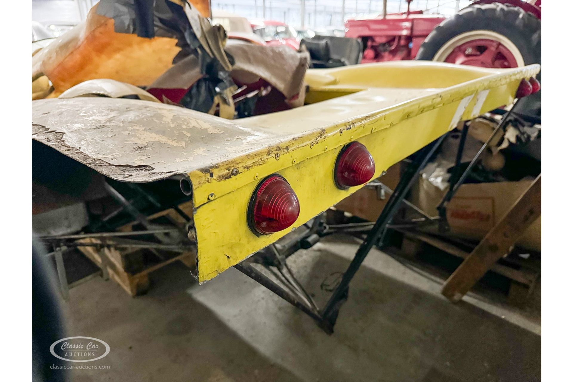 Dieses einzigartige Rennprojekt umfasst das Fahrgestell, die originale Aluminiumkarosserie und den leistungsstarken Ford FVA-Motor, der mit einem Fünfgang-Hewland-Getriebe gekoppelt ist. Mit den Spuren seiner reichen Renngeschichte und den dazugehörigen Teilen, wie den Original-Rennrädern und zwei zusätzlichen Frontends, bietet dieses Auto ein großes Potenzial für die Restaurierung. Für den wahren Enthusiasten ist dieses Projekt eine seltene Gelegenheit, ein Stück Motorsportgeschichte zum Leben zu erwecken.