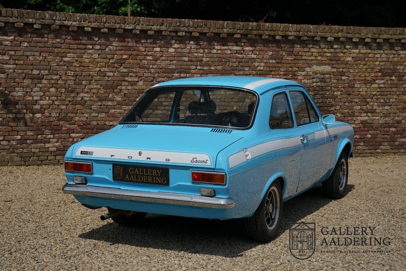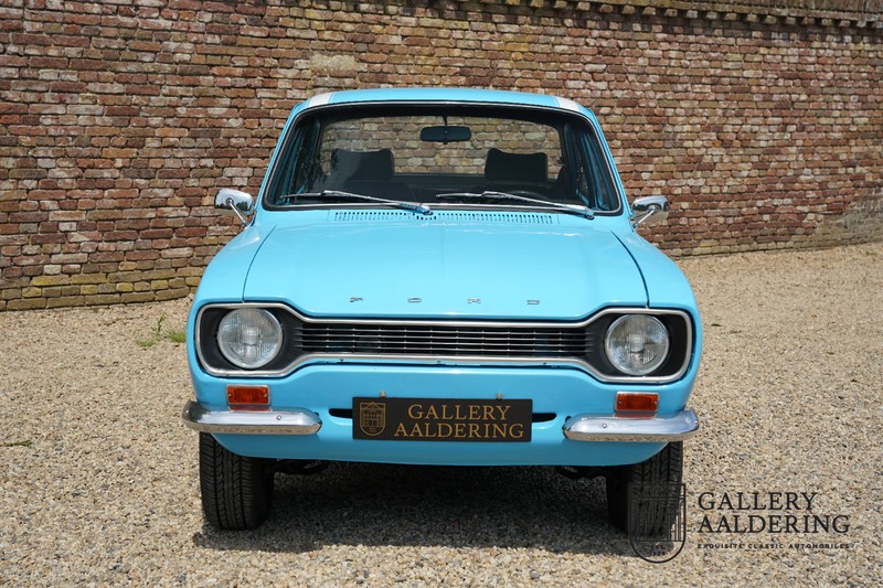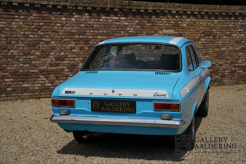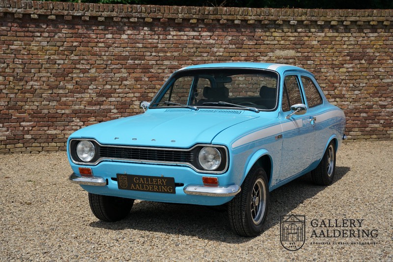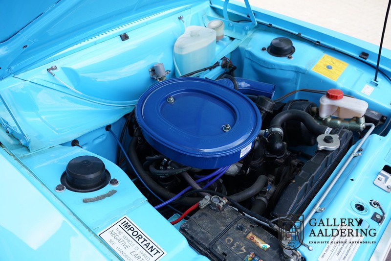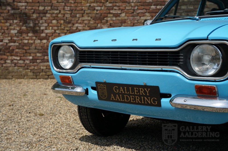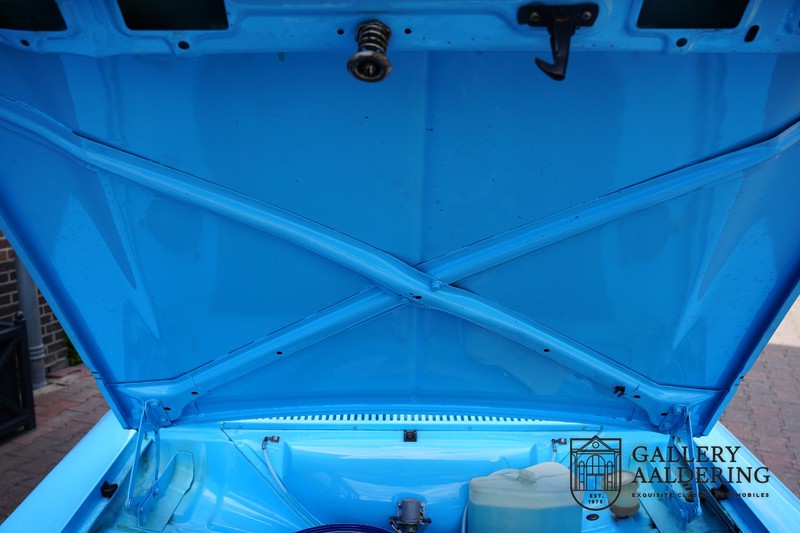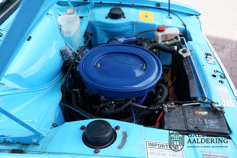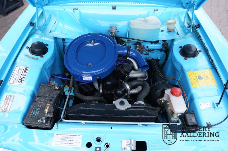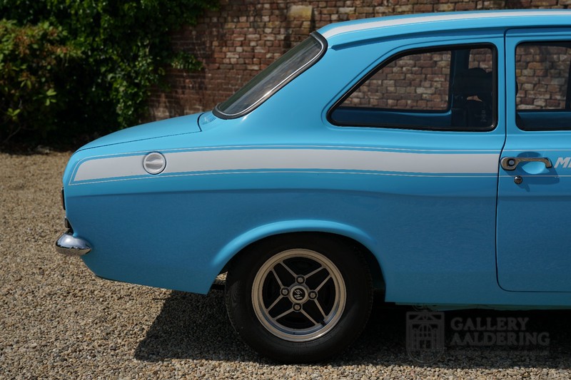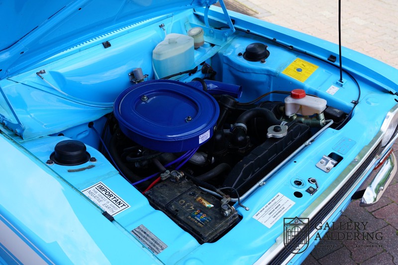 The Mexico was a special edition of the Ford Escort Mk1, celebrating Ford’s successes in the London to Mexico rally. In 1970 Hannu Mikkola and Gunnar Palm were the victorious champions of this extremely heavy rally. Ford’s marketing department saw a golden opportunity to turn this rallying triumph into folding money in the showroom. A special edition Ford Escort was commissioned to celebrate this success. Ford’s racing department was involved in the development of the Mexico and looking at the number of options available at the time it is no small wonder the Mexico became such an enormous sales winner. The Mexico was fitted with a 4-cylinder 1600cc with a single overhead camshaft good for 86 PS. In todays money that might not seem impressive, however with it short ratio manual gearbox and a curb weight of just 850 kg, the Mexico was able to achieve a very representable performance. The Mexico is still able to hit very acceptable heights, just imagine how that would have felt in the 70’s! Now let us just reflect on the number of available options then. Today it would be completely unthinkable a family car manufacturer would allow the buyer the option of dressing up the car in order to immediately be able to take to the rally tracks, and yet that is precisely what Ford did to the Mexico. It will come as no surprise that many bought the Mexico as a rally car. You only had to make a few finishing touches to enter into the fray. More than 10,000 Mexico’s were sold. You might think that does not make it into a rare classic beast. Nothing is further from the truth. Rally versions of the Mexico often did not survive the first year or at best a few years. Many Ford Mexico’s died in harness. They were literally driven to their deaths. If we were to compliment this specific example, then the biggest compliment would be that this level of restoration does not belong to this type of car. This ford Escort has been so beautifully restored in such a fashion only seen with cars costing a multitude of this Ford. This car was literally dismantled, right down to the very last screw before being most sympathetically reassembled. Clearly the work of people with absolute specialist knowledge which matches that of any top restorer. The bodywork is as expected absolutely pristine. It has nice and thin, correctly aligned panelwork. The doors close with a characteristic click of a showroom fresh car. The car had a high quality respray in “Olympic Blue” finish. The paintwork brilliantly jumps out at you the moment you set eyes on her. The Rs rims have been recently resprayed and look perfect Underneath the condition is at least as good as on top. The original stickers were reattached after the respray. The interior has been fully reupholstered. The bucket seats are comfortable as well as supportive. The spartan dashboard marvels in simple functionality. There is not a switch or control without an obvious use to be found. If only modern cars were so easy. The neat new carpets also have been perfectly fitted. The original steering wheel looks great. Another redeeming feature is you immediately get a great driving position, inviting you to sit right and drive to your hearts content. Driving to ones hearts content is this car’s claim to fame. 86 Ps does not sound much in todays money but considering the fact the Ford Escort Mexico on weights 850 kg it starts to become a more attractive proposition. The engineers did a marvellous job with the car’s road handling, which in our case is emphasized by the wholly new suspension fitted. Every bush, shock breaker and spring is new. The Escort handles beautifully tight, inviting to get the maximum out of the package. It has a 1.6 litre OHV couples to a manual 4-speed gearbox. The accurate transmission helps the engine run through the revs brilliantly. Both were completely rebuilt and just as the exterior are in peak shape. A Ford Escort Mexico is a rare sight these days and still enjoys enormous status under the devotees of fast Fords. No surprises there as in contrast to modern cars this one runs on pure charm as well as petrol. A disarmingly effective little street monster leaving its new owner with a brad grin with every mile. Let’s face it: if you are looking for a Ford Escort Mexico would you not want the best on the market?