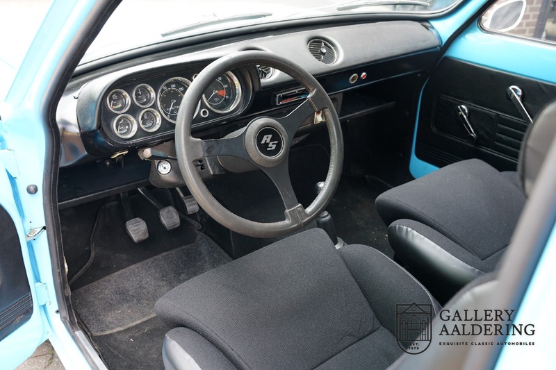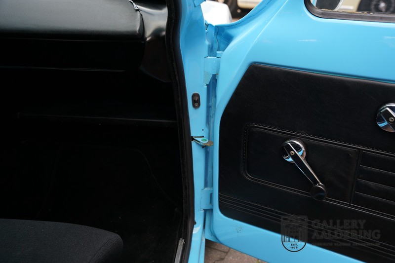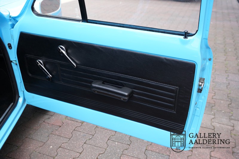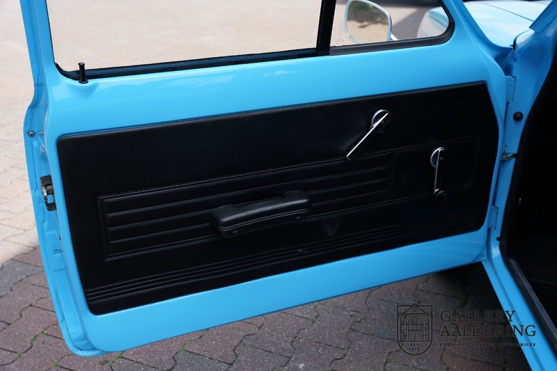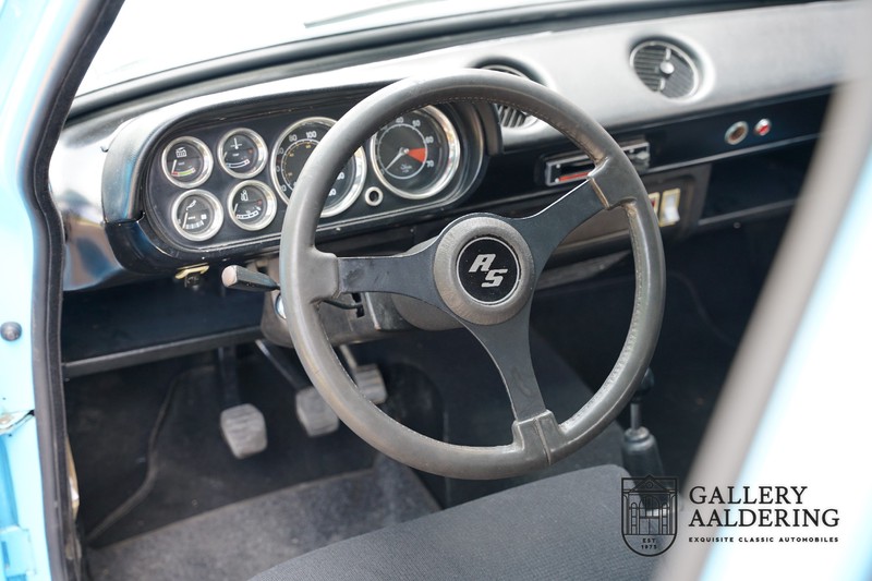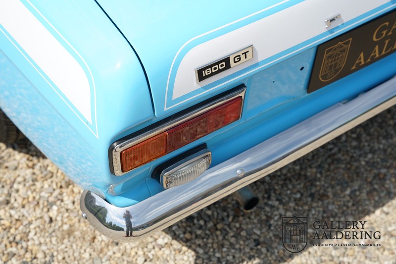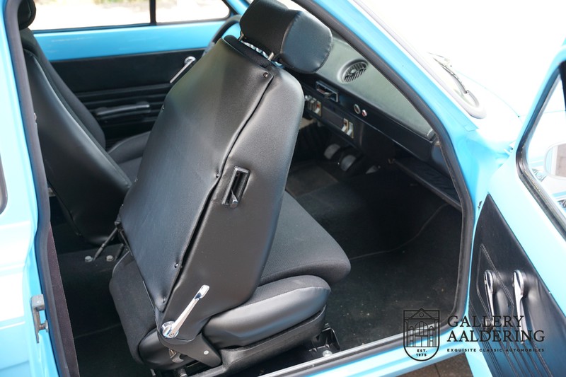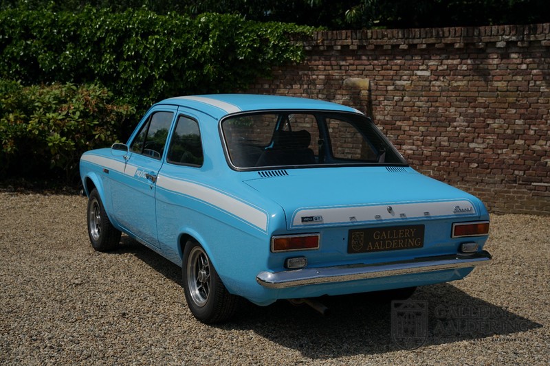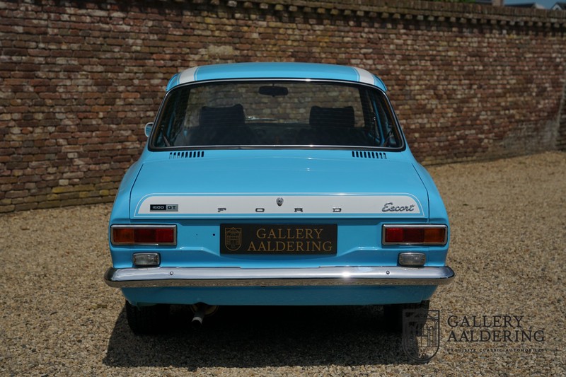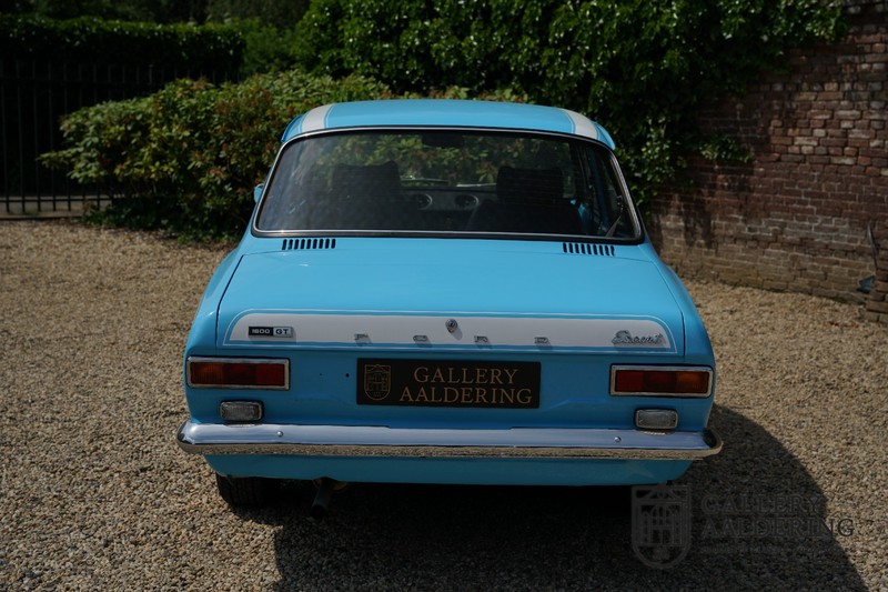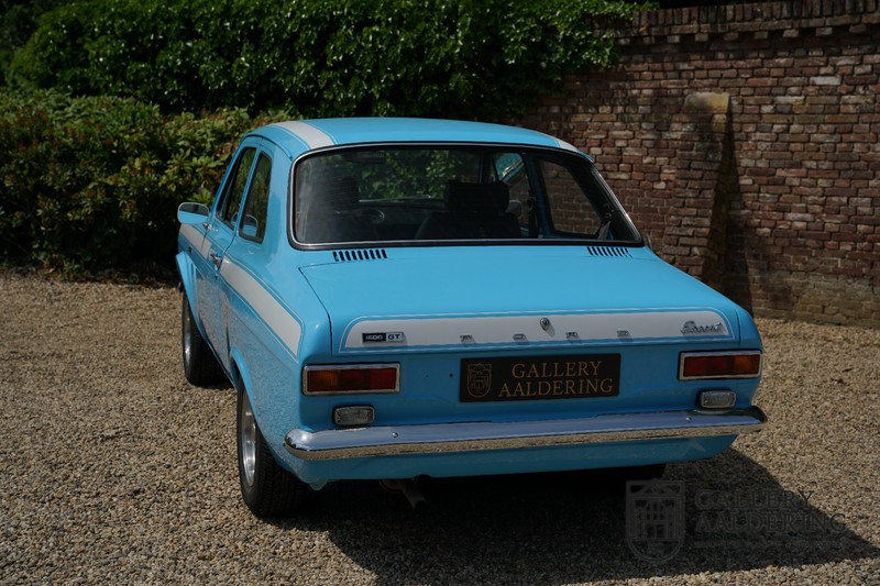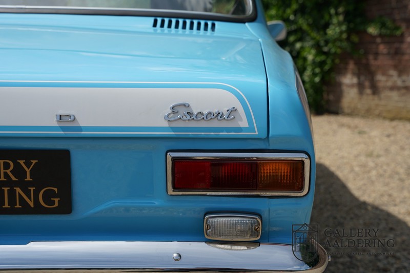 The Mexico was a special edition of the Ford Escort Mk1, celebrating Ford’s successes in the London to Mexico rally. In 1970 Hannu Mikkola and Gunnar Palm were the victorious champions of this extremely heavy rally. Ford’s marketing department saw a golden opportunity to turn this rallying triumph into folding money in the showroom. A special edition Ford Escort was commissioned to celebrate this success. Ford’s racing department was involved in the development of the Mexico and looking at the number of options available at the time it is no small wonder the Mexico became such an enormous sales winner. The Mexico was fitted with a 4-cylinder 1600cc with a single overhead camshaft good for 86 PS. In todays money that might not seem impressive, however with it short ratio manual gearbox and a curb weight of just 850 kg, the Mexico was able to achieve a very representable performance. The Mexico is still able to hit very acceptable heights, just imagine how that would have felt in the 70’s! Now let us just reflect on the number of available options then. Today it would be completely unthinkable a family car manufacturer would allow the buyer the option of dressing up the car in order to immediately be able to take to the rally tracks, and yet that is precisely what Ford did to the Mexico. It will come as no surprise that many bought the Mexico as a rally car. You only had to make a few finishing touches to enter into the fray. More than 10,000 Mexico’s were sold. You might think that does not make it into a rare classic beast. Nothing is further from the truth. Rally versions of the Mexico often did not survive the first year or at best a few years. Many Ford Mexico’s died in harness. They were literally driven to their deaths. If we were to compliment this specific example, then the biggest compliment would be that this level of restoration does not belong to this type of car. This ford Escort has been so beautifully restored in such a fashion only seen with cars costing a multitude of this Ford. This car was literally dismantled, right down to the very last screw before being most sympathetically reassembled. Clearly the work of people with absolute specialist knowledge which matches that of any top restorer. The bodywork is as expected absolutely pristine. It has nice and thin, correctly aligned panelwork. The doors close with a characteristic click of a showroom fresh car. The car had a high quality respray in “Olympic Blue” finish. The paintwork brilliantly jumps out at you the moment you set eyes on her. The Rs rims have been recently resprayed and look perfect Underneath the condition is at least as good as on top. The original stickers were reattached after the respray. The interior has been fully reupholstered. The bucket seats are comfortable as well as supportive. The spartan dashboard marvels in simple functionality. There is not a switch or control without an obvious use to be found. If only modern cars were so easy. The neat new carpets also have been perfectly fitted. The original steering wheel looks great. Another redeeming feature is you immediately get a great driving position, inviting you to sit right and drive to your hearts content. Driving to ones hearts content is this car’s claim to fame. 86 Ps does not sound much in todays money but considering the fact the Ford Escort Mexico on weights 850 kg it starts to become a more attractive proposition. The engineers did a marvellous job with the car’s road handling, which in our case is emphasized by the wholly new suspension fitted. Every bush, shock breaker and spring is new. The Escort handles beautifully tight, inviting to get the maximum out of the package. It has a 1.6 litre OHV couples to a manual 4-speed gearbox. The accurate transmission helps the engine run through the revs brilliantly. Both were completely rebuilt and just as the exterior are in peak shape. A Ford Escort Mexico is a rare sight these days and still enjoys enormous status under the devotees of fast Fords. No surprises there as in contrast to modern cars this one runs on pure charm as well as petrol. A disarmingly effective little street monster leaving its new owner with a brad grin with every mile. Let’s face it: if you are looking for a Ford Escort Mexico would you not want the best on the market?