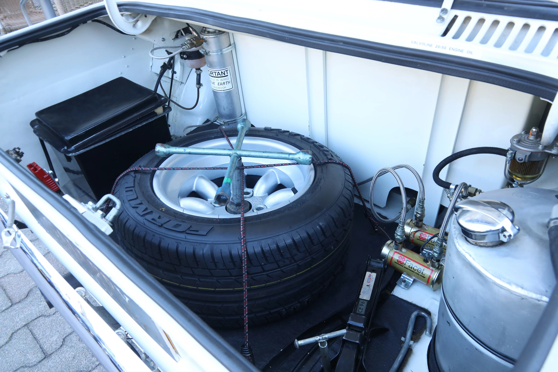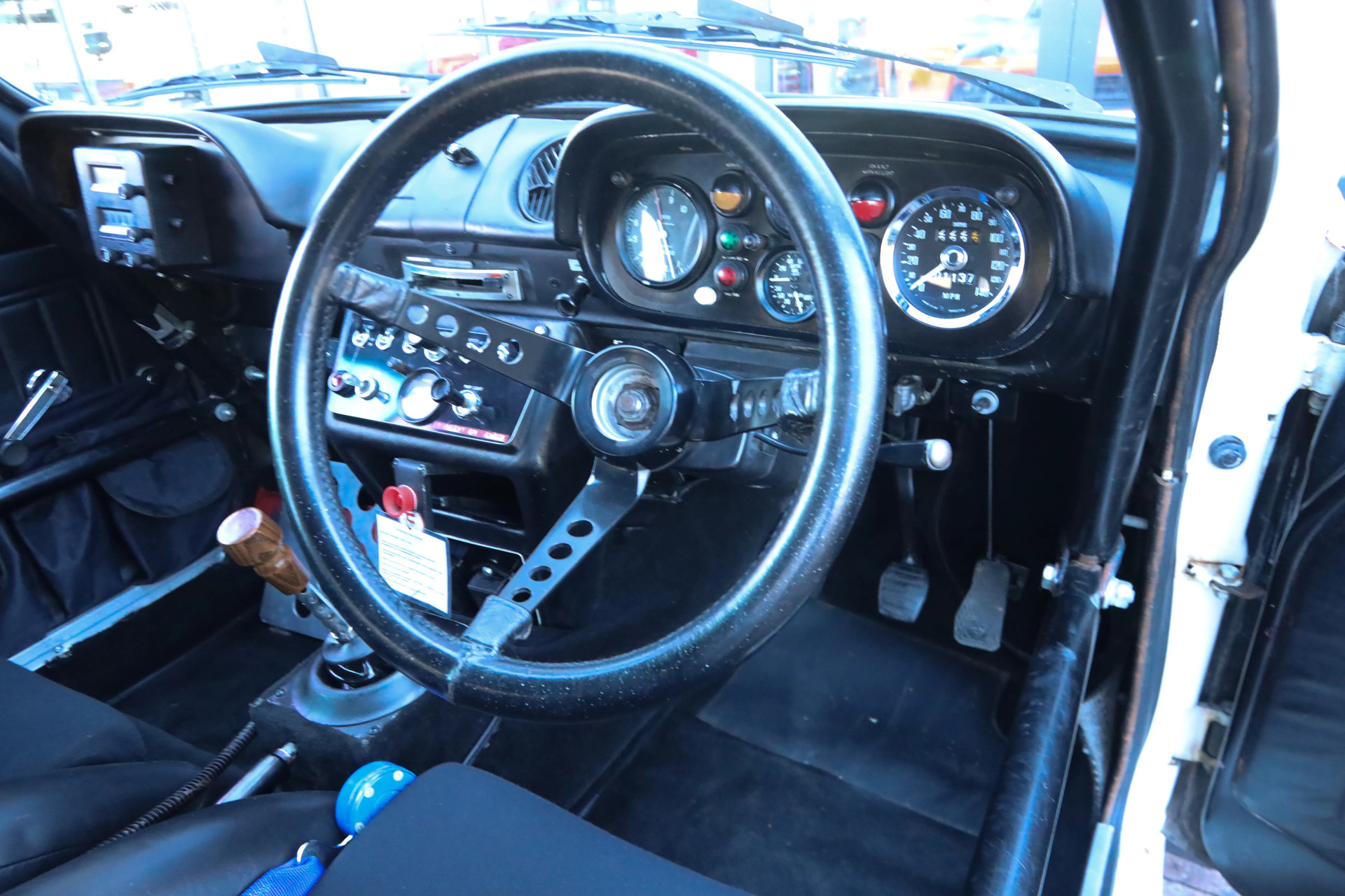 Ook het interieur is omringt met rallyhistorie. Het dashboard met chronometrische instrumenten, de kaartleeslamp en de speciale rallyverlichting zijn nog aanwezig, precies zoals de auto destijds in competitie werd gebruikt.