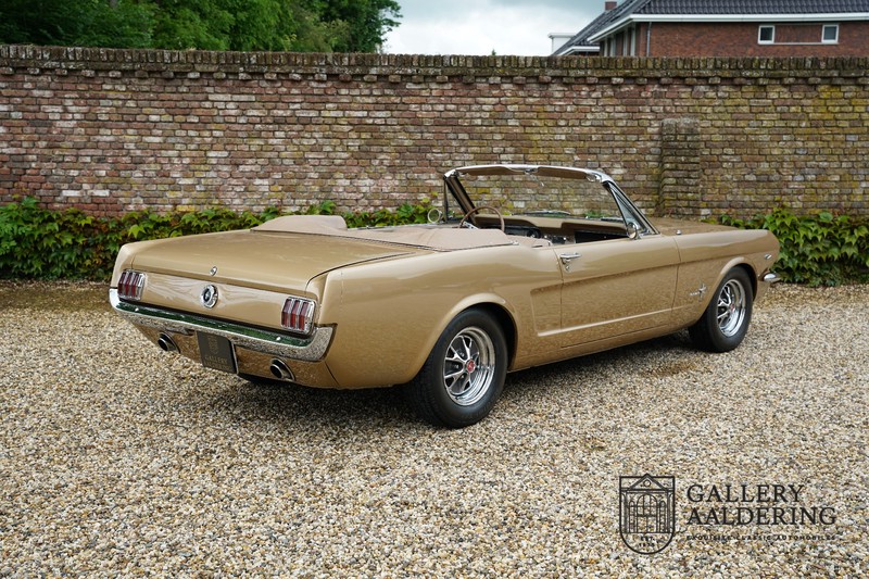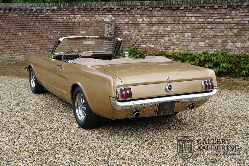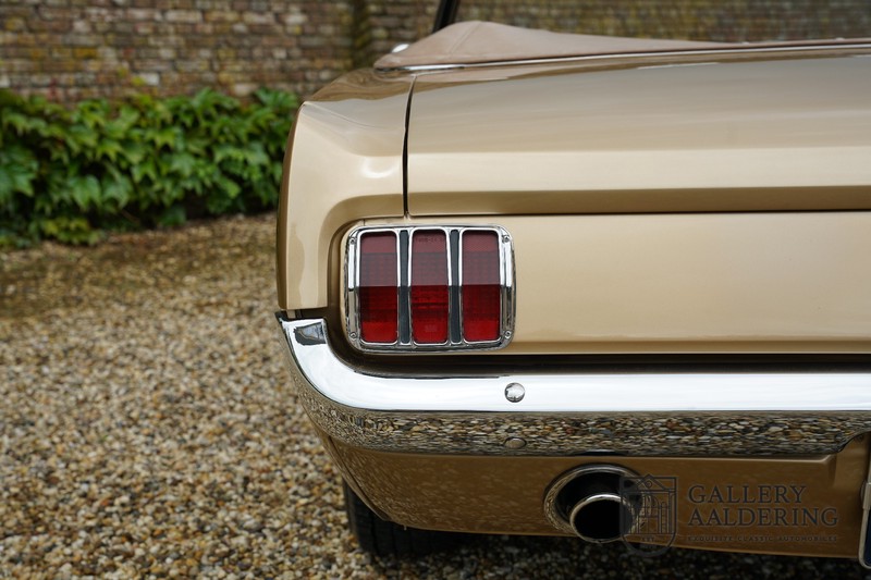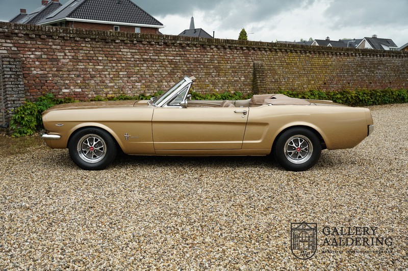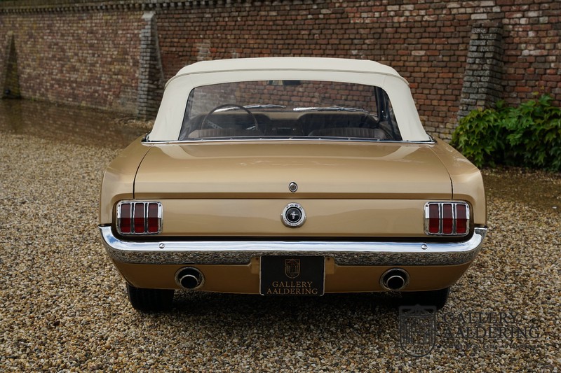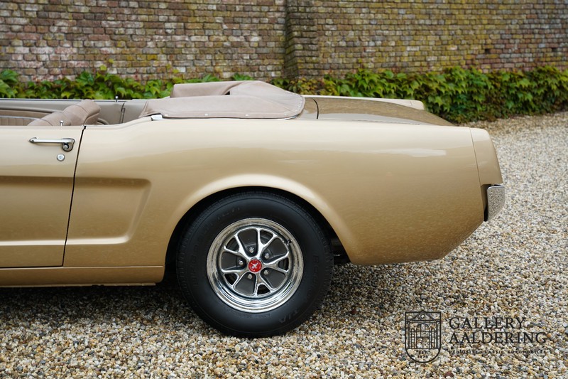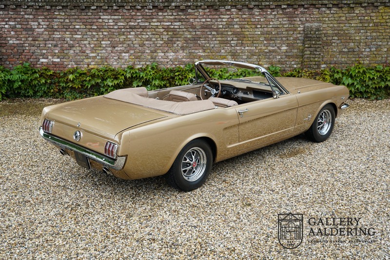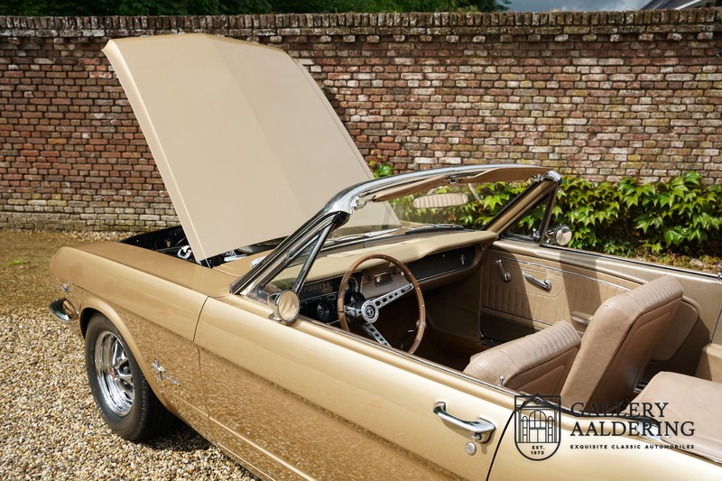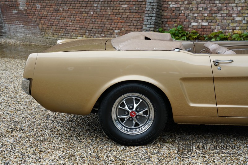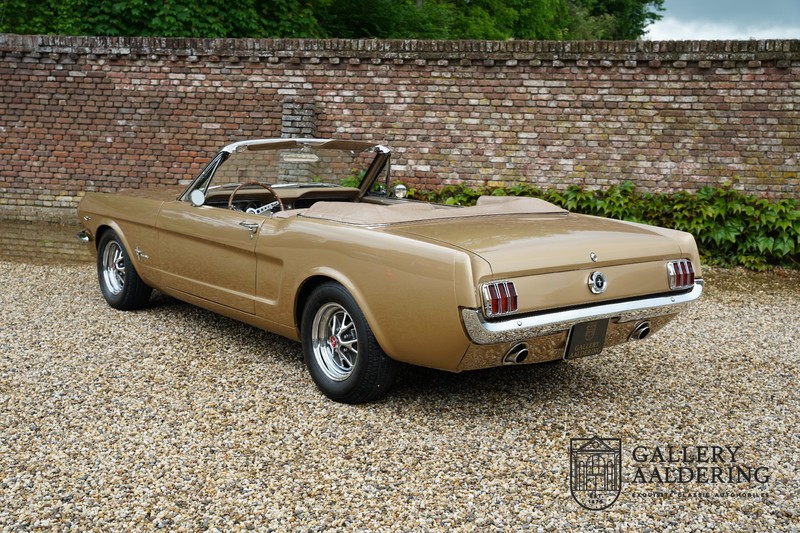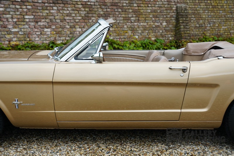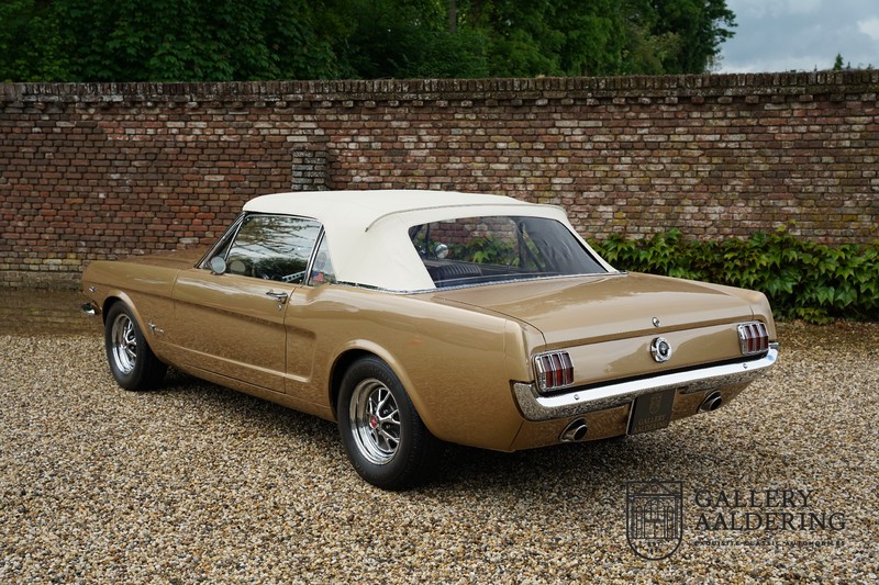 1965 was een goed jaar voor de Mustang. Het model bleek enorm geliefd en was een keihard verkoopsucces voor Ford. Als we het chassisnummer van deze auto ontleden komen we tot de conclusie dat het hier een 1965 Ford Mustang Cabriolet betreft die werd gebouwd in de fabriek in San José en is voorzien van de krachtiger optionele 289 Cubic Inches V8-motor die 200 pk levert. De auto is in het recente verleden volledig gerestaureerd en de techniek gereviseerd. Deze Ford Mustang verkeert dan ook in zeer goede conditie.