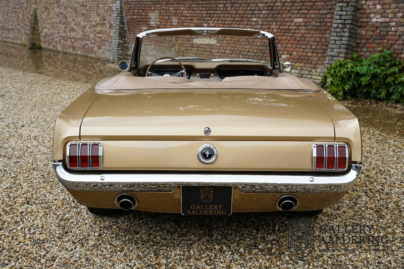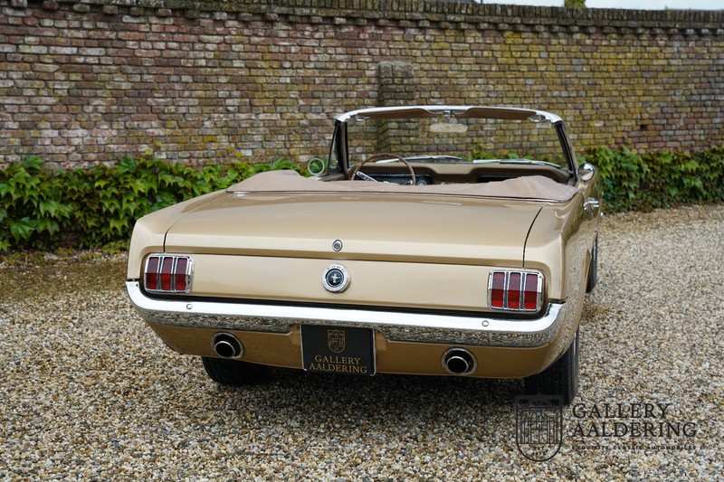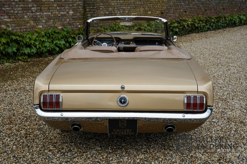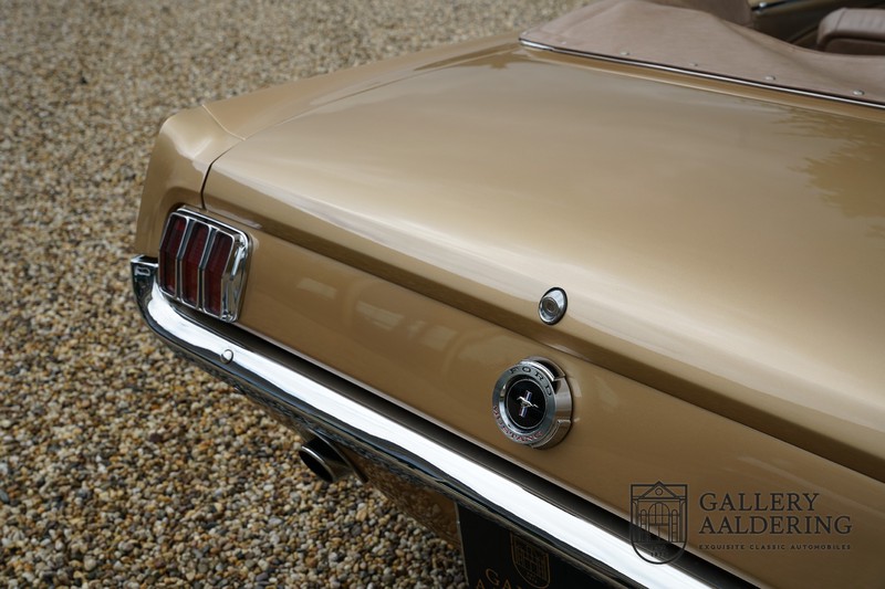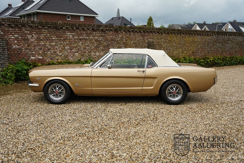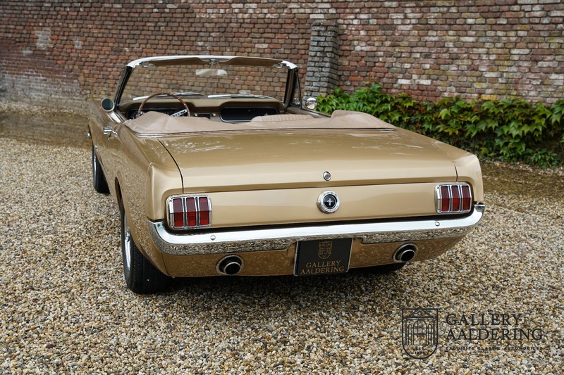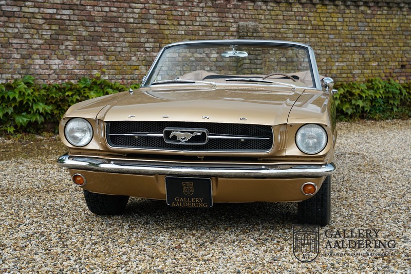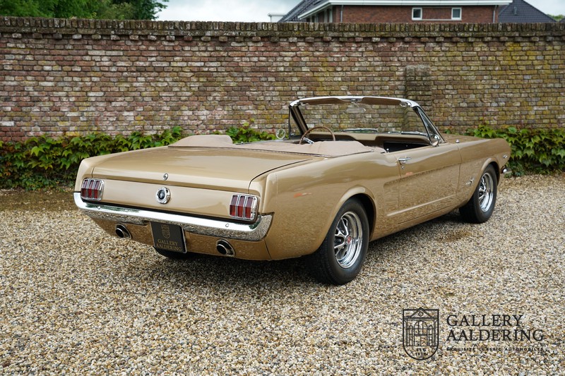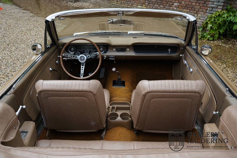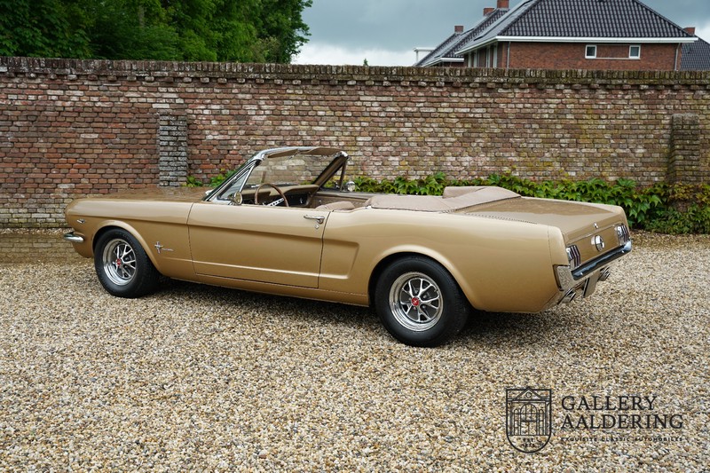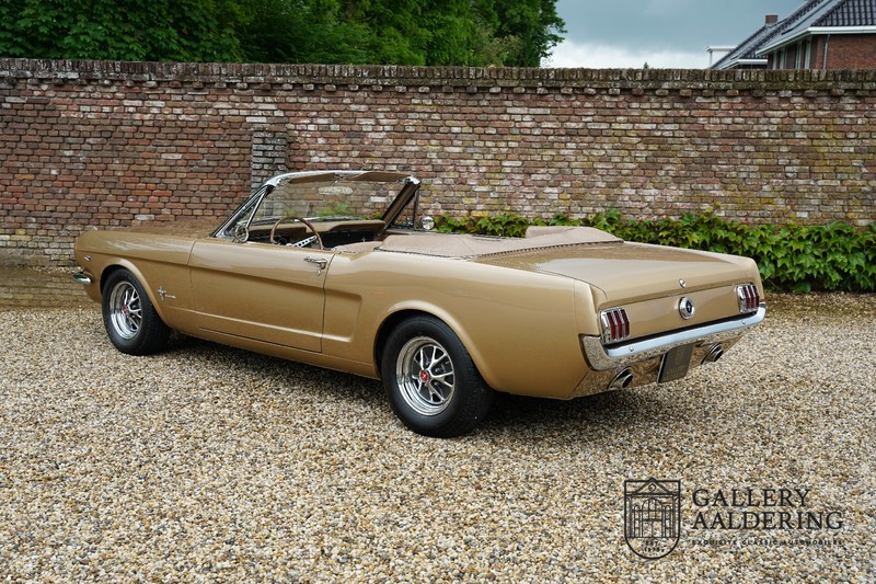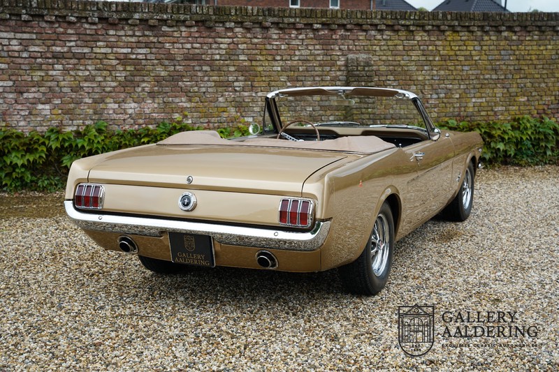 1965 was een goed jaar voor de Mustang. Het model bleek enorm geliefd en was een keihard verkoopsucces voor Ford. Als we het chassisnummer van deze auto ontleden komen we tot de conclusie dat het hier een 1965 Ford Mustang Cabriolet betreft die werd gebouwd in de fabriek in San José en is voorzien van de krachtiger optionele 289 Cubic Inches V8-motor die 200 pk levert. De auto is in het recente verleden volledig gerestaureerd en de techniek gereviseerd. Deze Ford Mustang verkeert dan ook in zeer goede conditie.