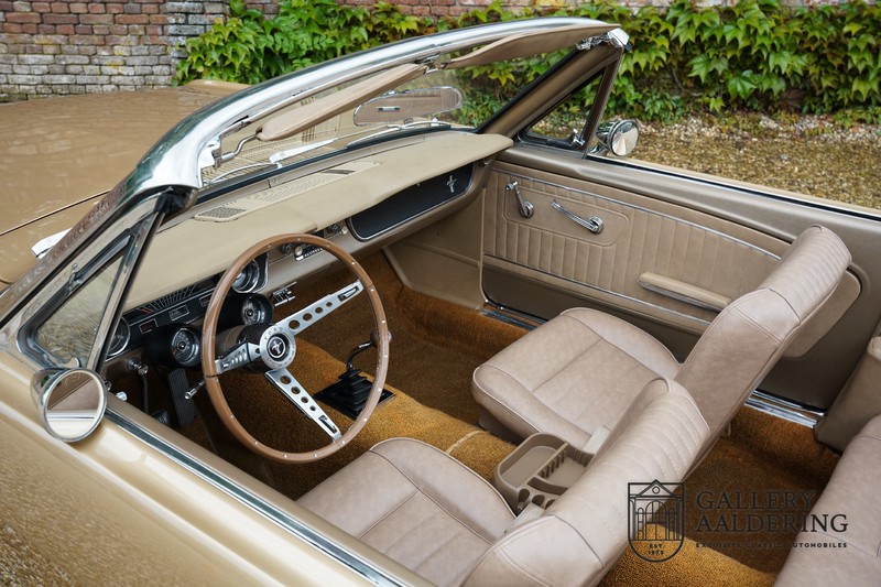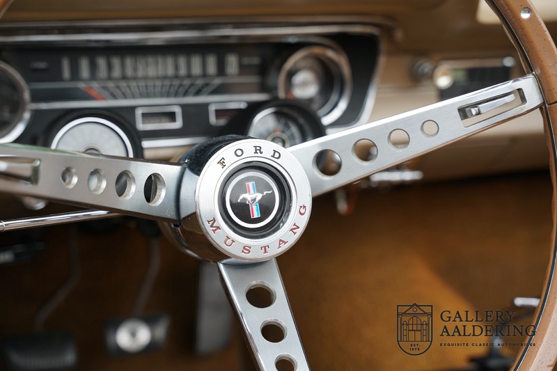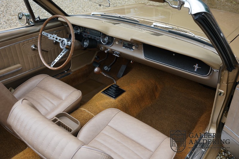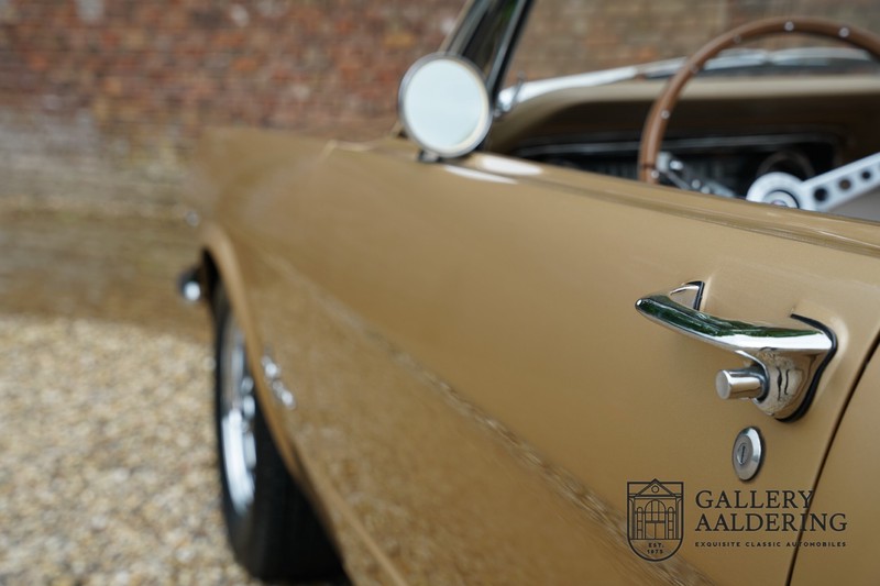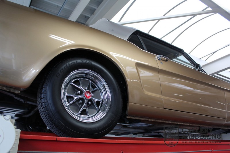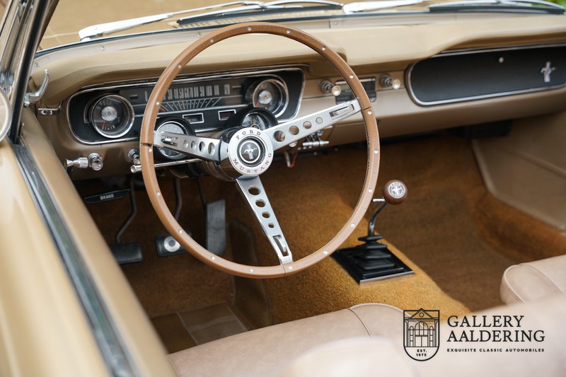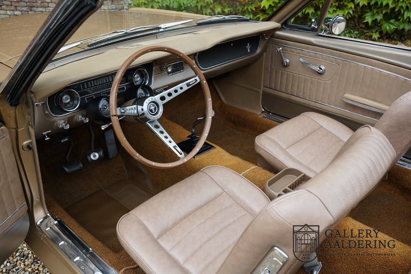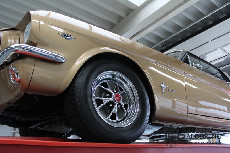 Das Jahr 1965 war sehr gut für den Ford Mustang, das Modell war sehr beliebt und der Mustang war ein richtiger Verkaufsschlager. Basierend auf der Fahrgestellnummer sehen wir, dass der Mustang in 1965 bei den Ford Werken in San José gebaut worden ist und versehen wurde mit dem optionalen kräftigen 4.7 Liter (289 Cubic Inches) V8-Motor mit einer Leistung von 200 PS. Das Auto wurde vor kurzem komplett restauriert und revidiert und befindet sich dementsprechend in einem sehr guten Zustand.